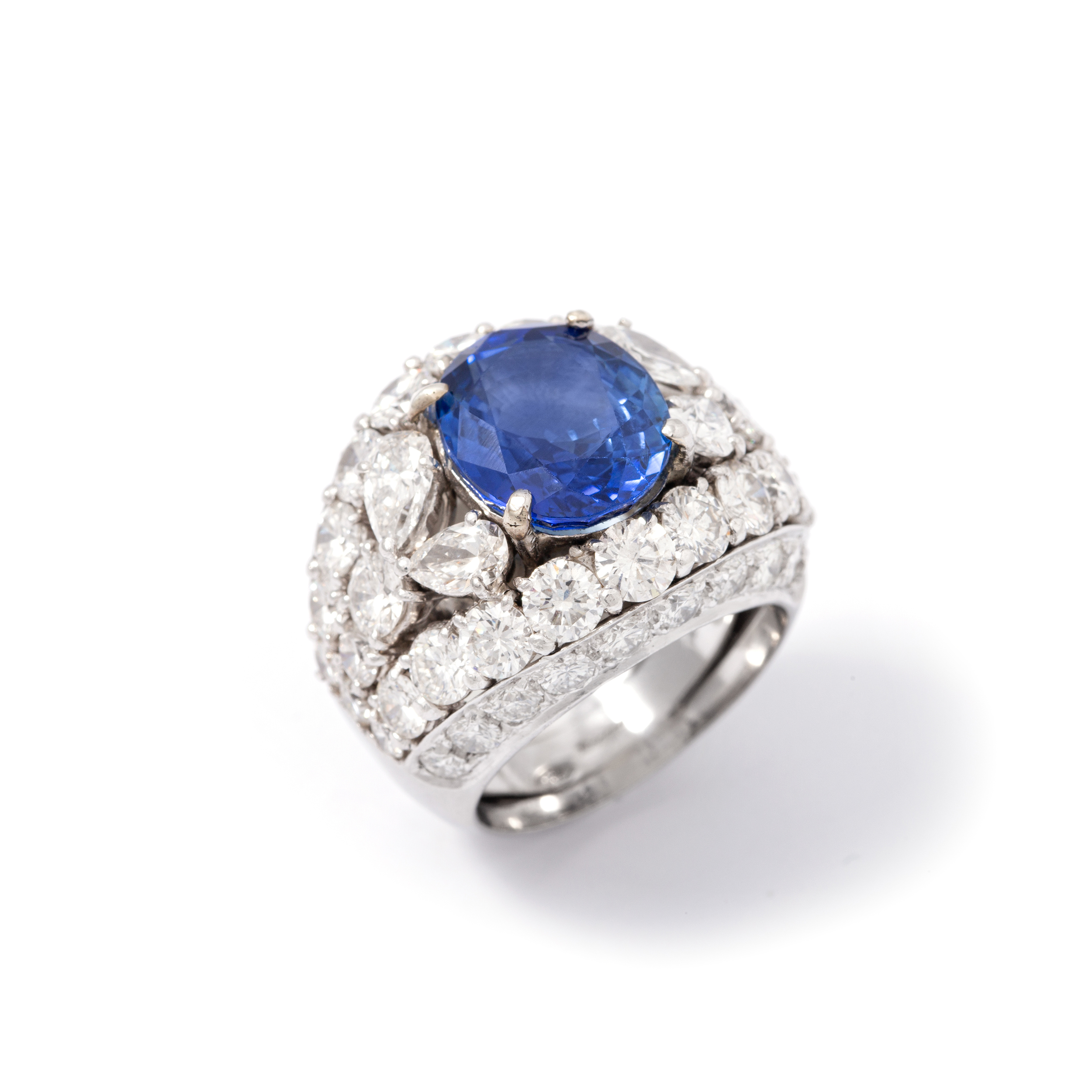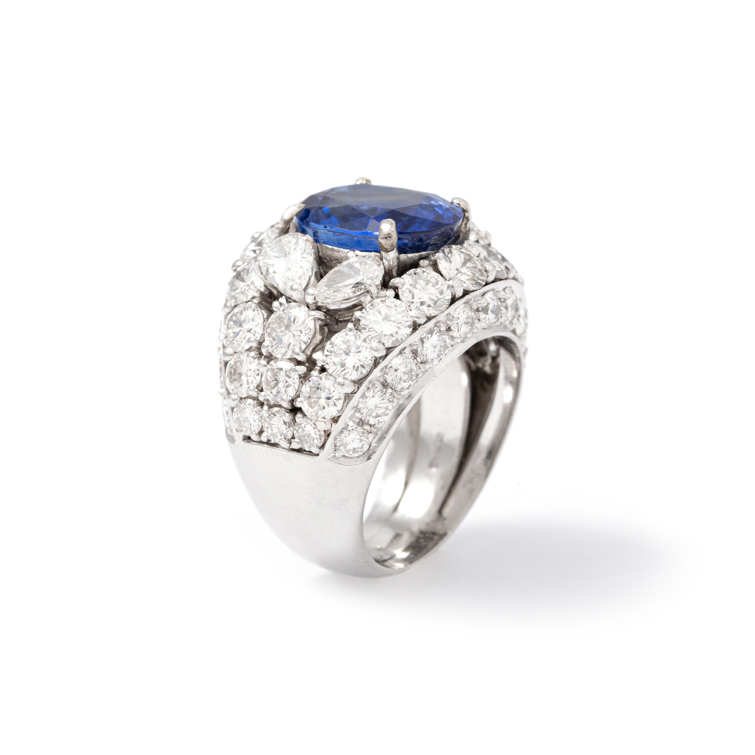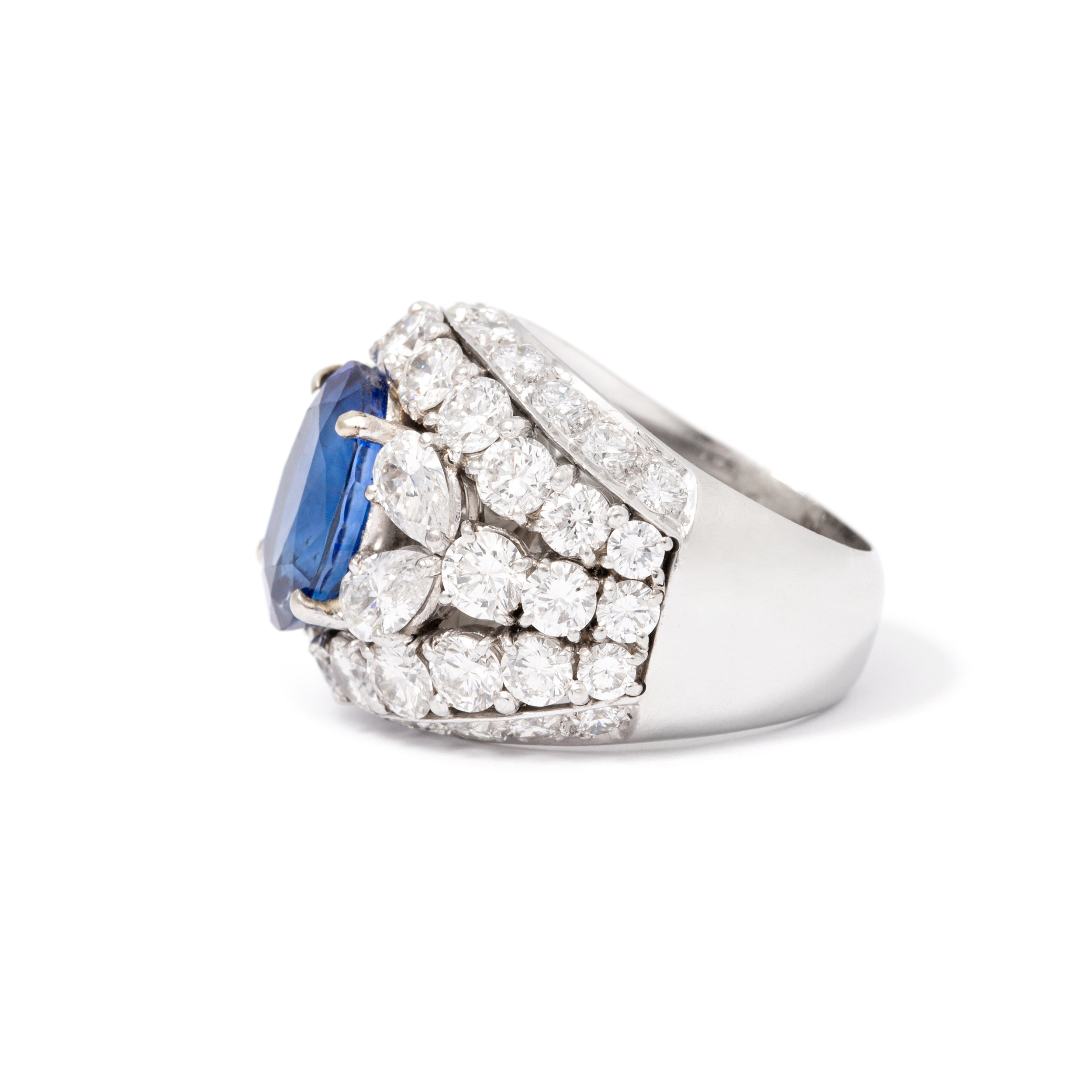 Important 7.33 carat Sapphire Natural Ceylon centering a Diamond and Platinum Ring. Gubelin Swiss Laboratory Certificate.