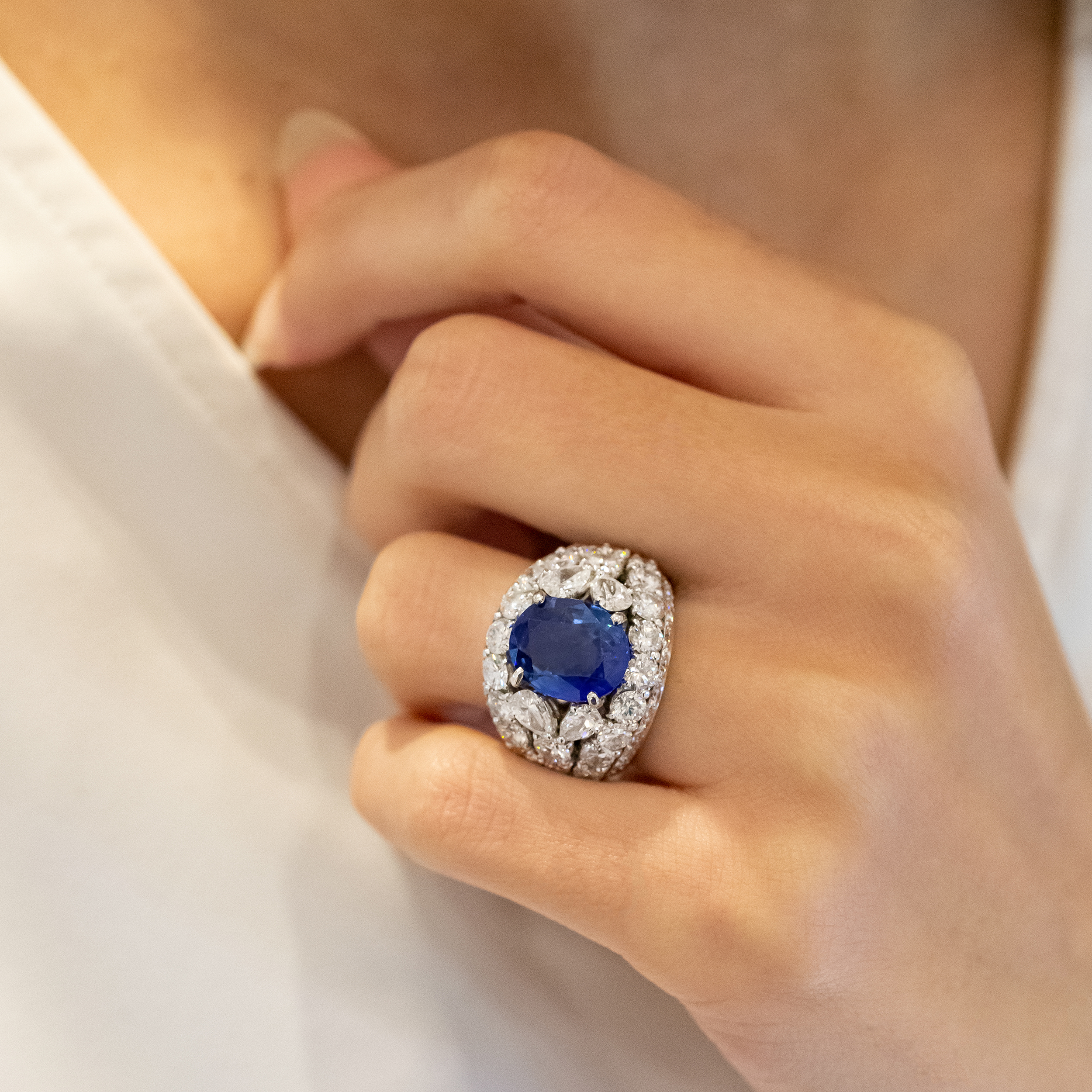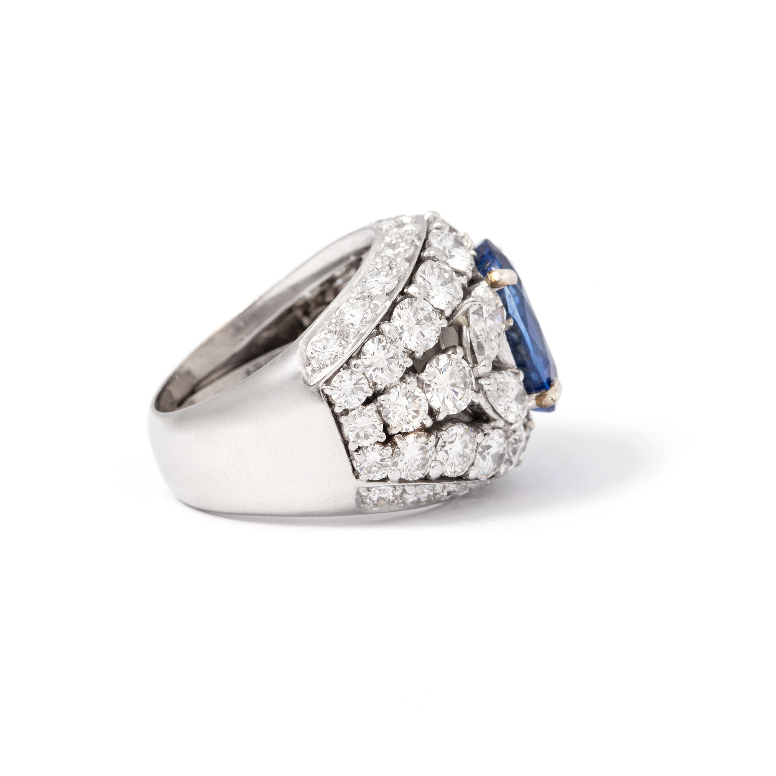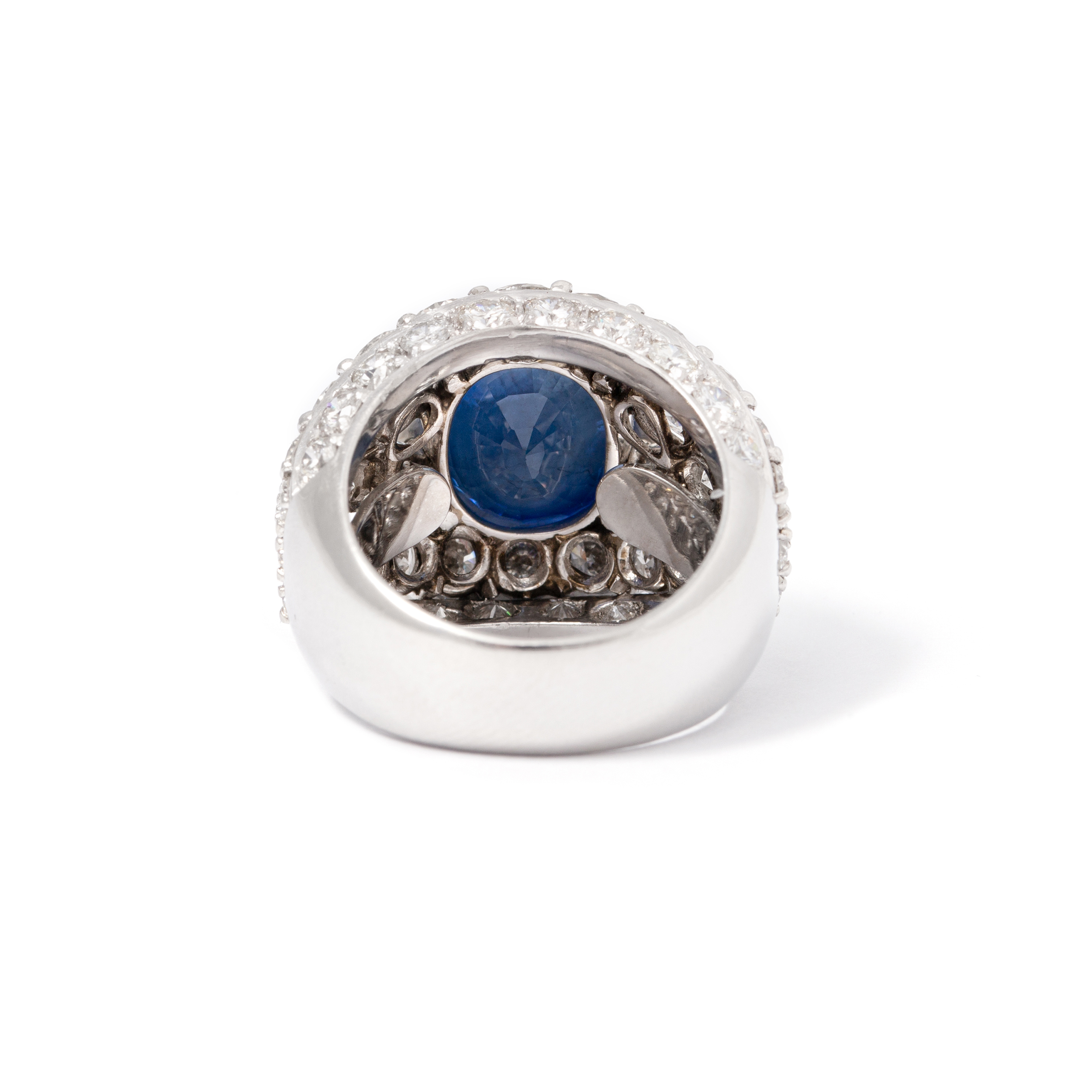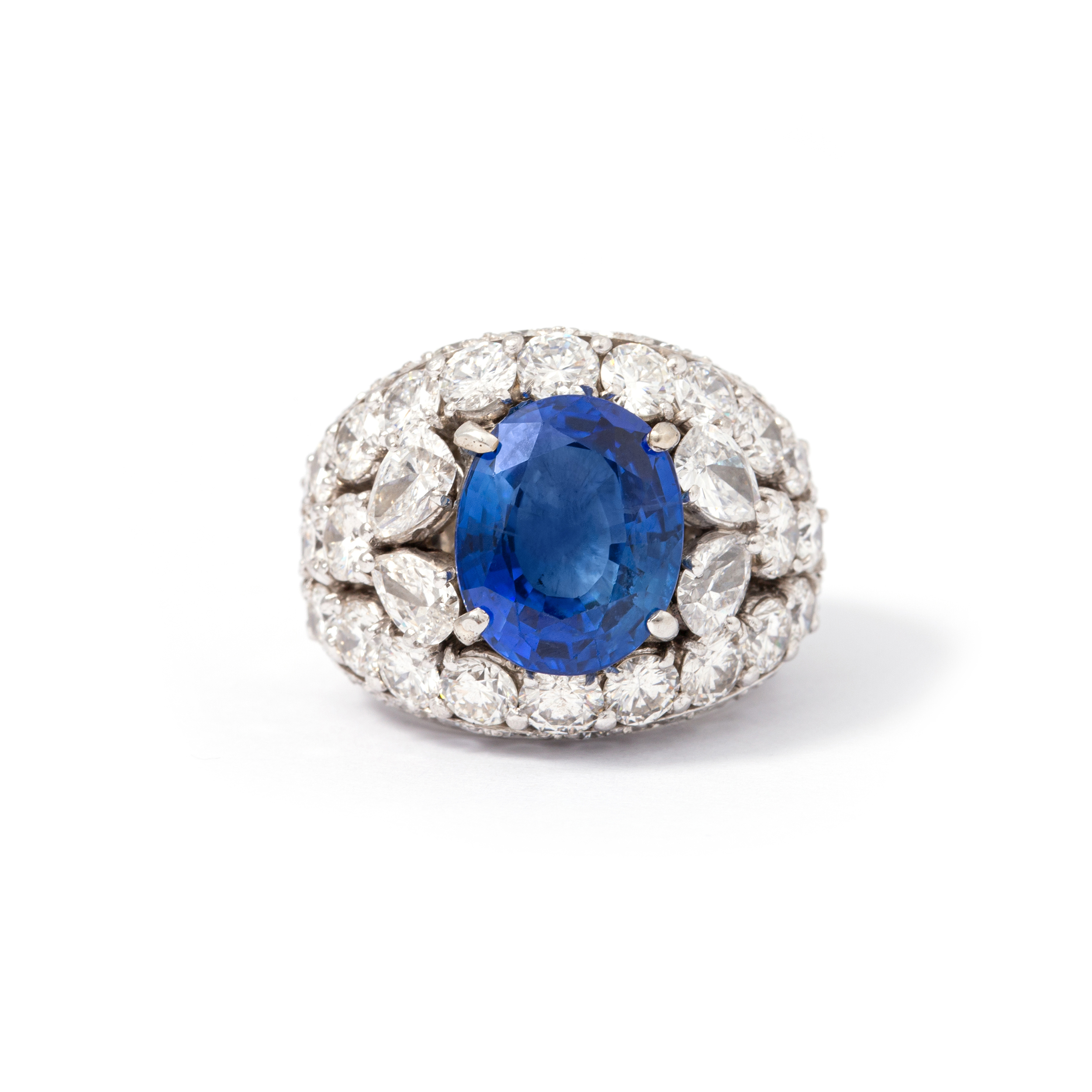 Important 7.33 carat Sapphire Natural Ceylon centering a Diamond and Platinum Ring. Gubelin Swiss Laboratory Certificate.