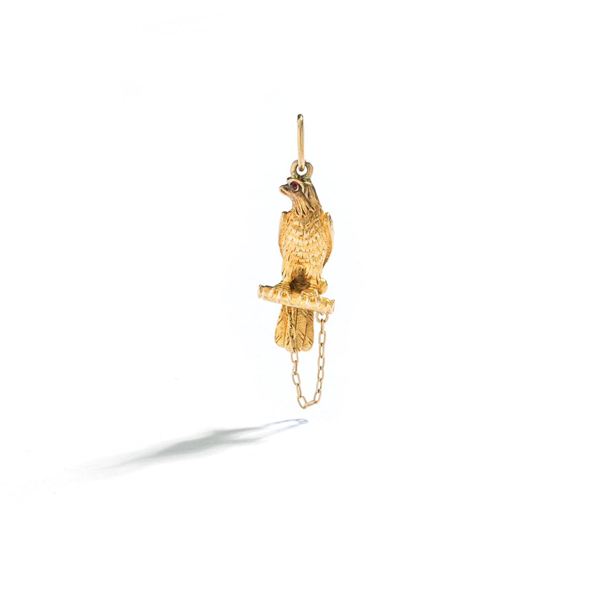 Crafted from luxurious 18k yellow gold, this pendant charm features a meticulously detailed falcon design. The majestic falcon motif symbolizes strength, freedom, and power, making it a meaningful addition to any jewelry collection.