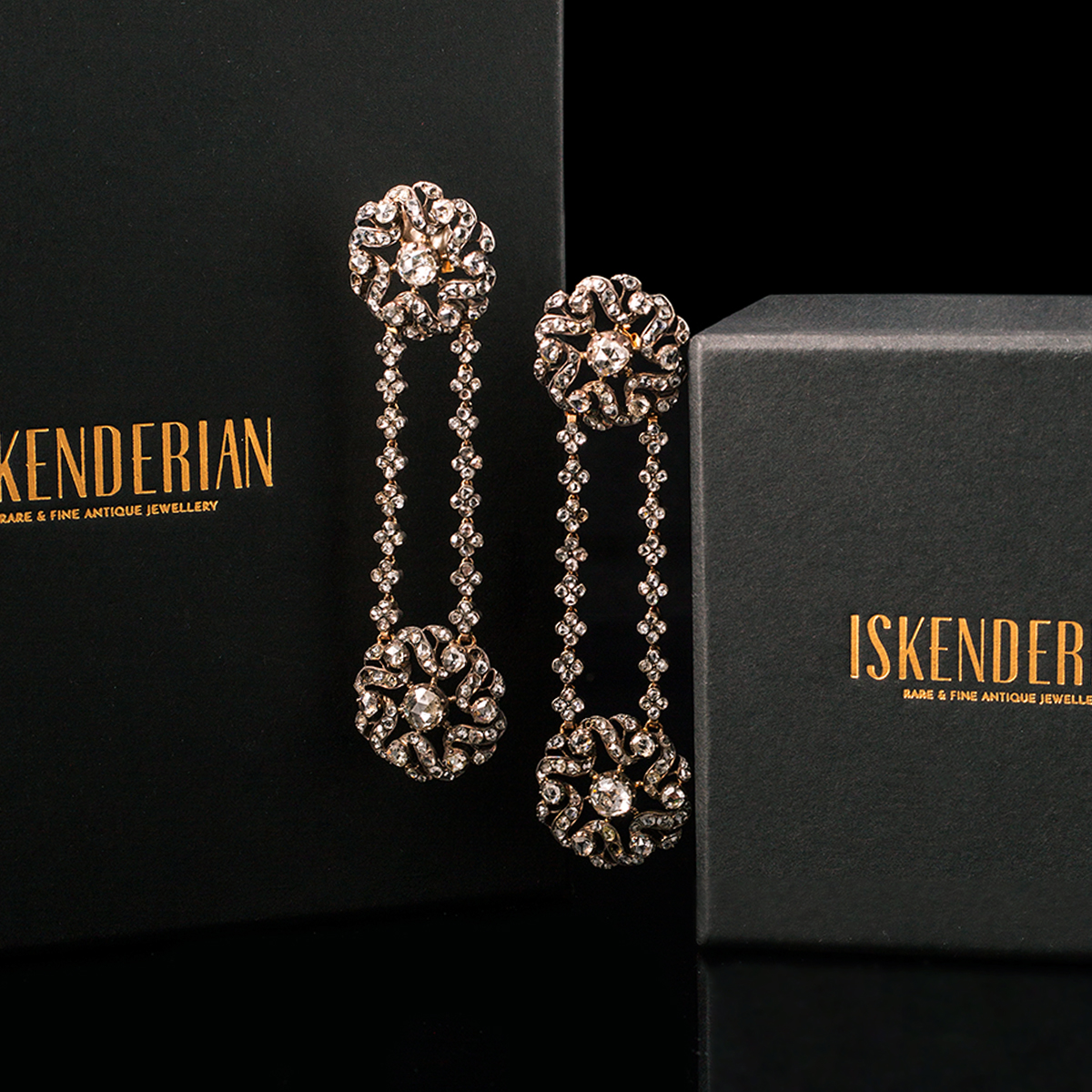 A pair of captivating antique Rose cut Diamond Ear Pendants, crafted on silver and gold with Austrian workmanship, dating back to the late 19th century. These earrings are a true testament to the elegance and beauty of a bygone era.