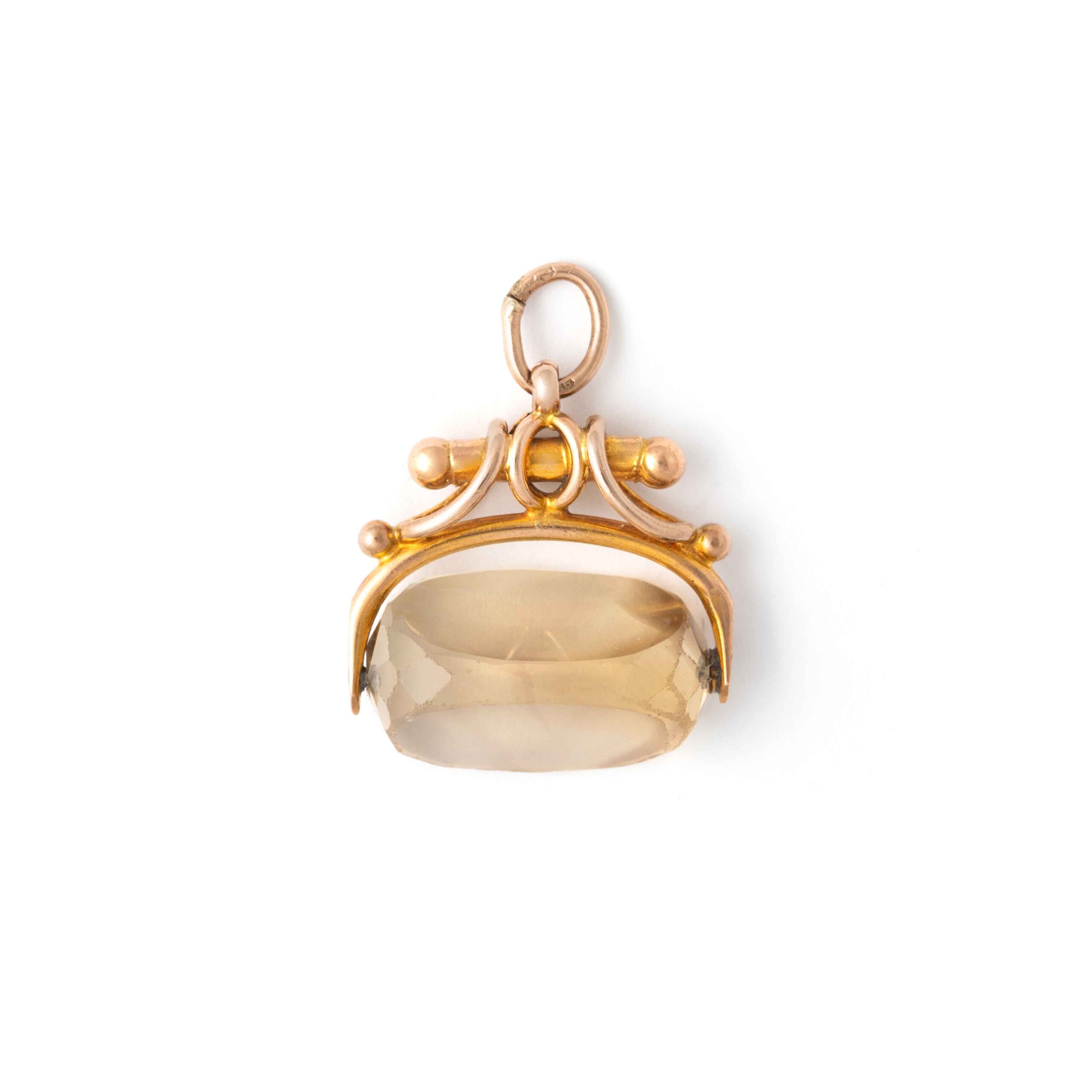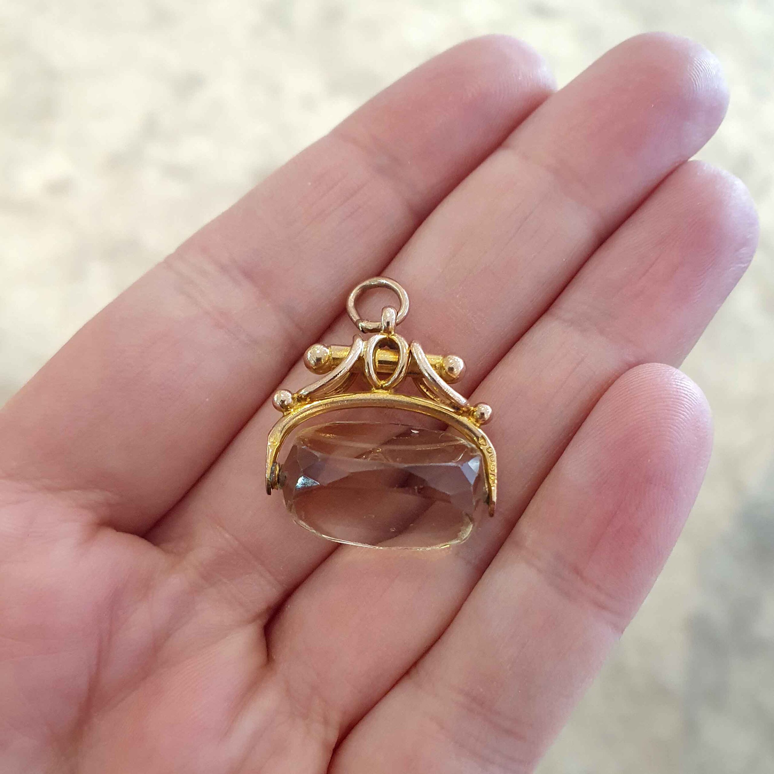 Antique Gold Citrine Spinning Fob Seal Pendant. This antique gold fob seal pendant showcases a beautifully faceted citrine gemstone that spins within its ornate setting.