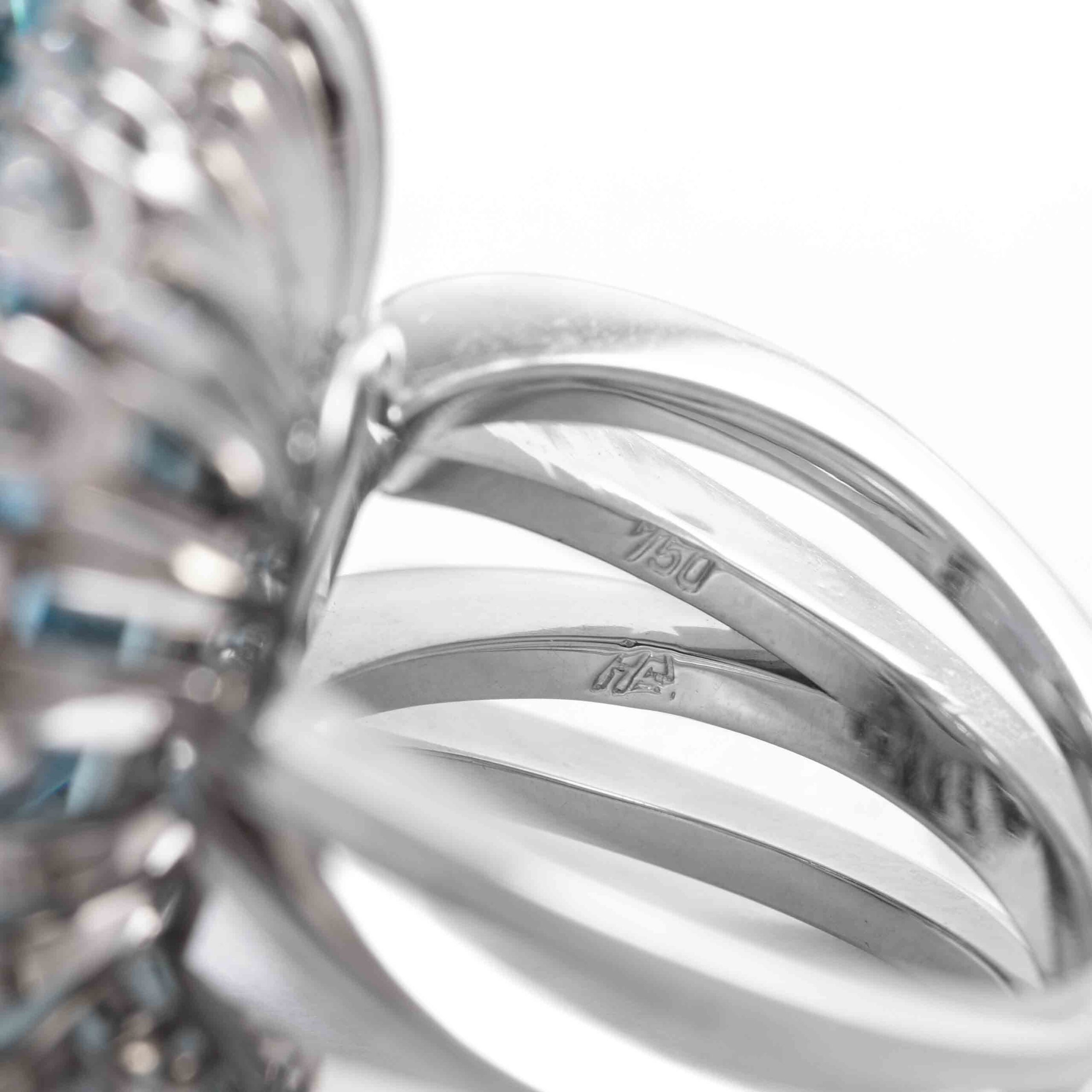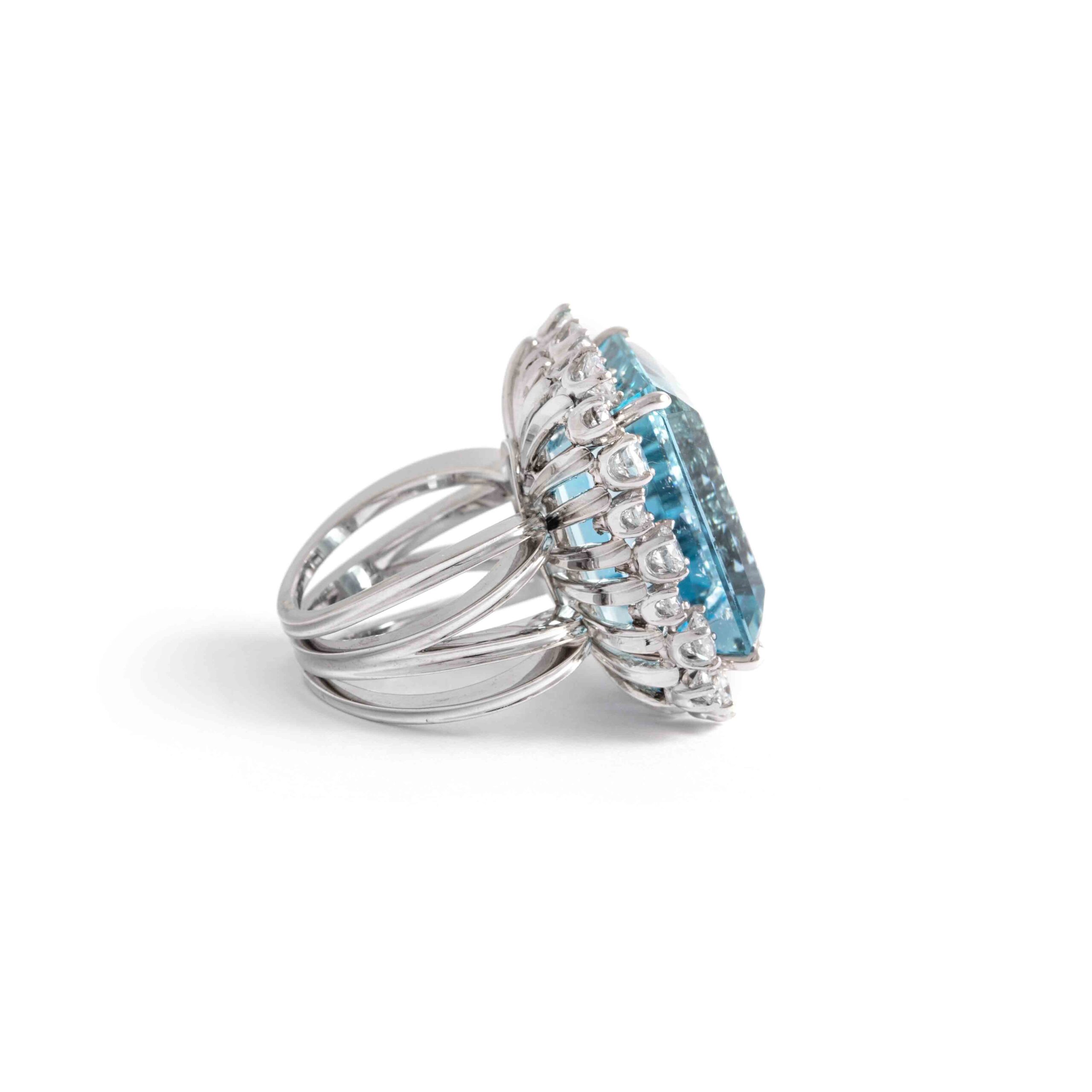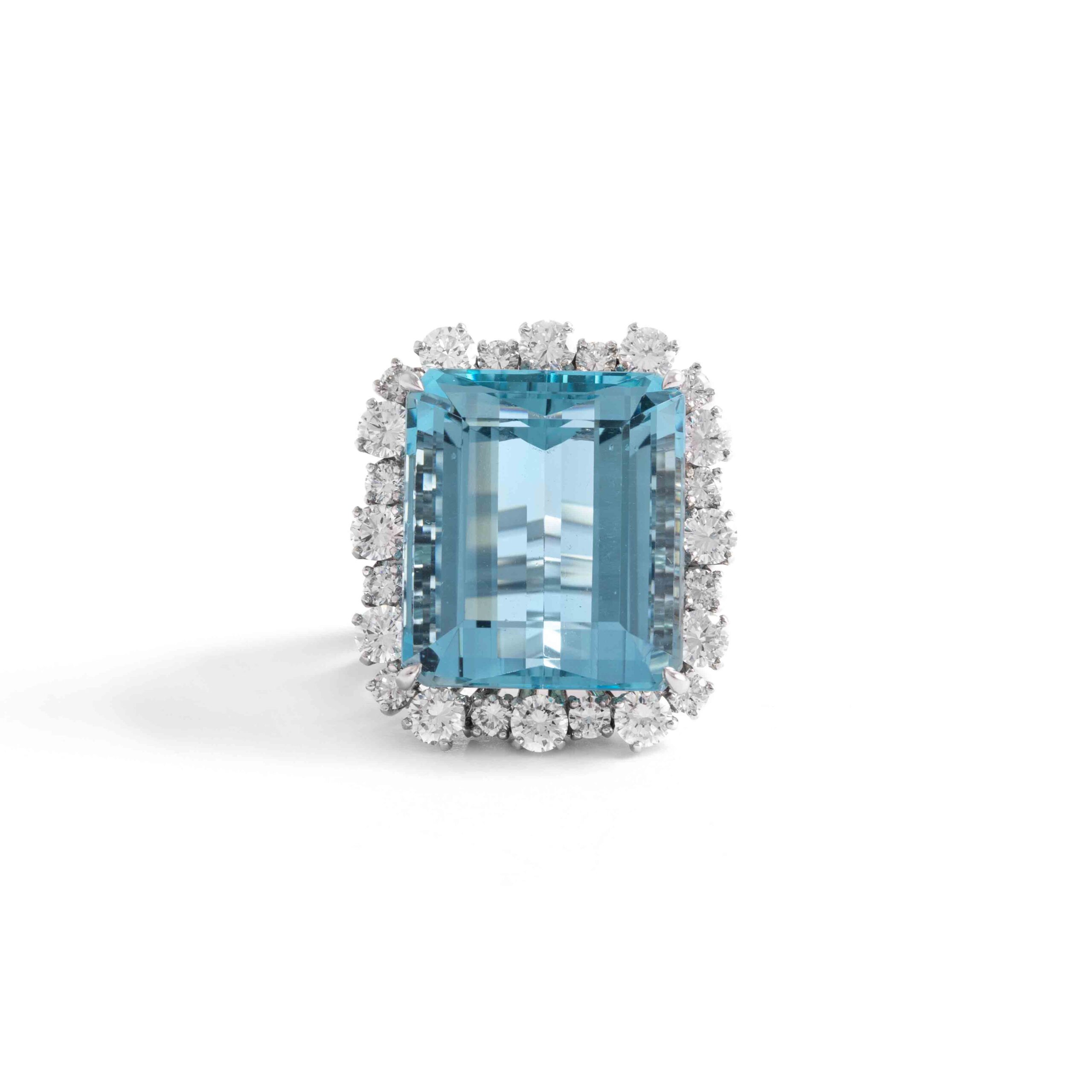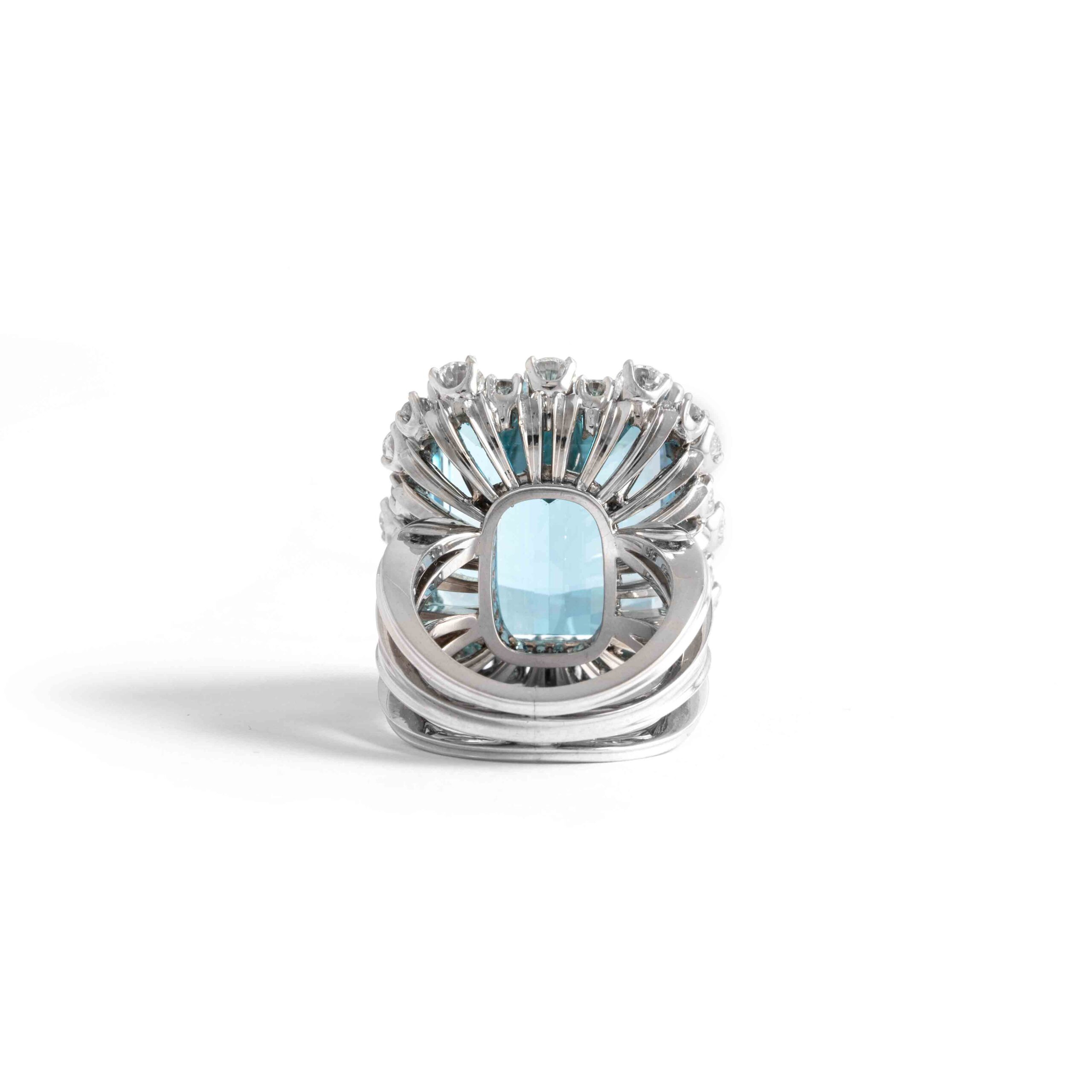 Aquamarine Diamond Ring, adorned with 24 brilliant diamonds and featuring a significant aquamarine centerpiece.