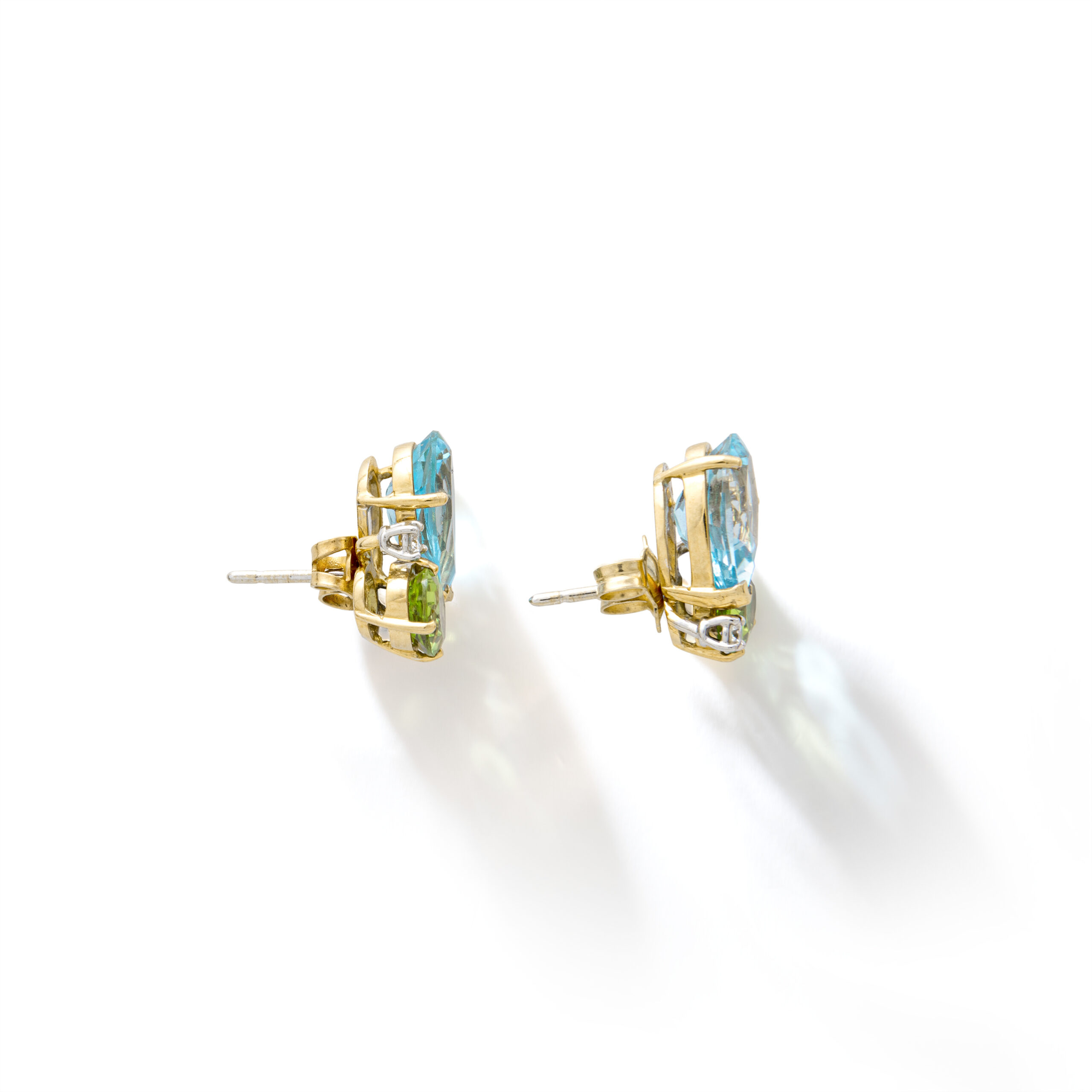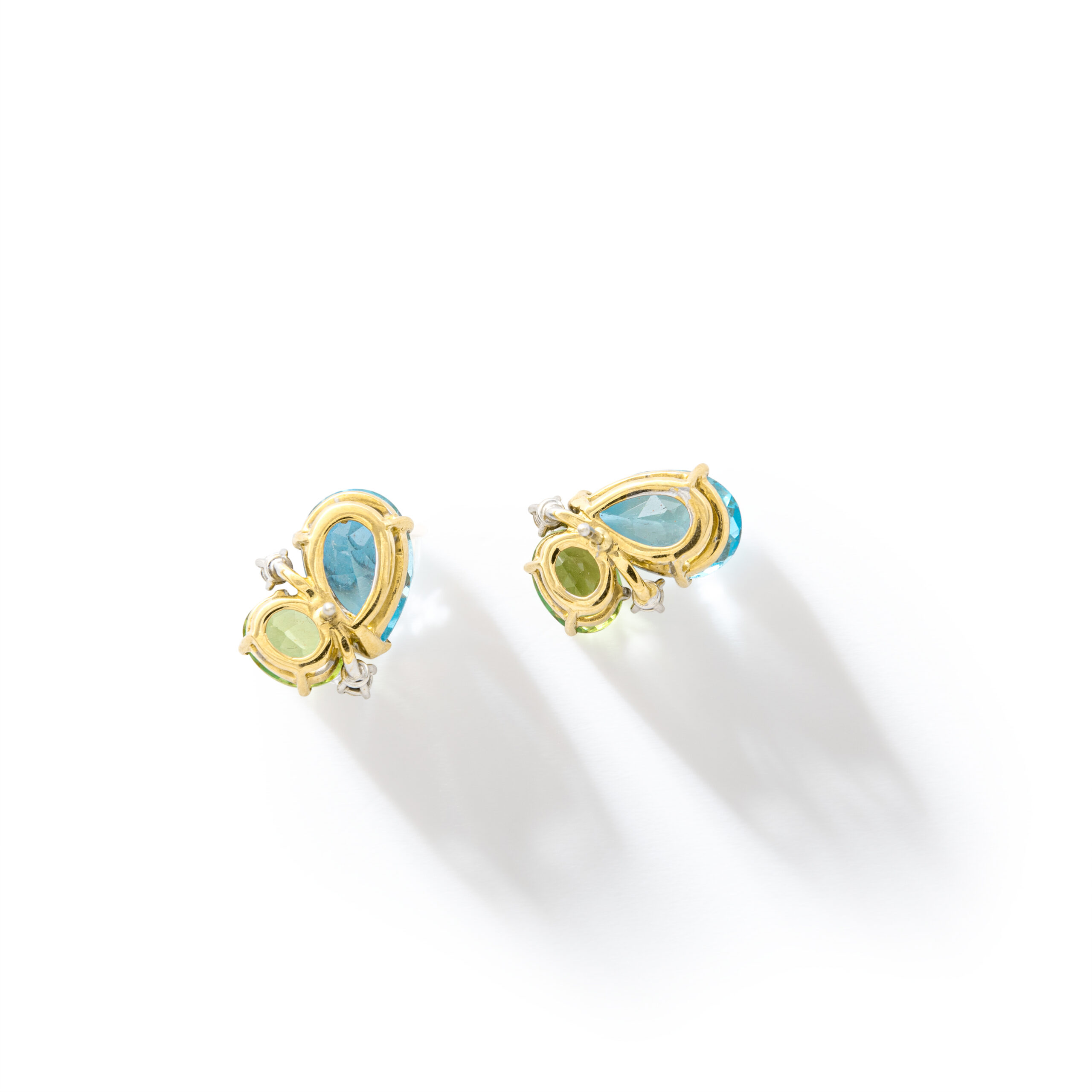 AquaMarine and Peridot, Pear and Oval Shapes on Diamond and Yellow Gold 18k Earrings.