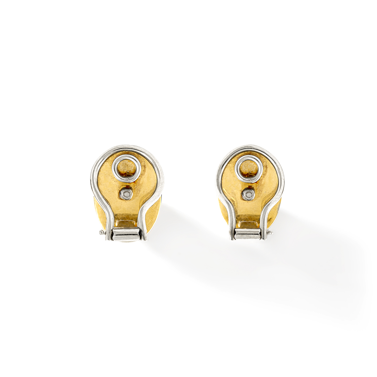 Diamond Black and White Stone on Yellow Gold 18k Earclips. Circa 1980.