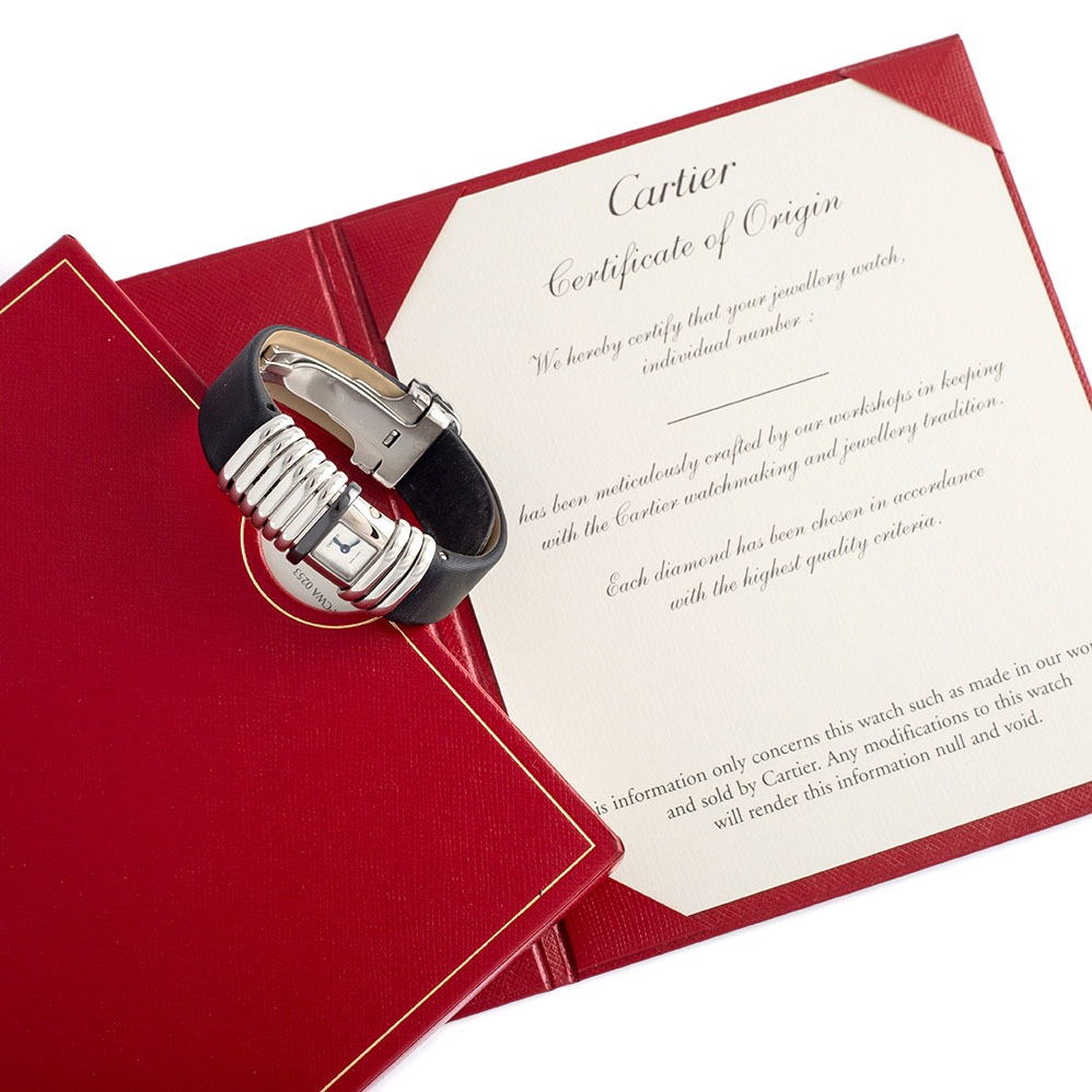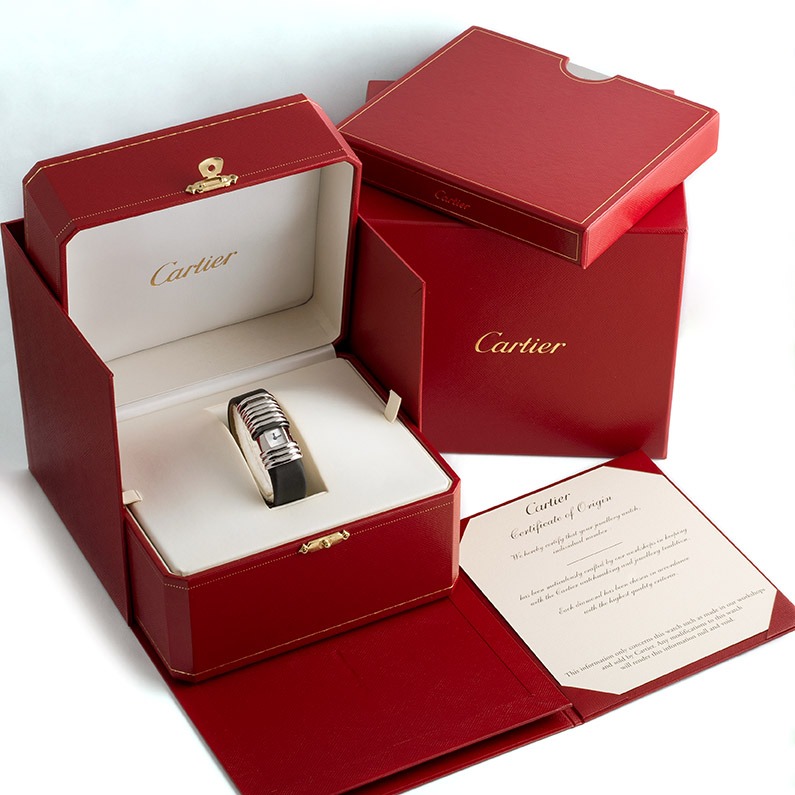 The Cartier Declaration Watch comes complete with its original full box and papers, ensuring its authenticity and value. The unique serial number 42486390 and reference number 261173662CE further validate its origin and quality.