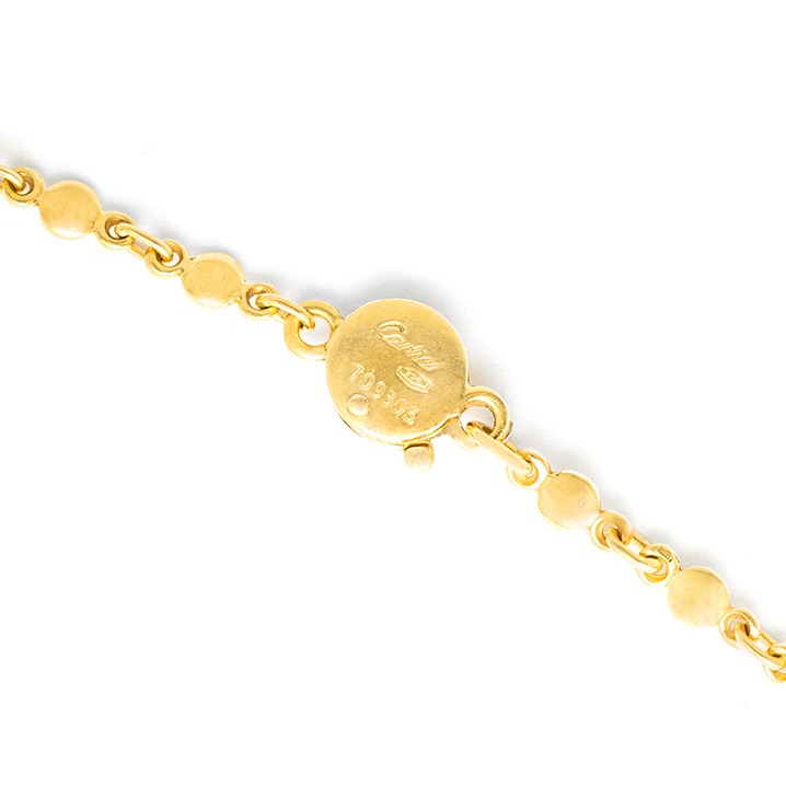 As a mark of its authenticity and craftsmanship, the Cartier diamond and yellow Gold 18K necklace is signed by Cartier and bears a unique identification number, 709303. This not only adds to its allure but also ensures that you are in possession of an exquisite and exclusive piece of jewelry.