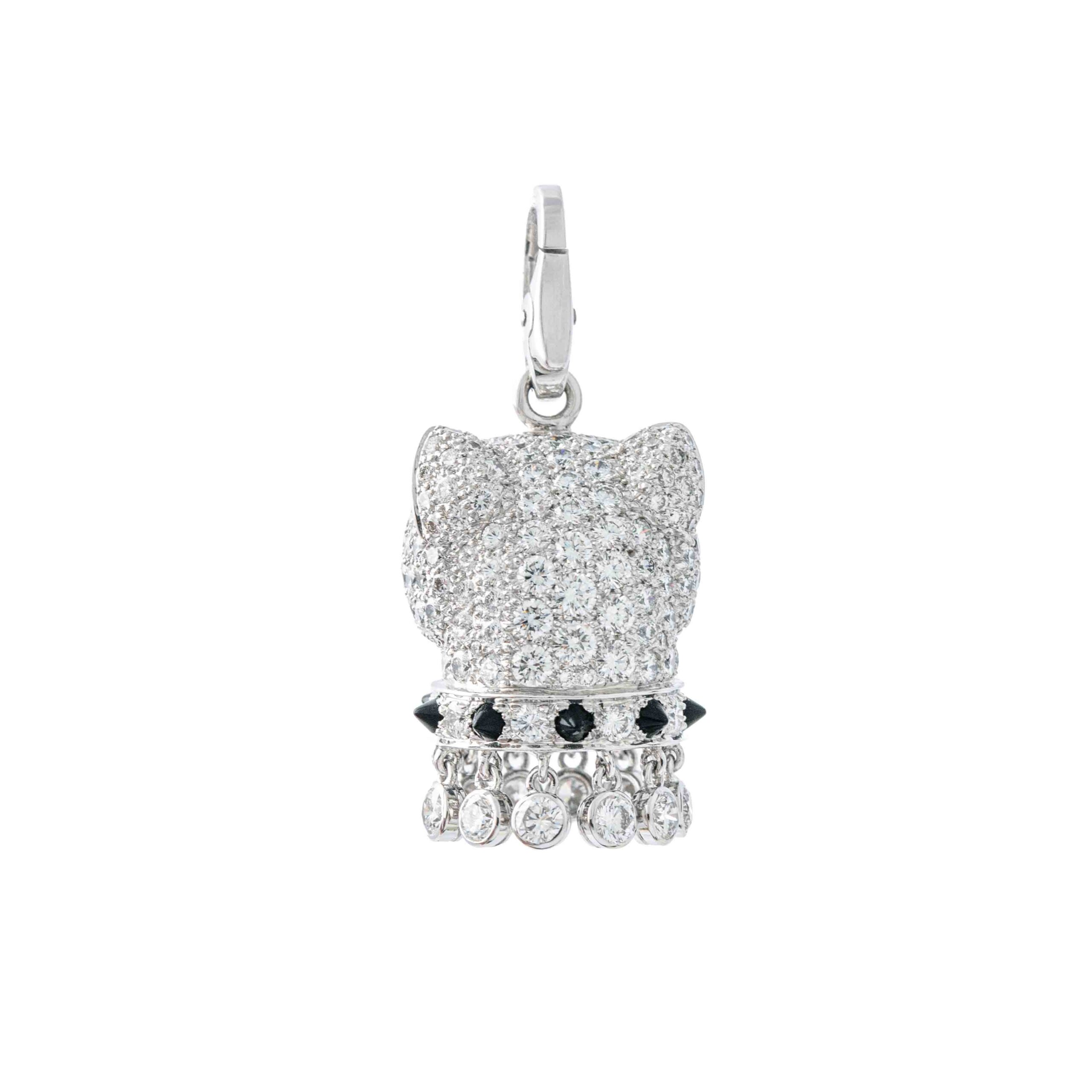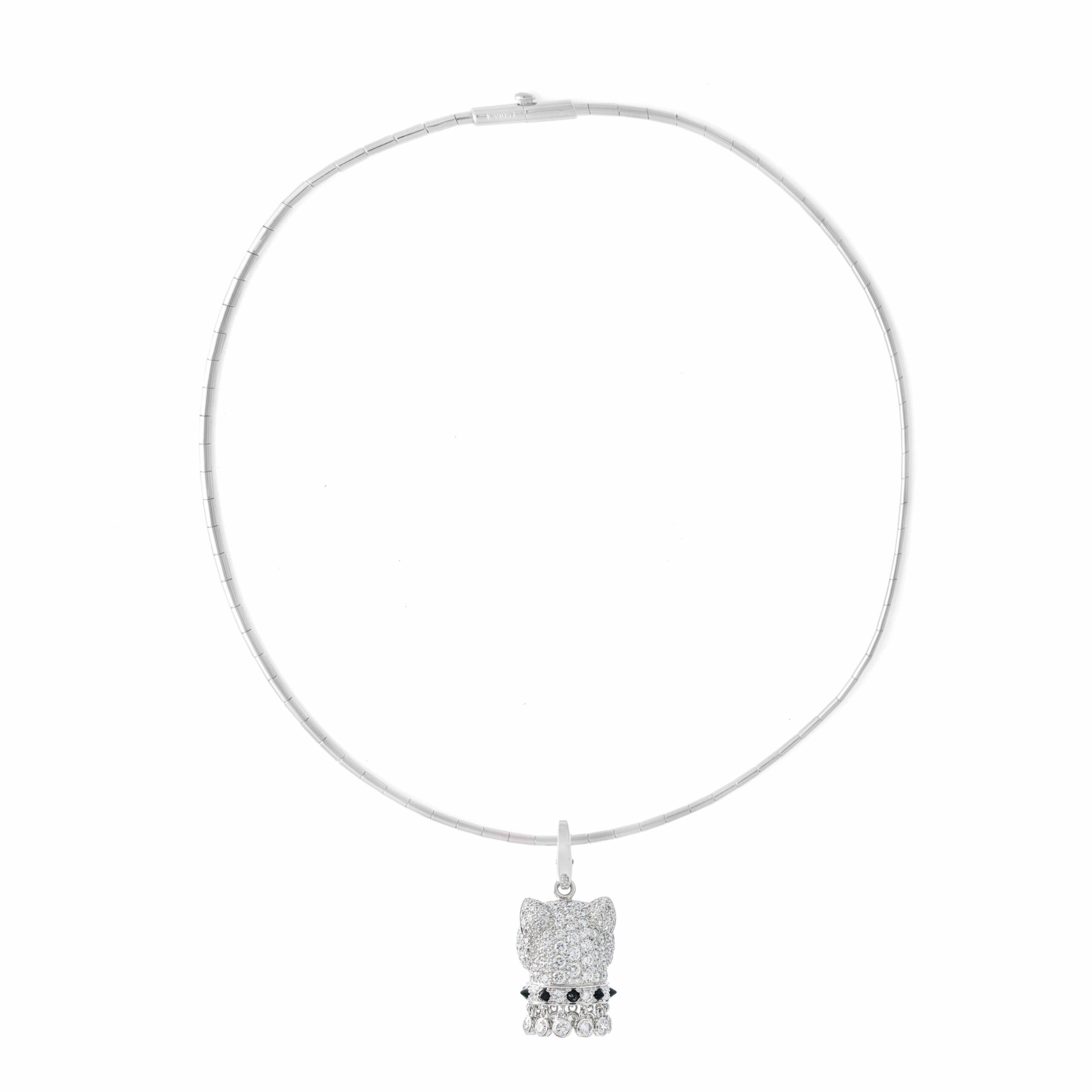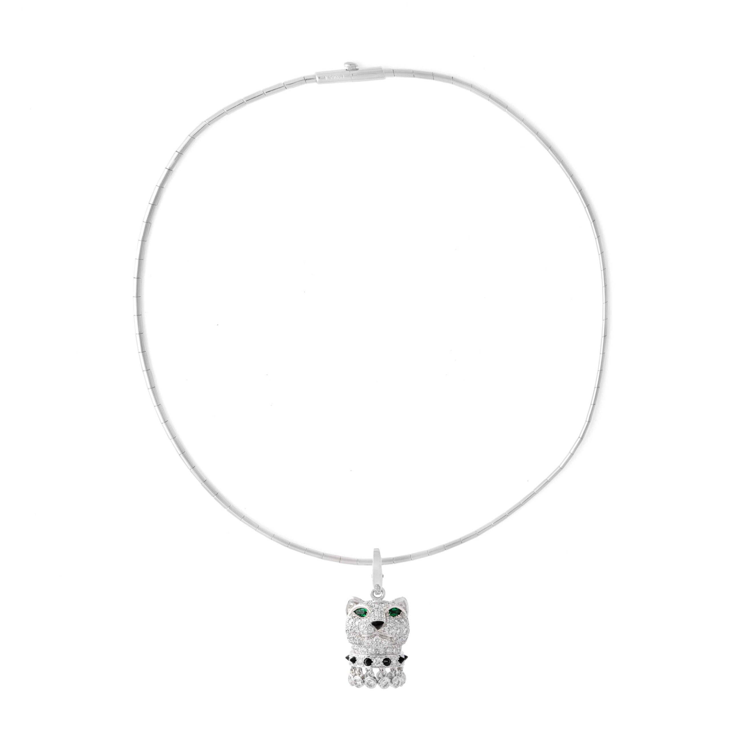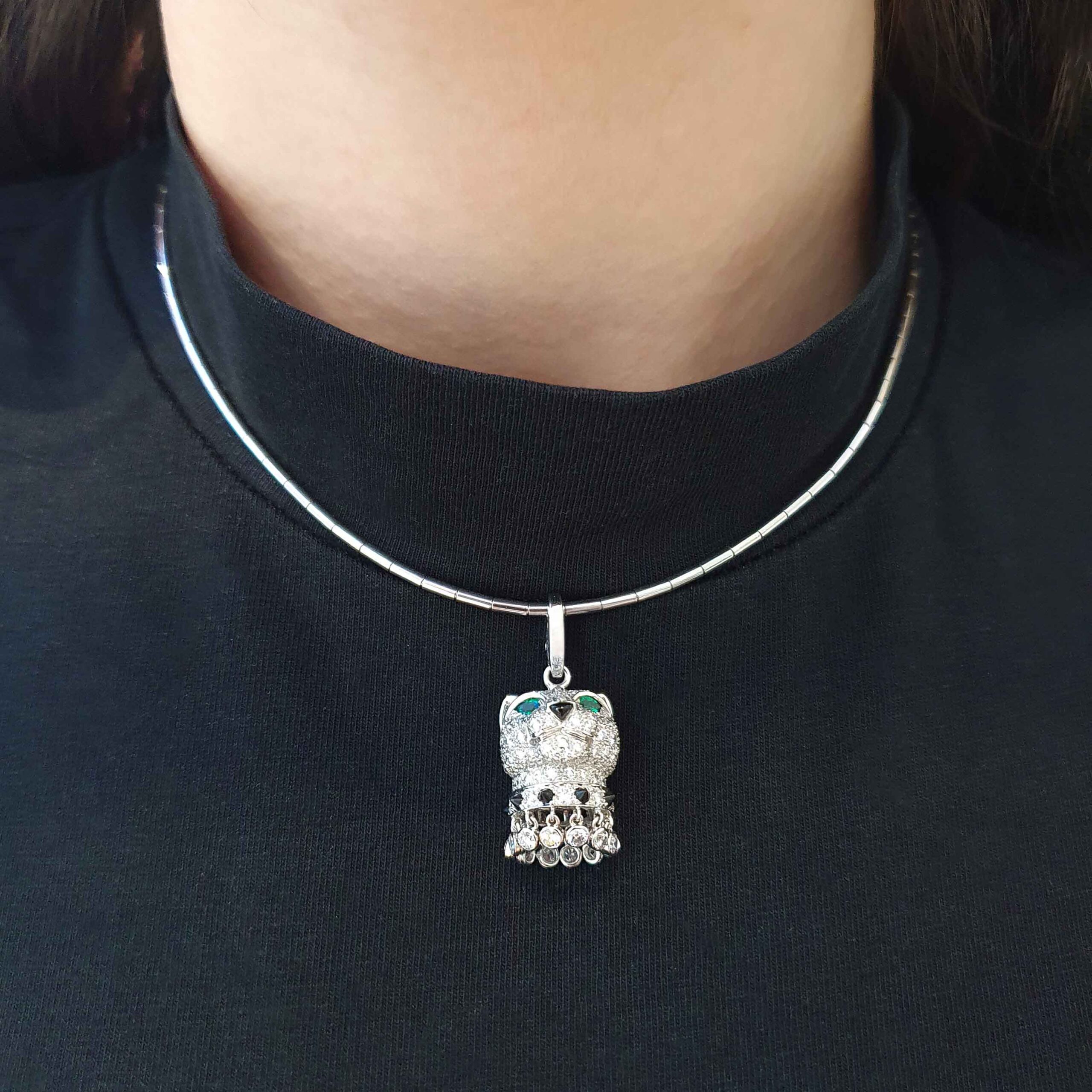 18k White Gold Diamond Emerald Onyx Panthere de Cartier Panther Head Pendant by Cartier.