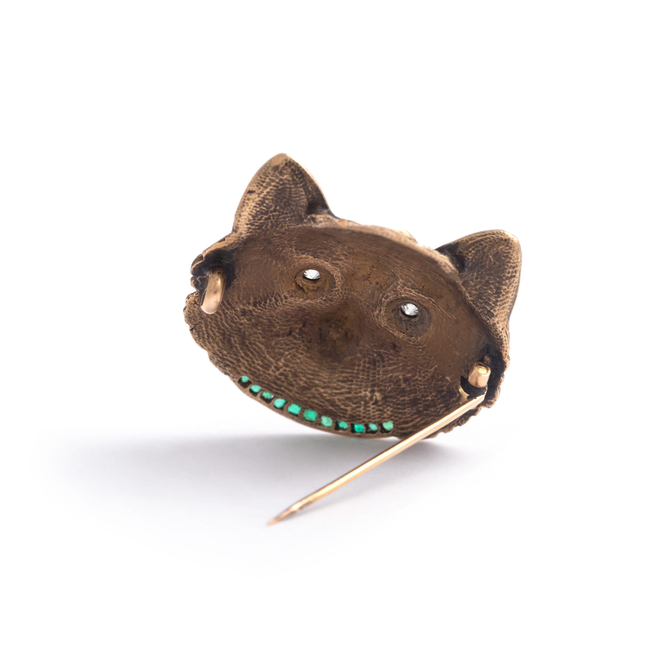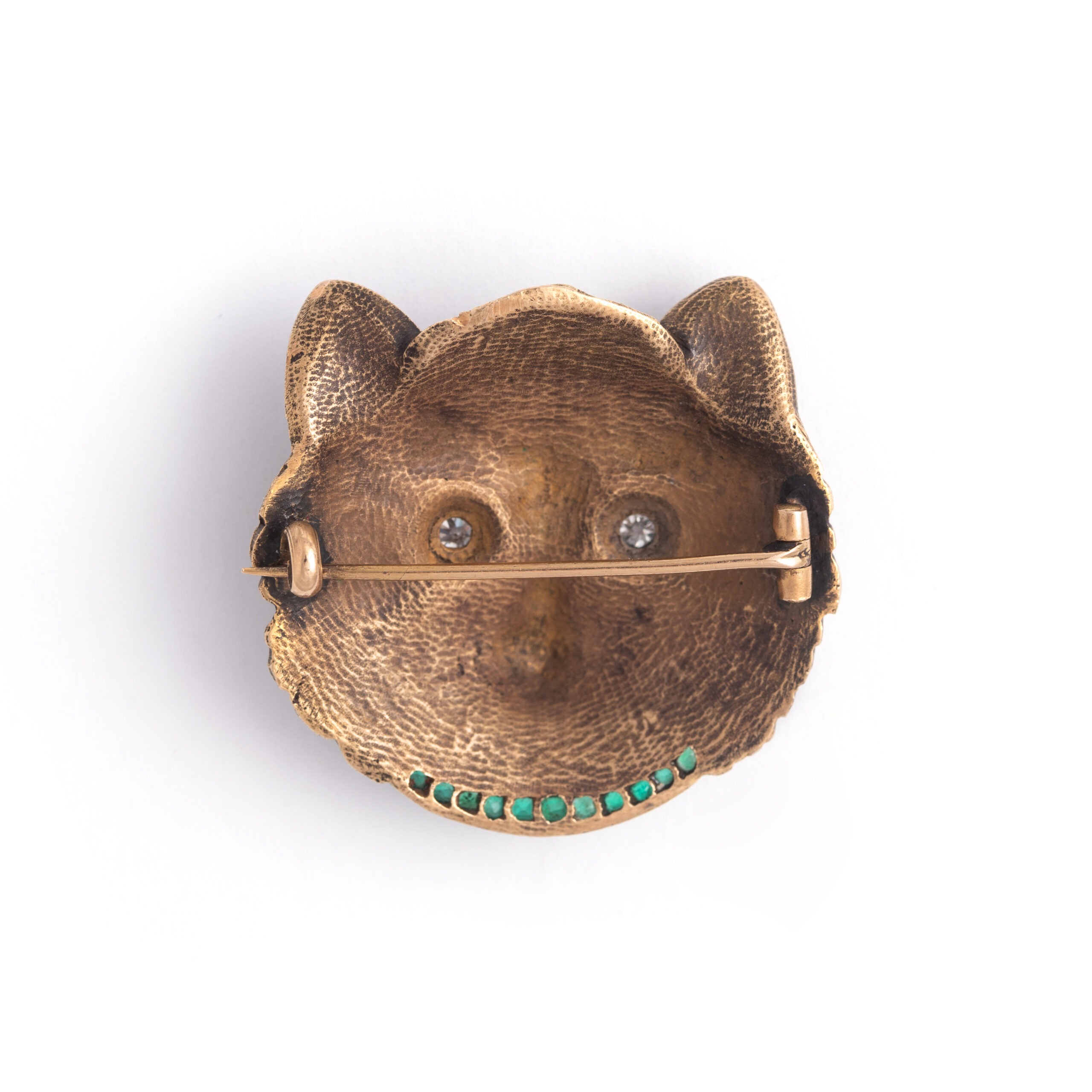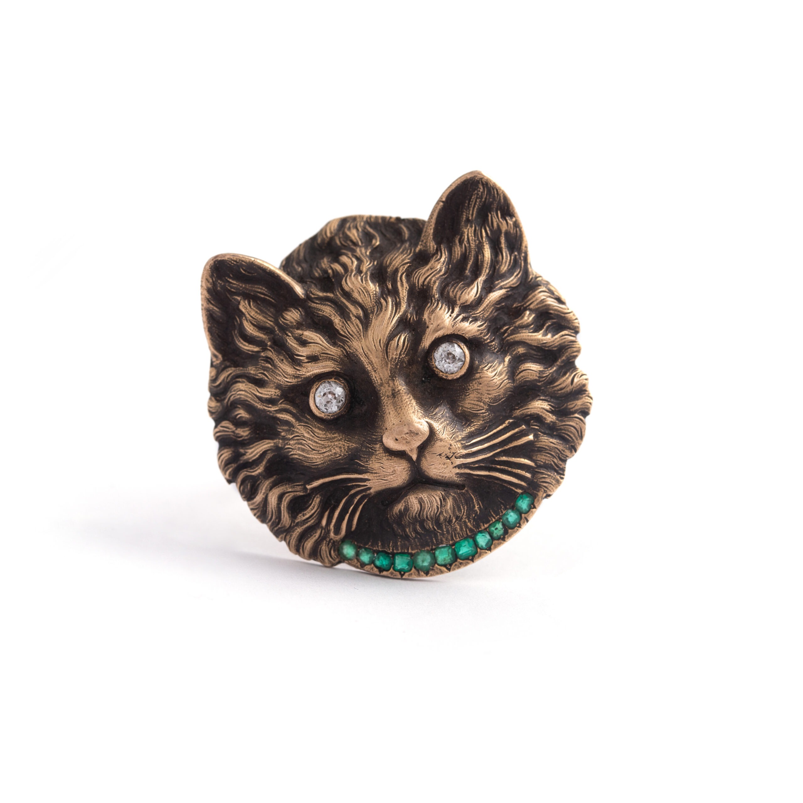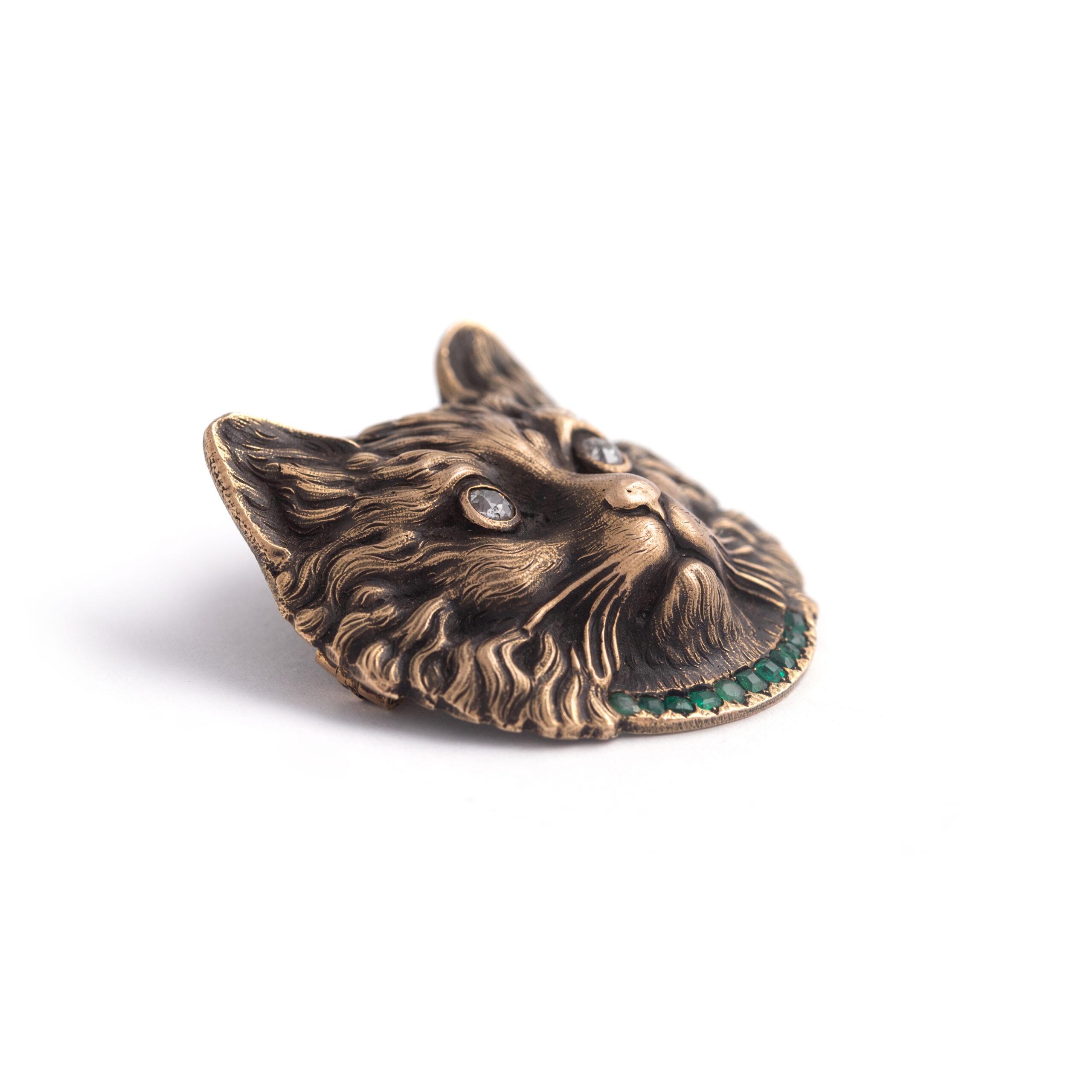 Cat’s face Brooch set with Diamond and Emerald