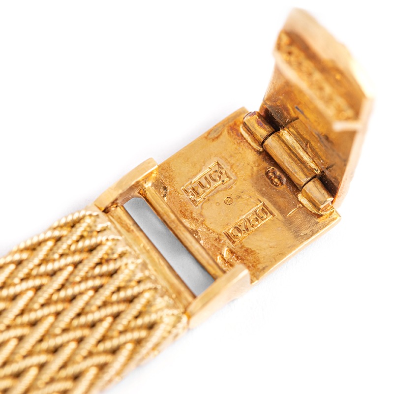As a mark of authenticity and prestige, the Chopard diamond yellow gold 18K wristwatch is signed by Chopard, a symbol of exceptional Swiss watchmaking. The watch is also numbered, further highlighting its exclusivity and rarity. With its unique identification number, you can be assured that you possess a truly special and collectible piece.