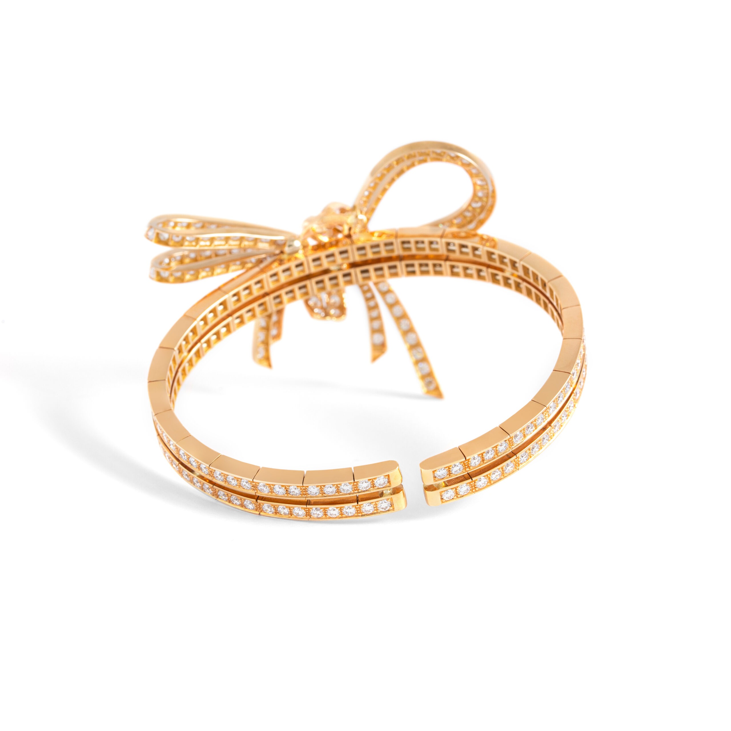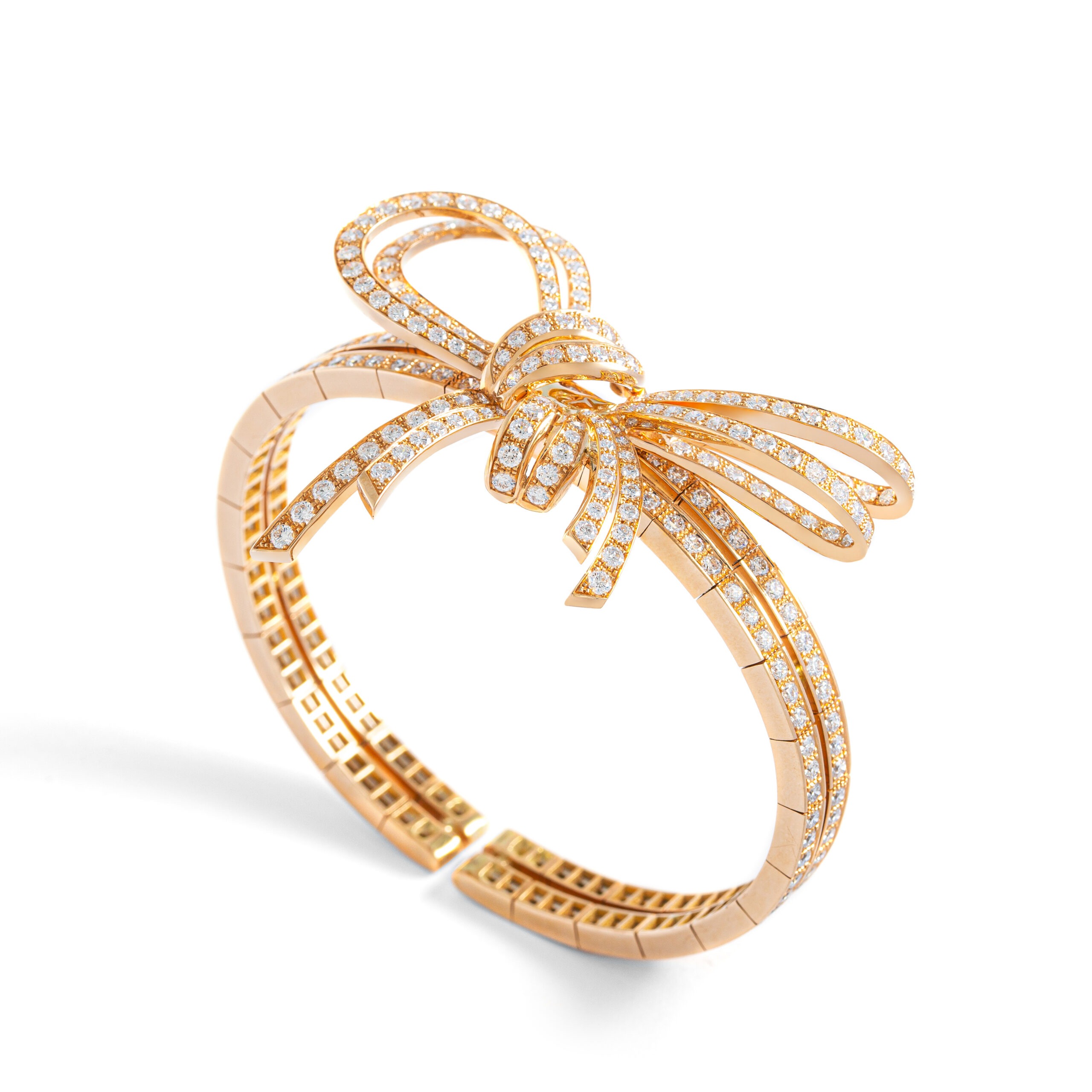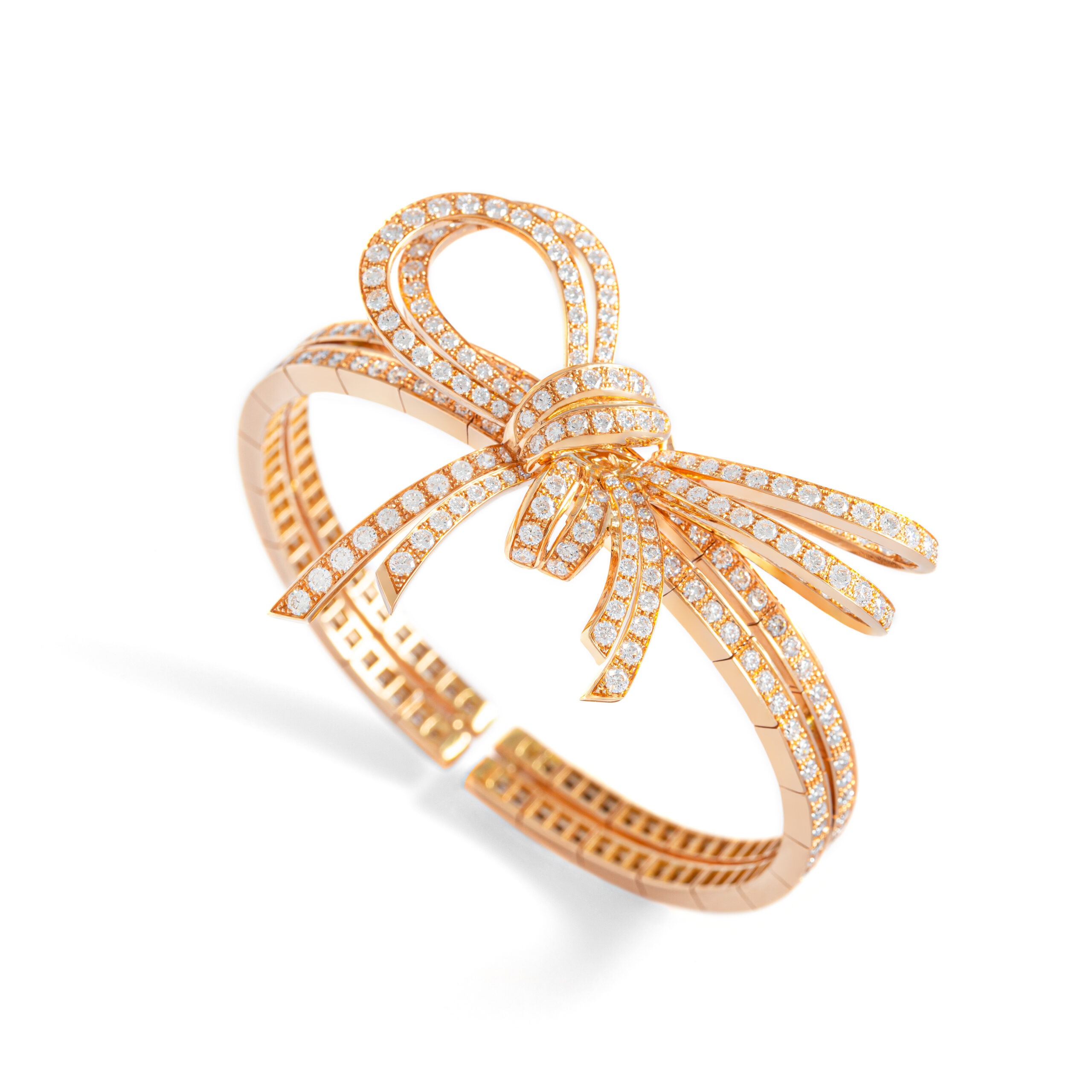 Elevate your ensemble with unparalleled sophistication wearing this important flexible bracelet crafted in luxurious red gold. Adorned with a breathtaking array of 309 exquisite diamonds totaling 8.22 carats, this statement piece exudes opulence and refinement.