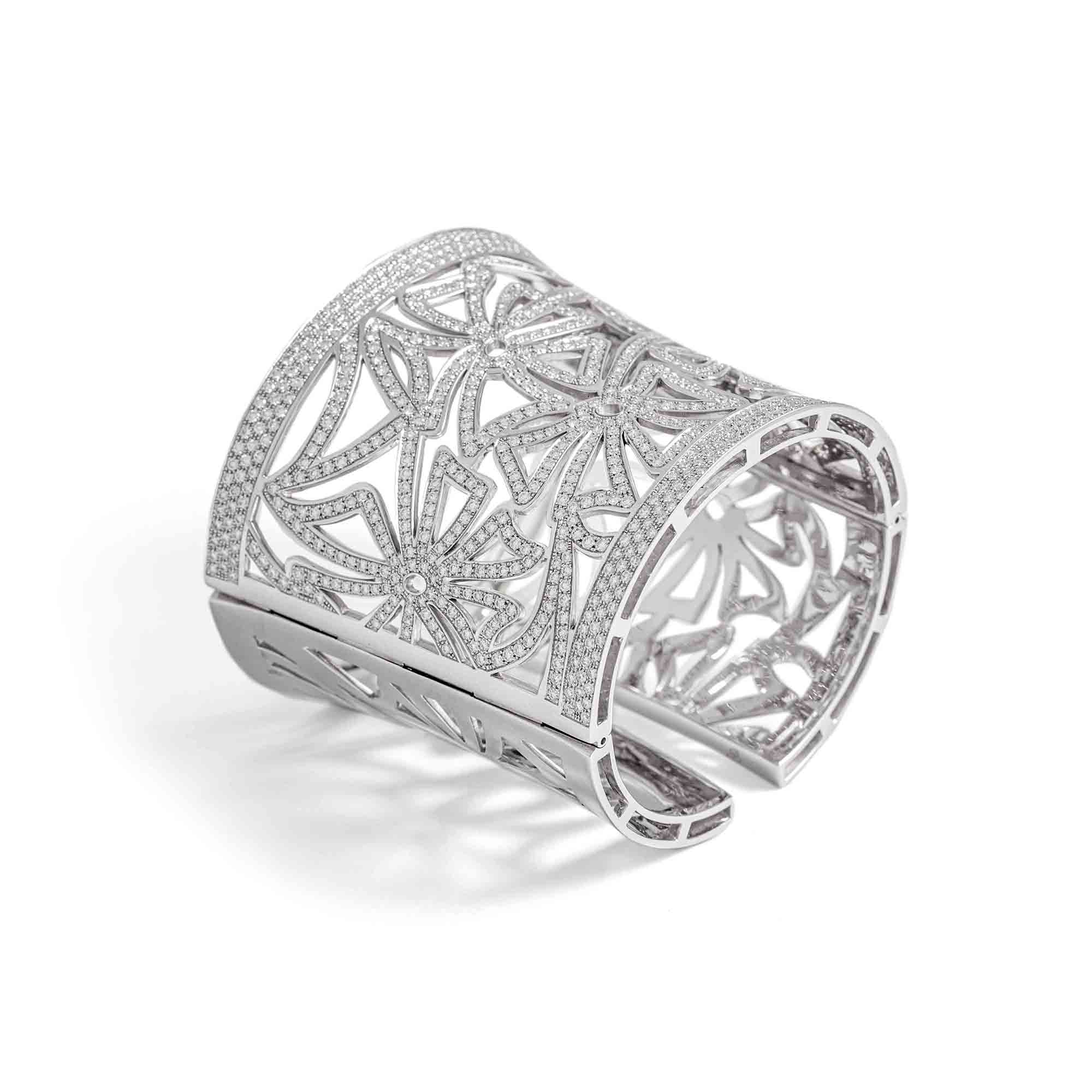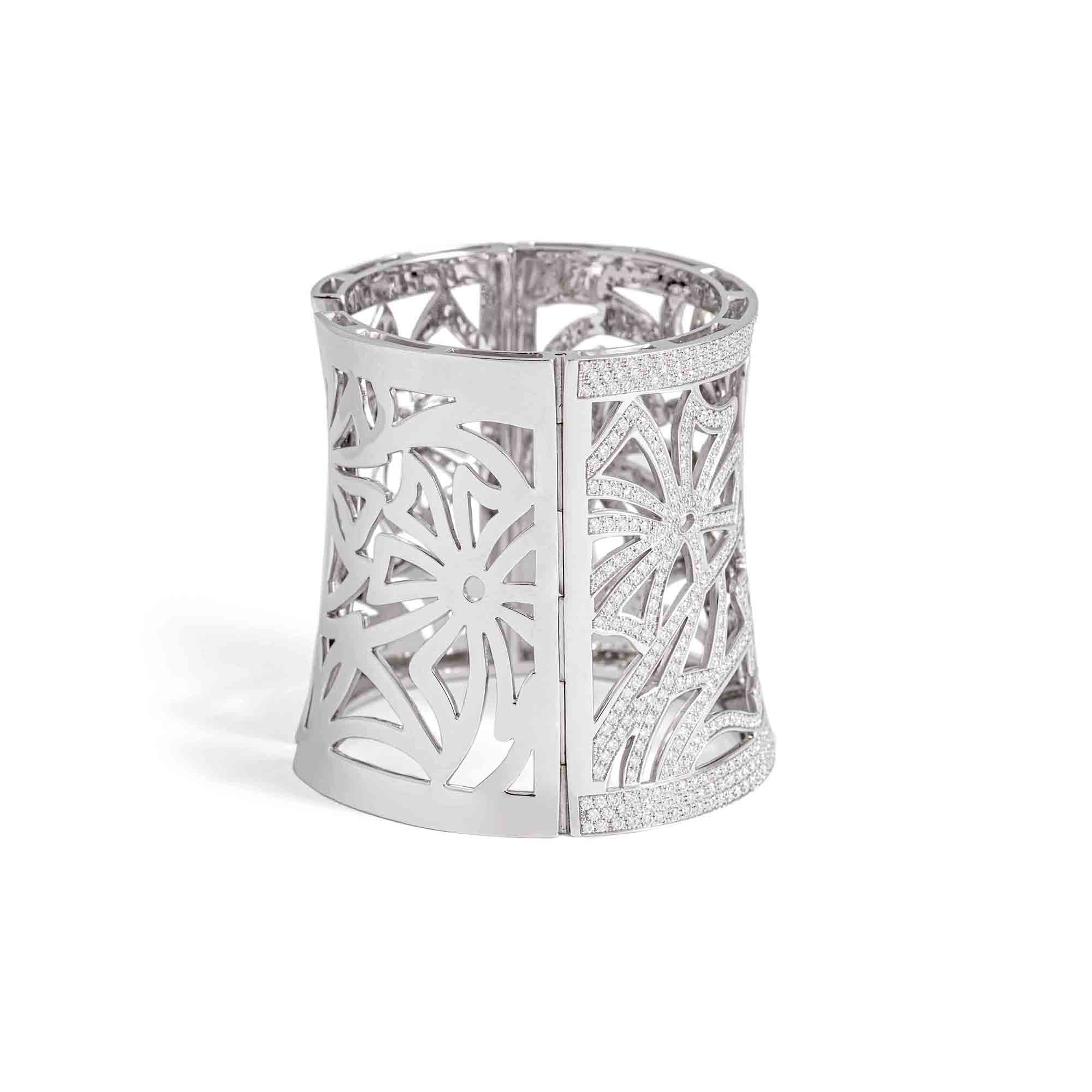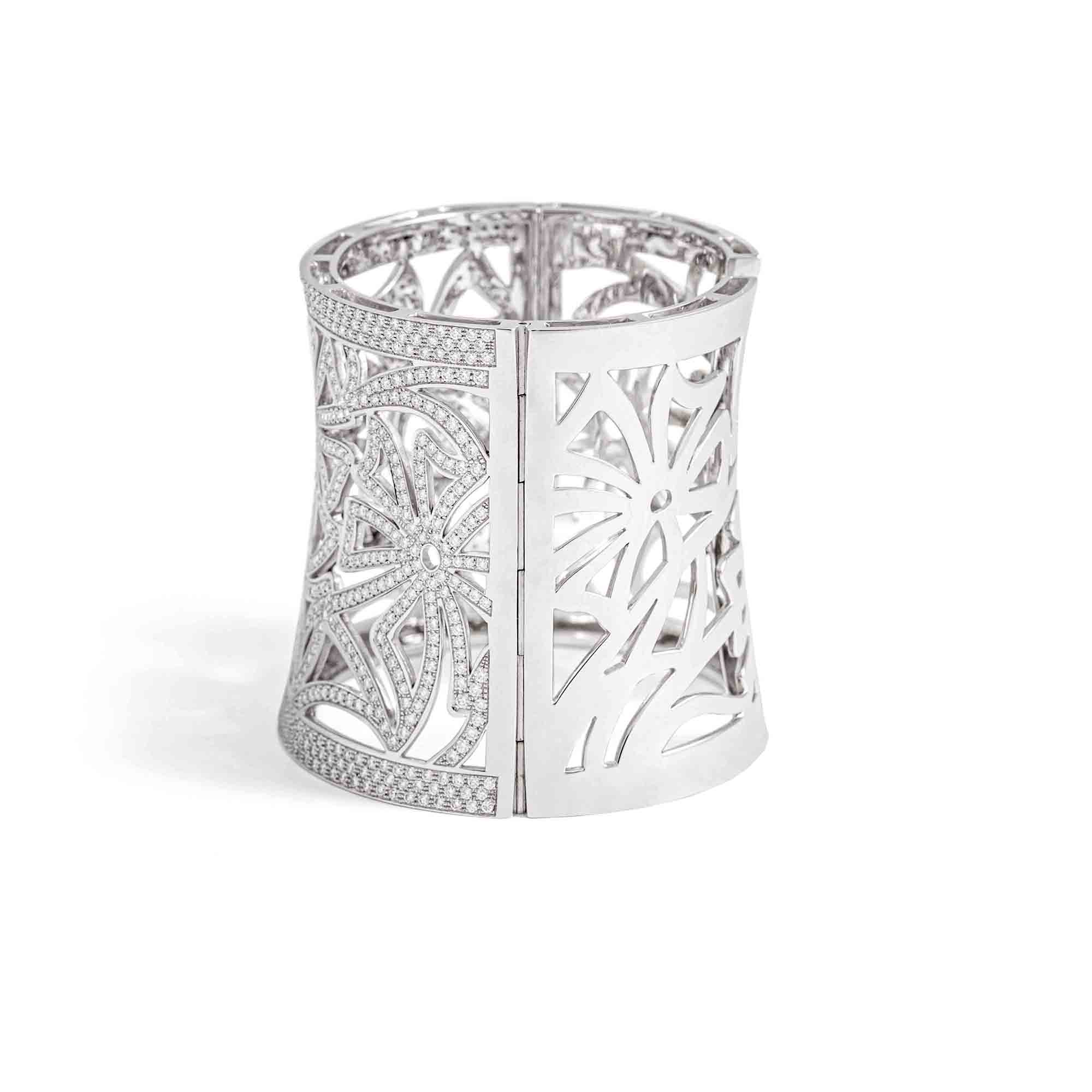 Rigid cuff bracelet in 18kt white gold set with 836 diamonds 11.60 cts