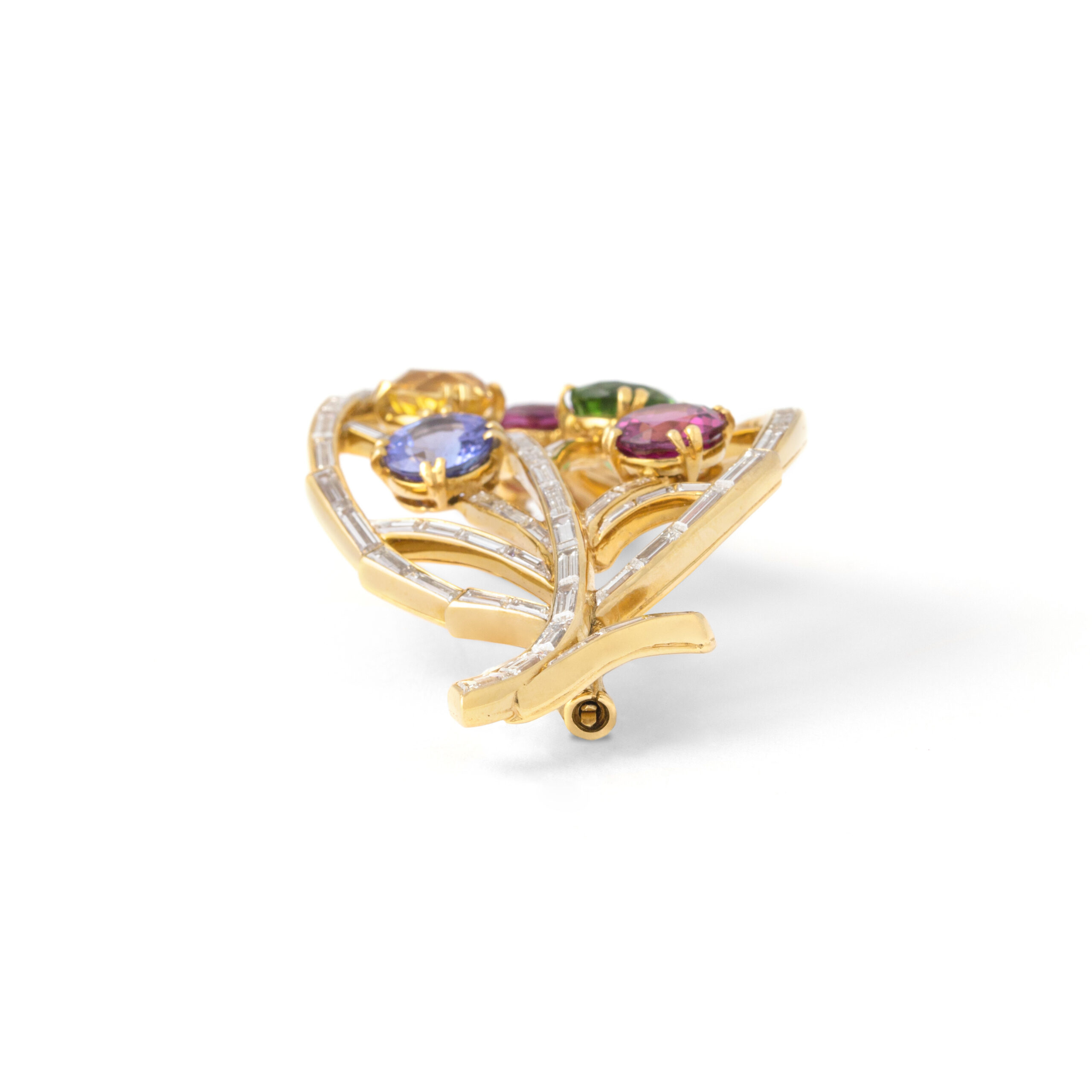 This Diamond and Gemstone Leaf Brooch is a true masterpiece, capturing the essence of nature’s beauty and showcasing it in a wearable work of art. Its refined design and expert craftsmanship make it a timeless and cherished addition to any jewelry collection.
