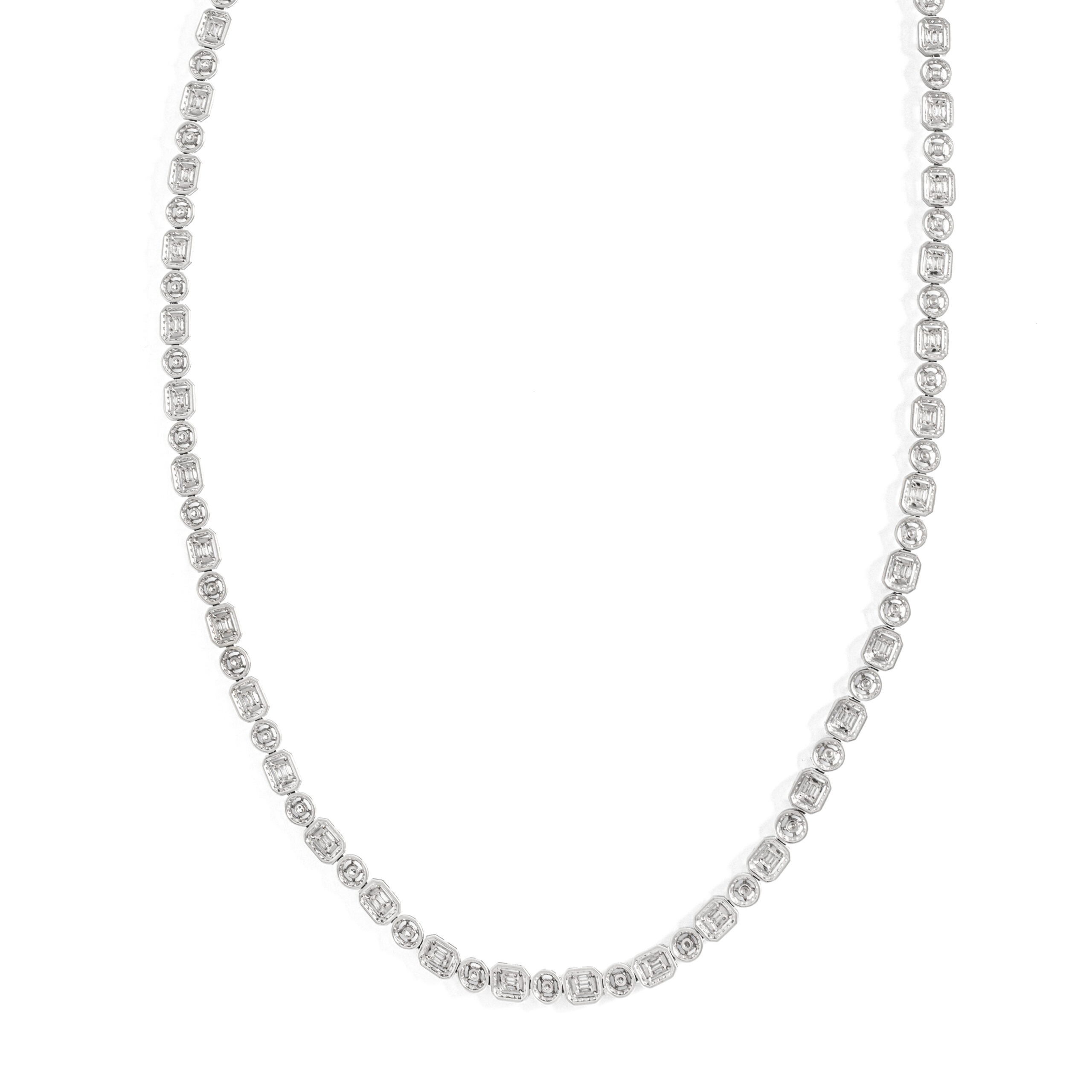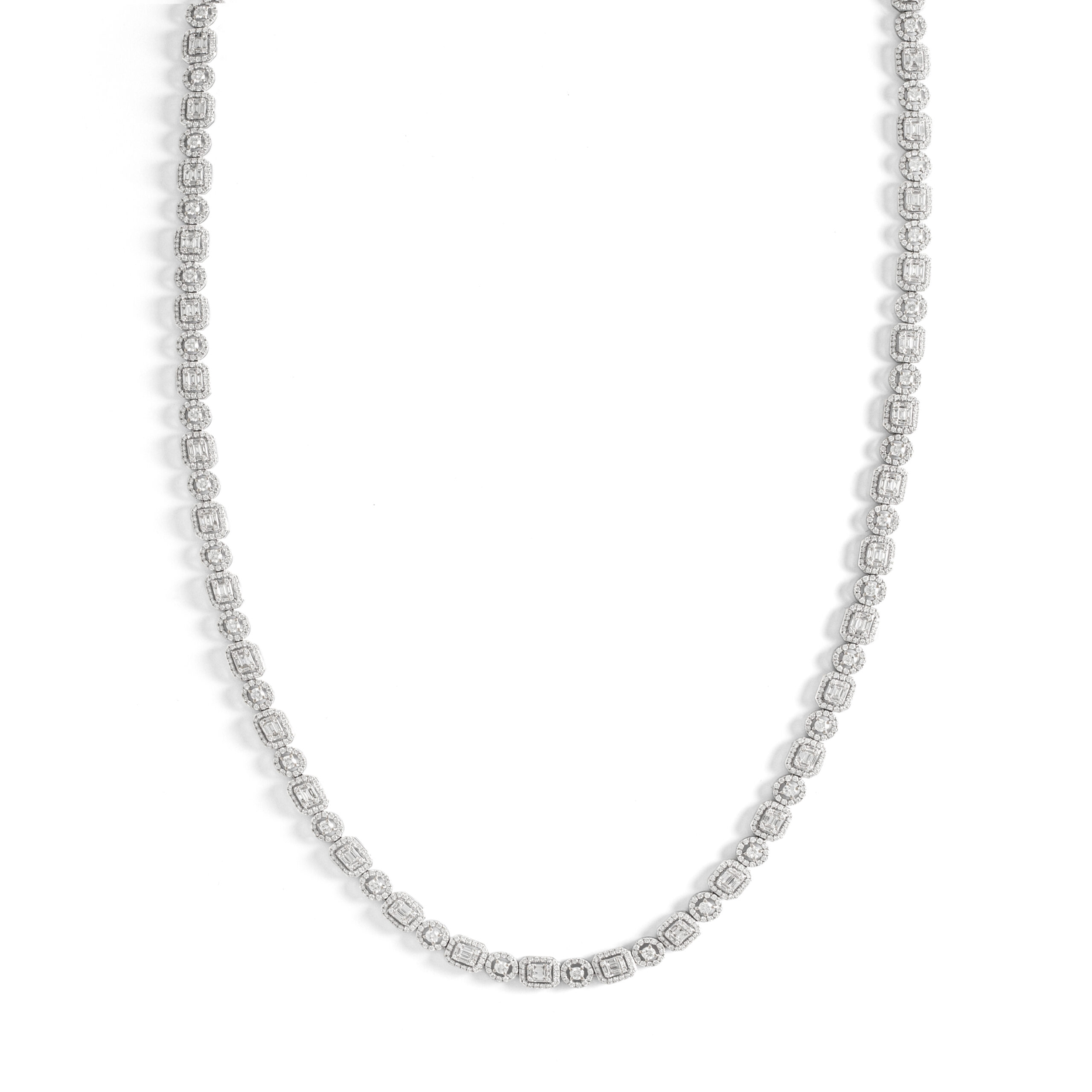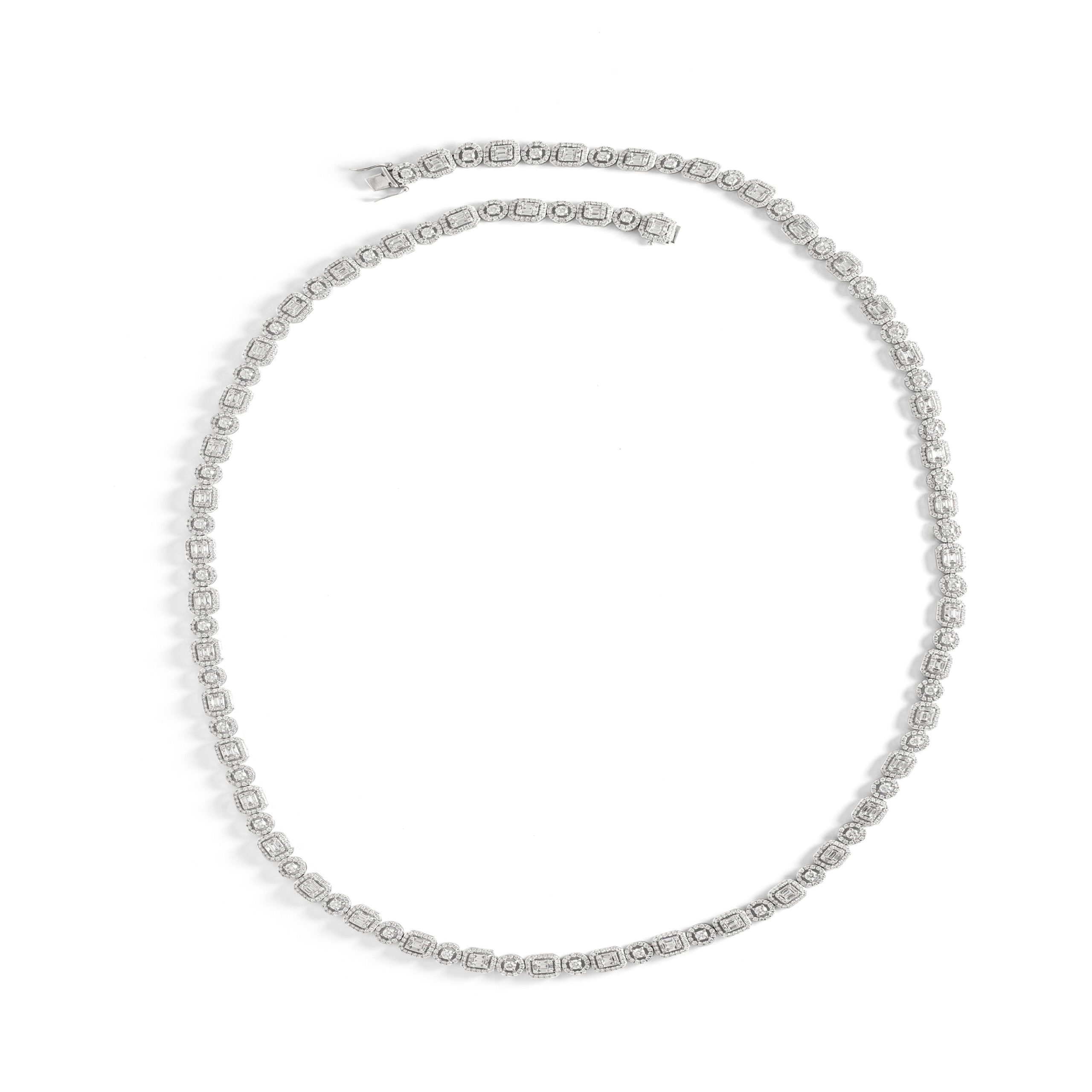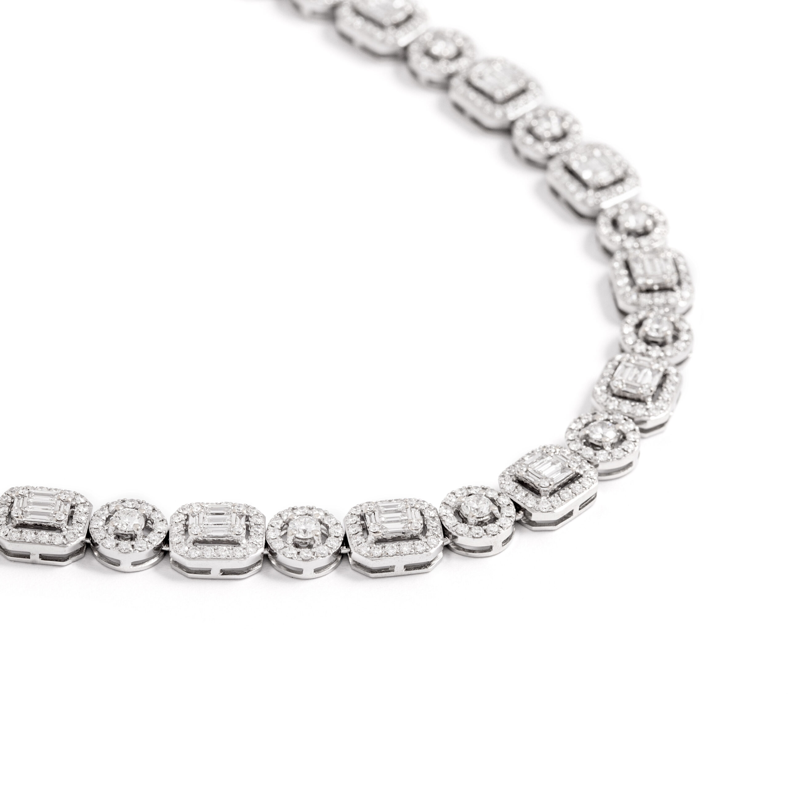 Necklace in 18kt white gold set with 235 baguette cut diamonds 4.59 cts and 1645 diamonds 13.97 cts (74 cm)