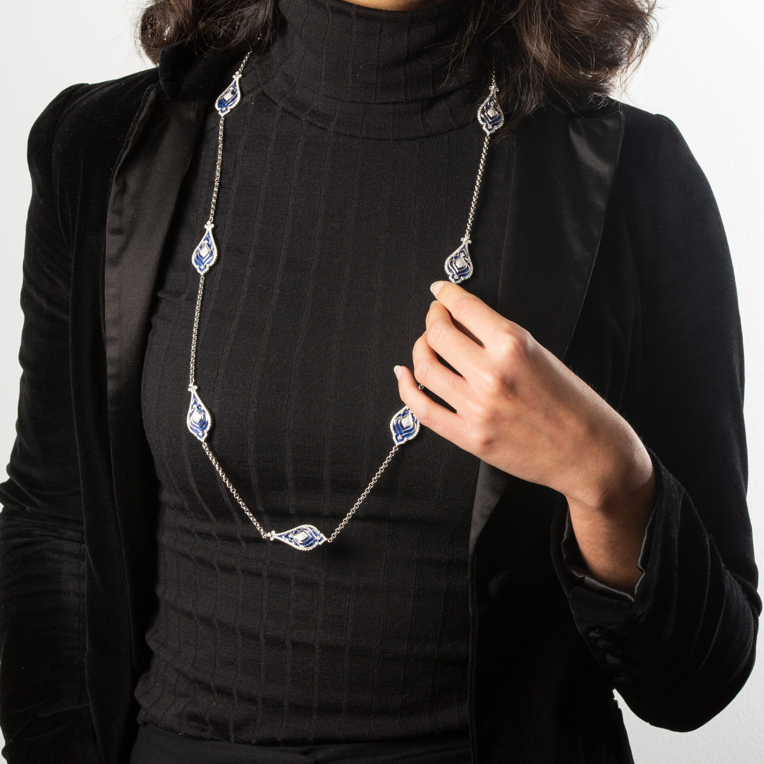 Necklace in 18kt white gold set with 720 diamonds 6.82 cts and 10 lapis lazuli 46.96 cts.