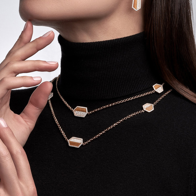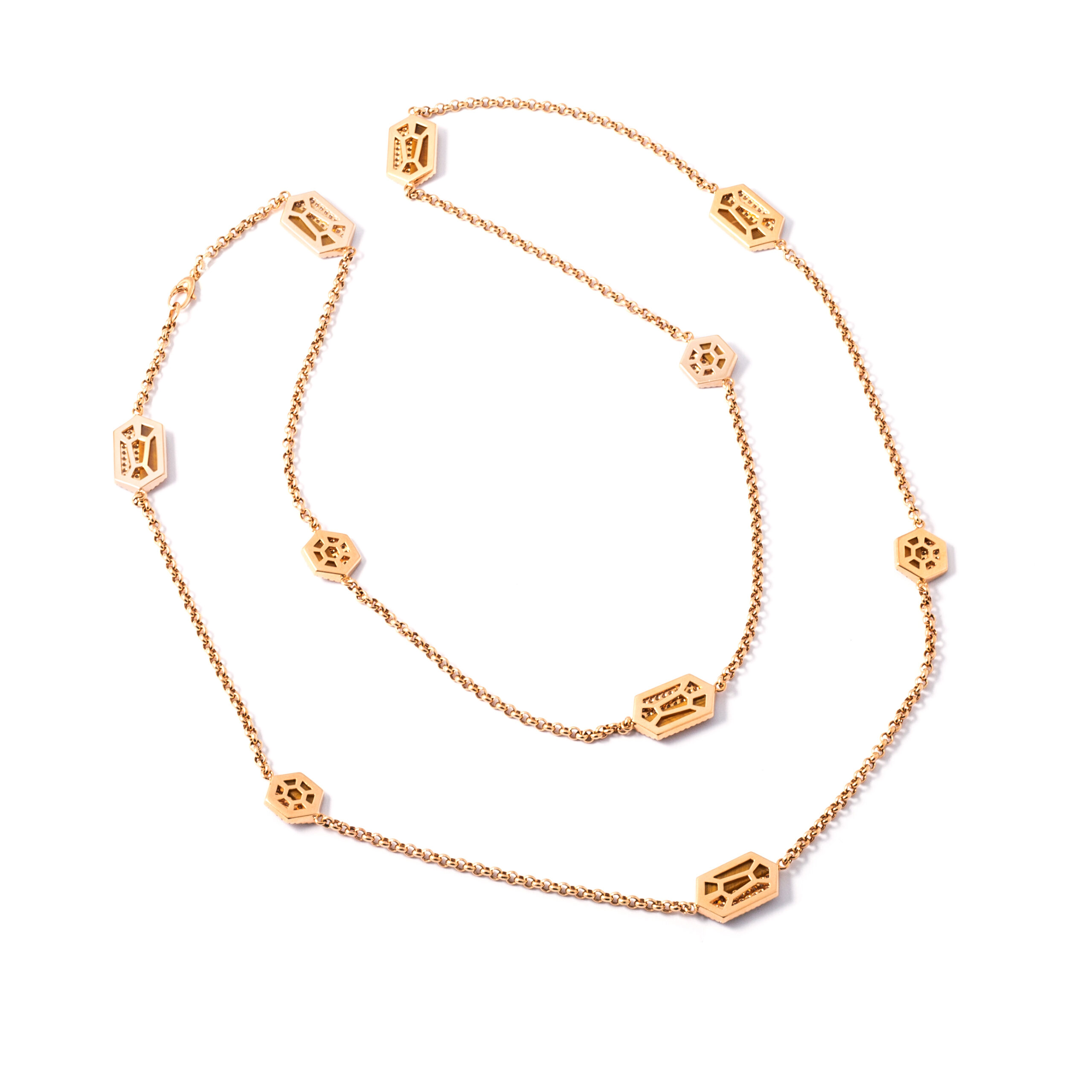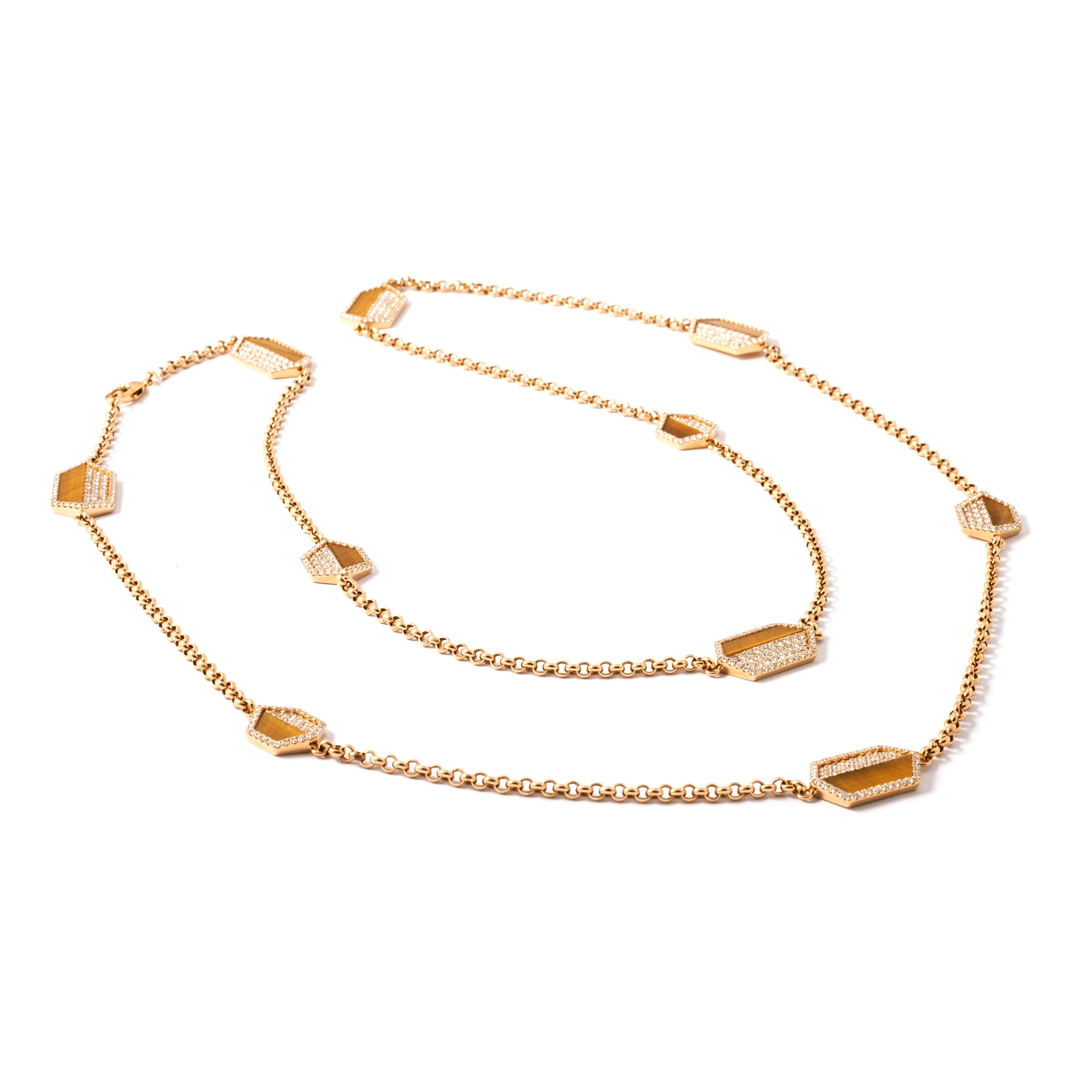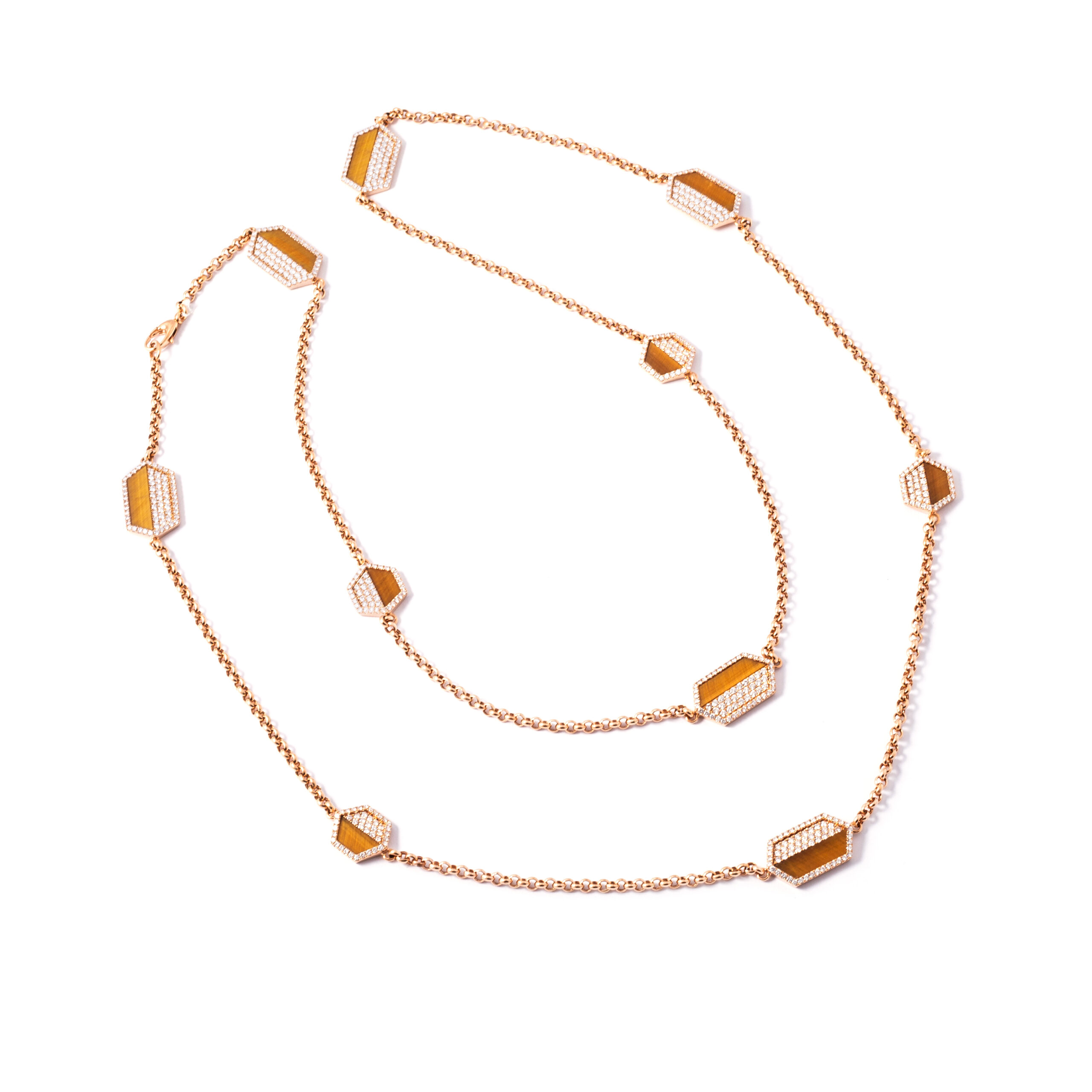 Necklace in 18kt pink gold set with 562 diamonds 6.14 cts and 10 tiger eye 15.44 cts
