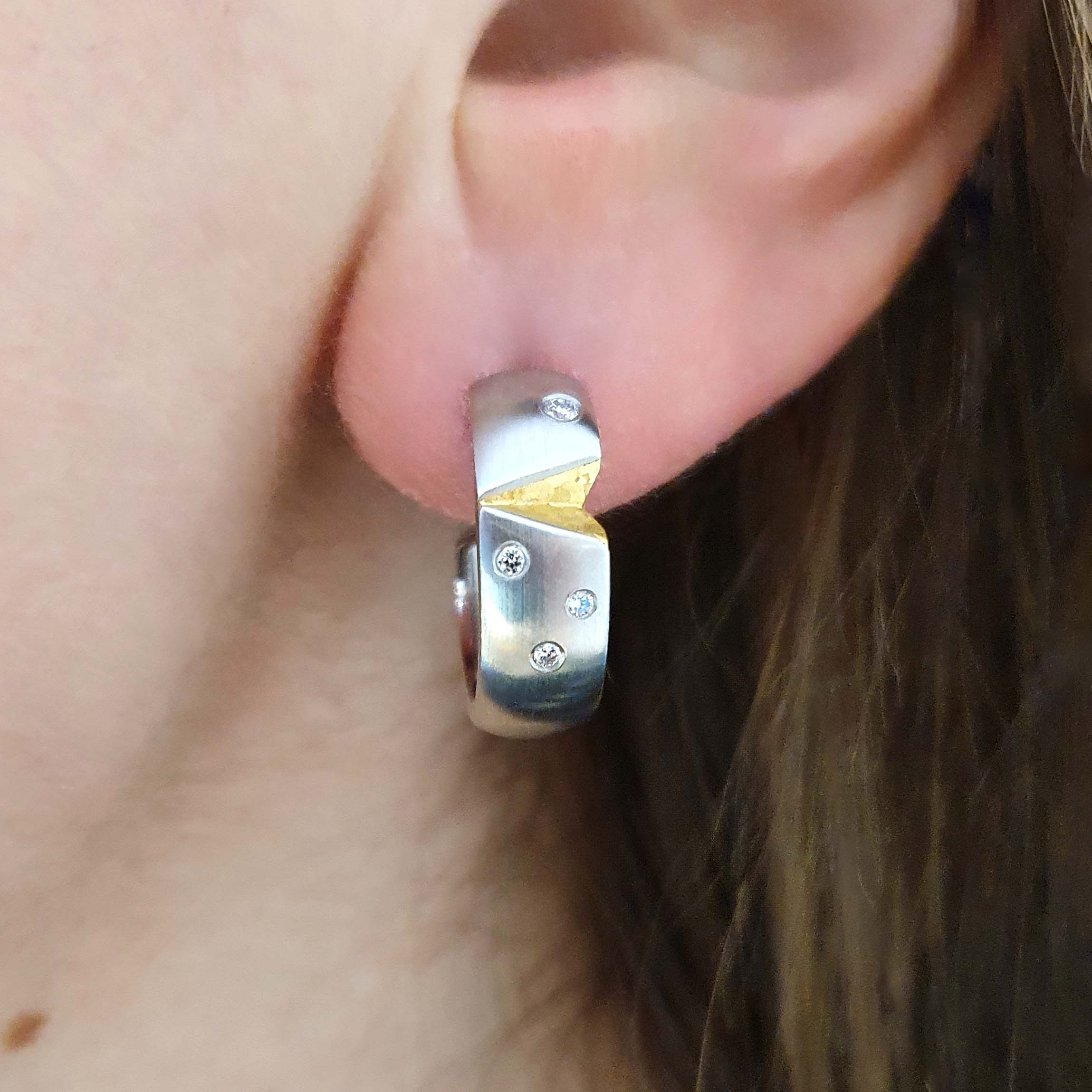 Each earring features a brilliant diamond with a weight of 0.18 carats, adding a touch of sparkle that catches the light with every movement. The diamonds are carefully selected for their exceptional quality and radiance, ensuring a captivating and luminous effect.