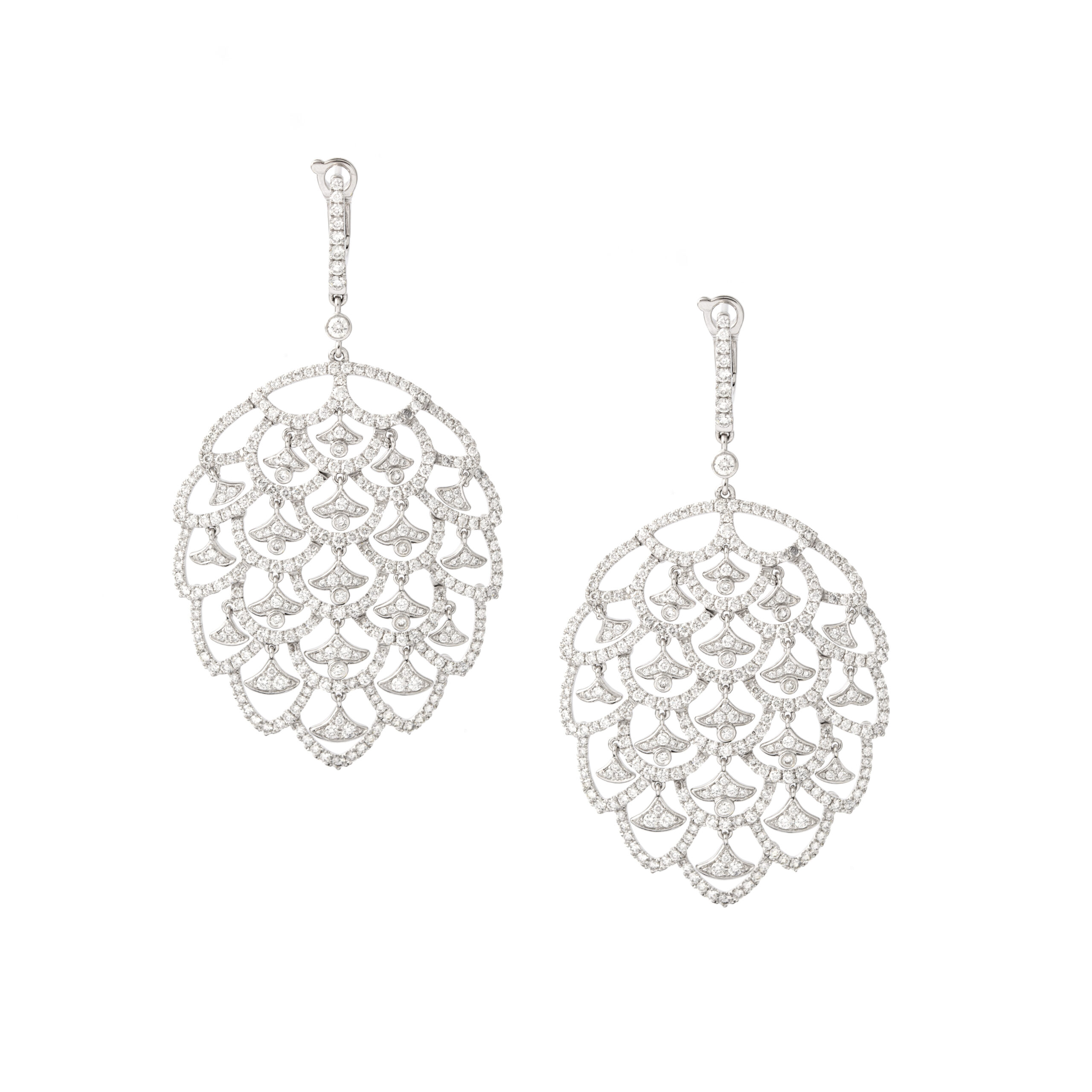 Earrings in 18kt white gold set with 664 diamonds 6.05cts.