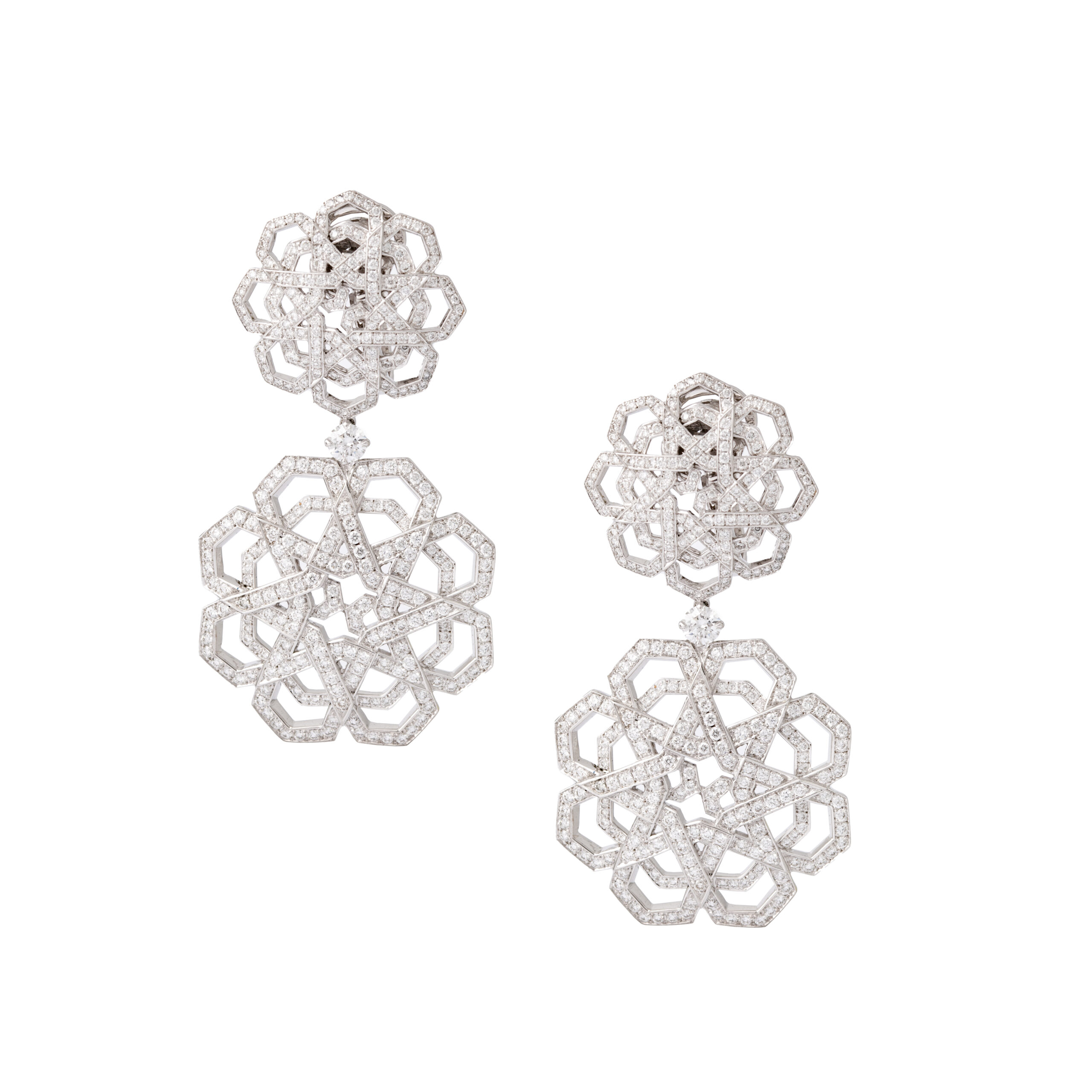 Earrings in 18kt white gold set with 698 diamonds 2.77 cts.