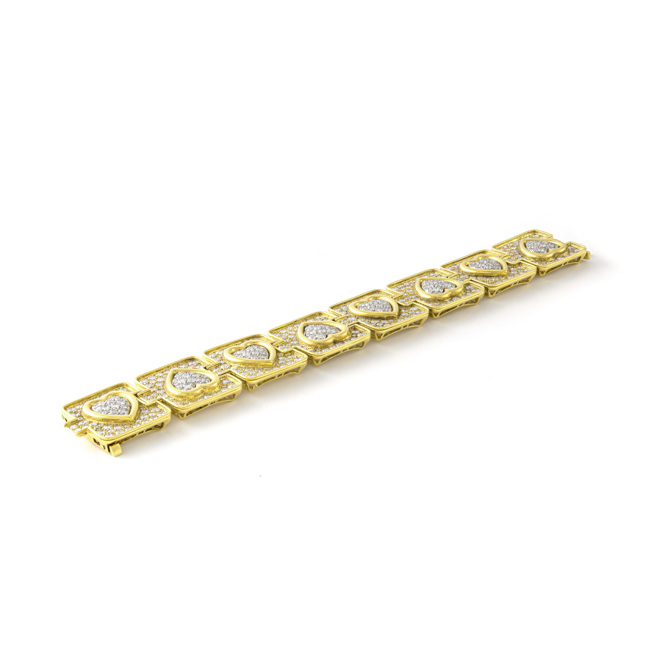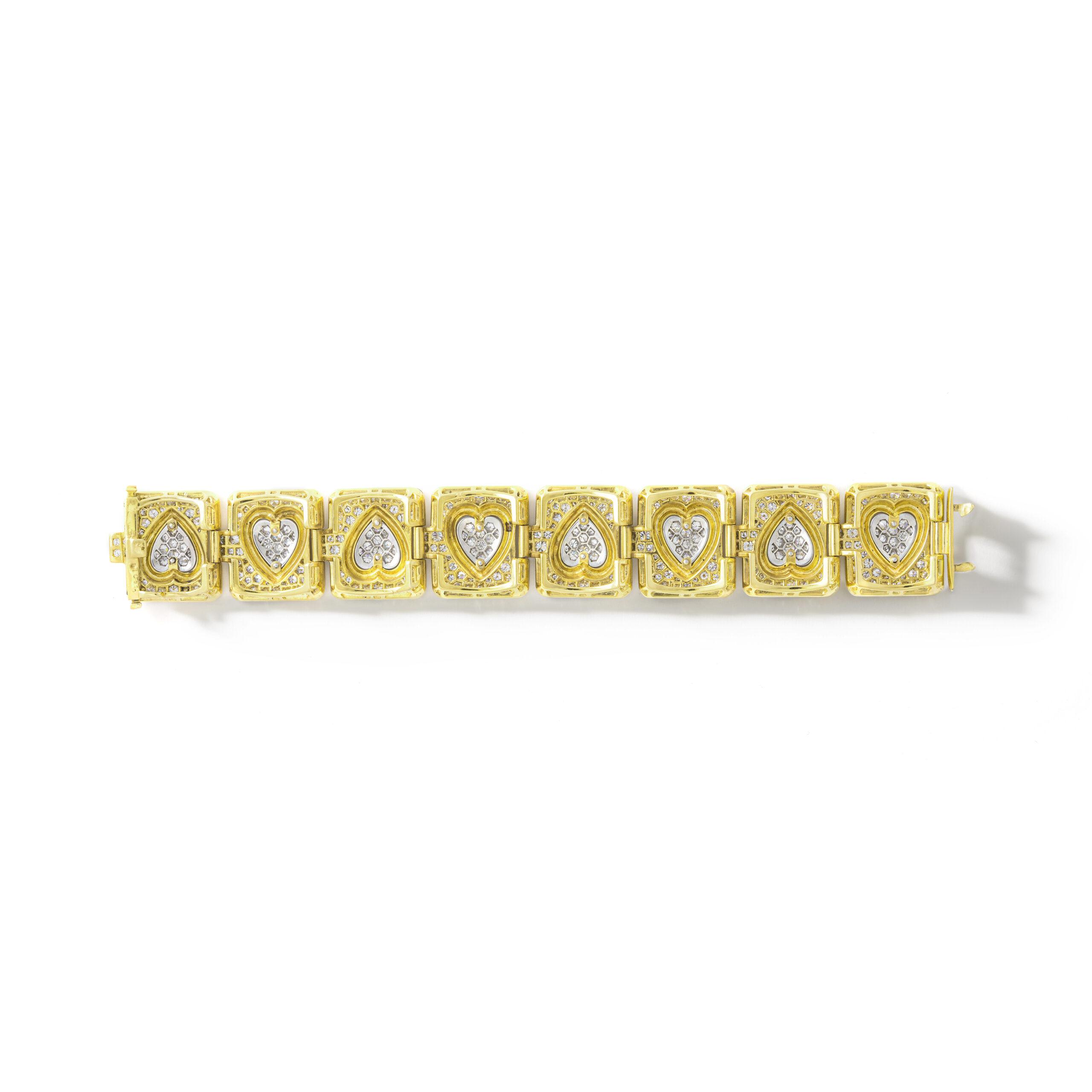 Lovely Heart shapes in platinum and diamond on a yellow gold bracelet. French marks. Circa 1980.