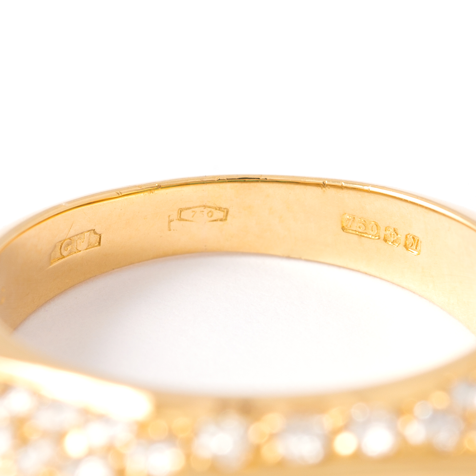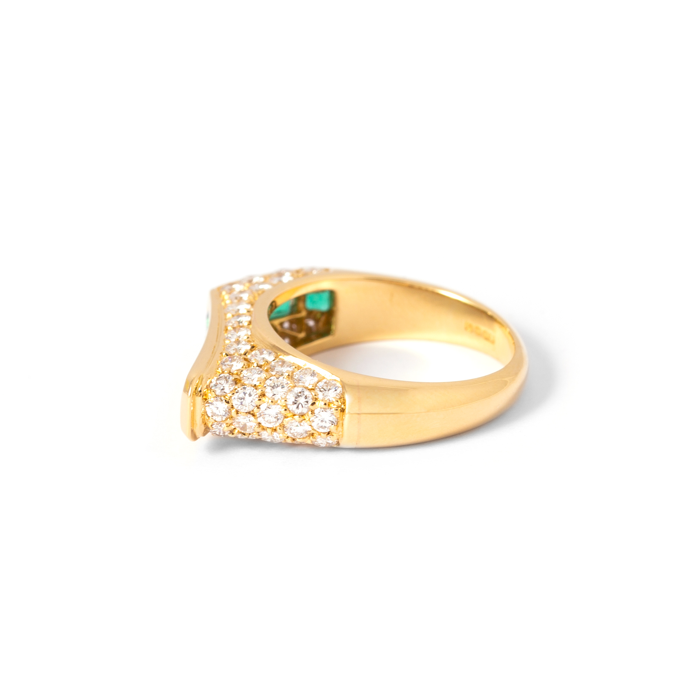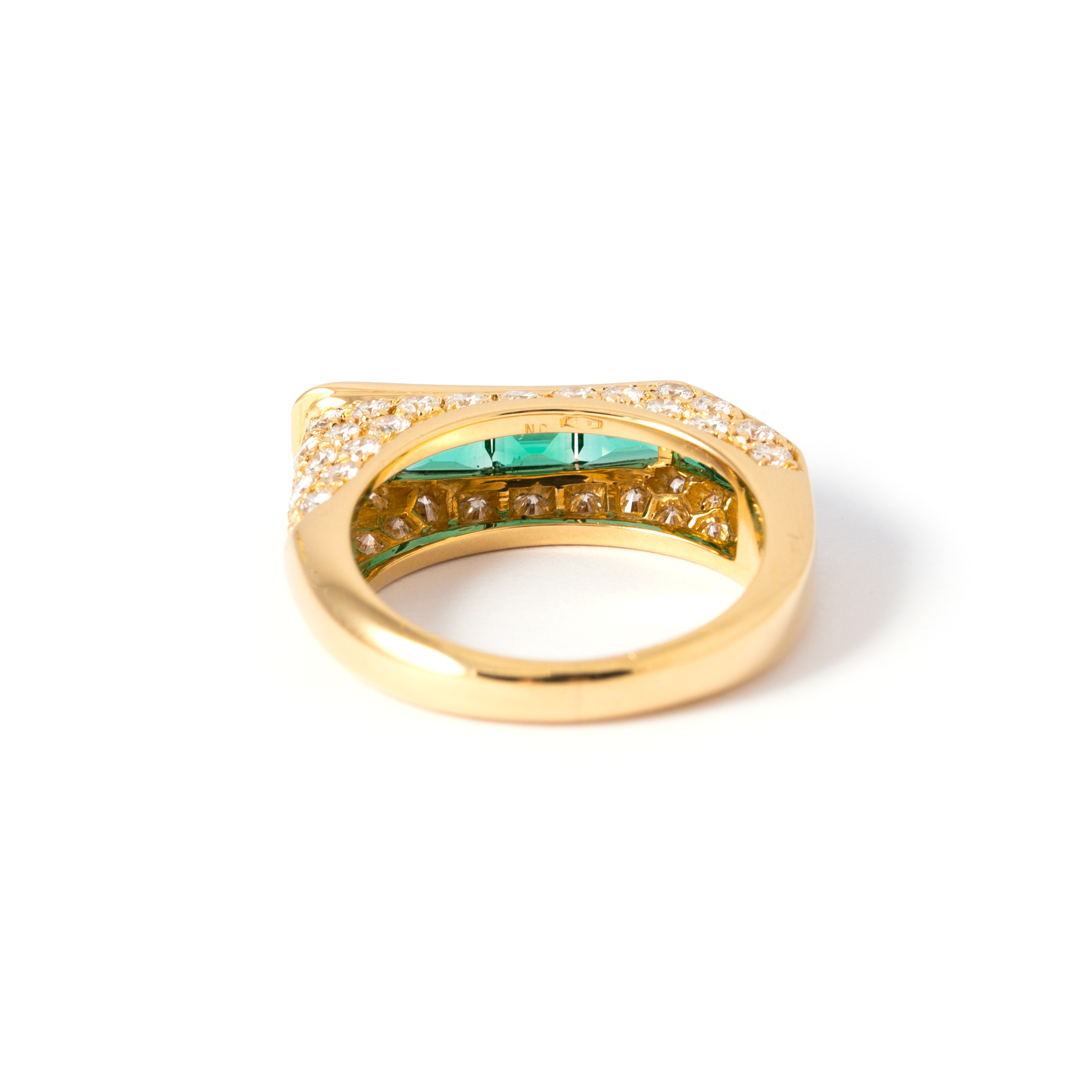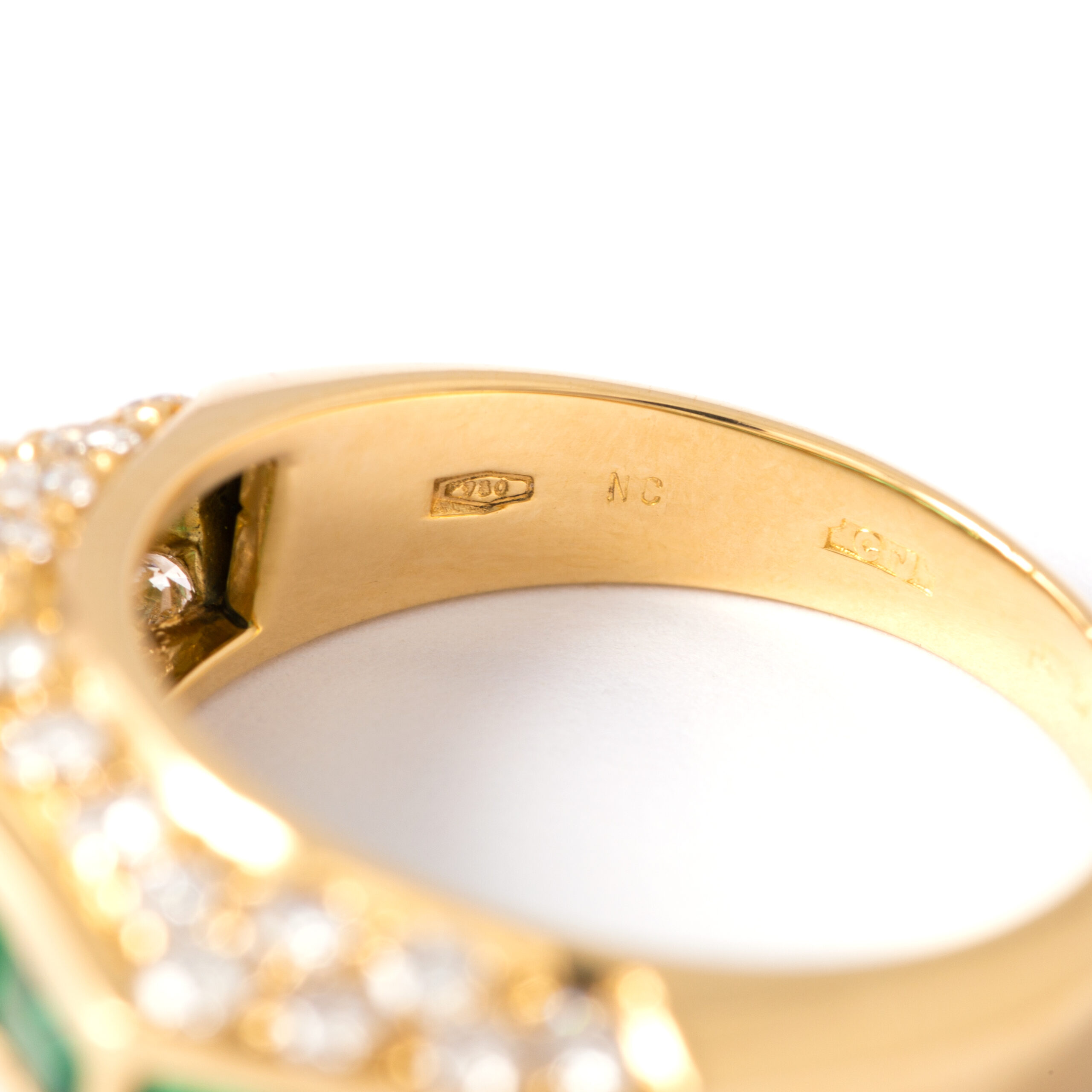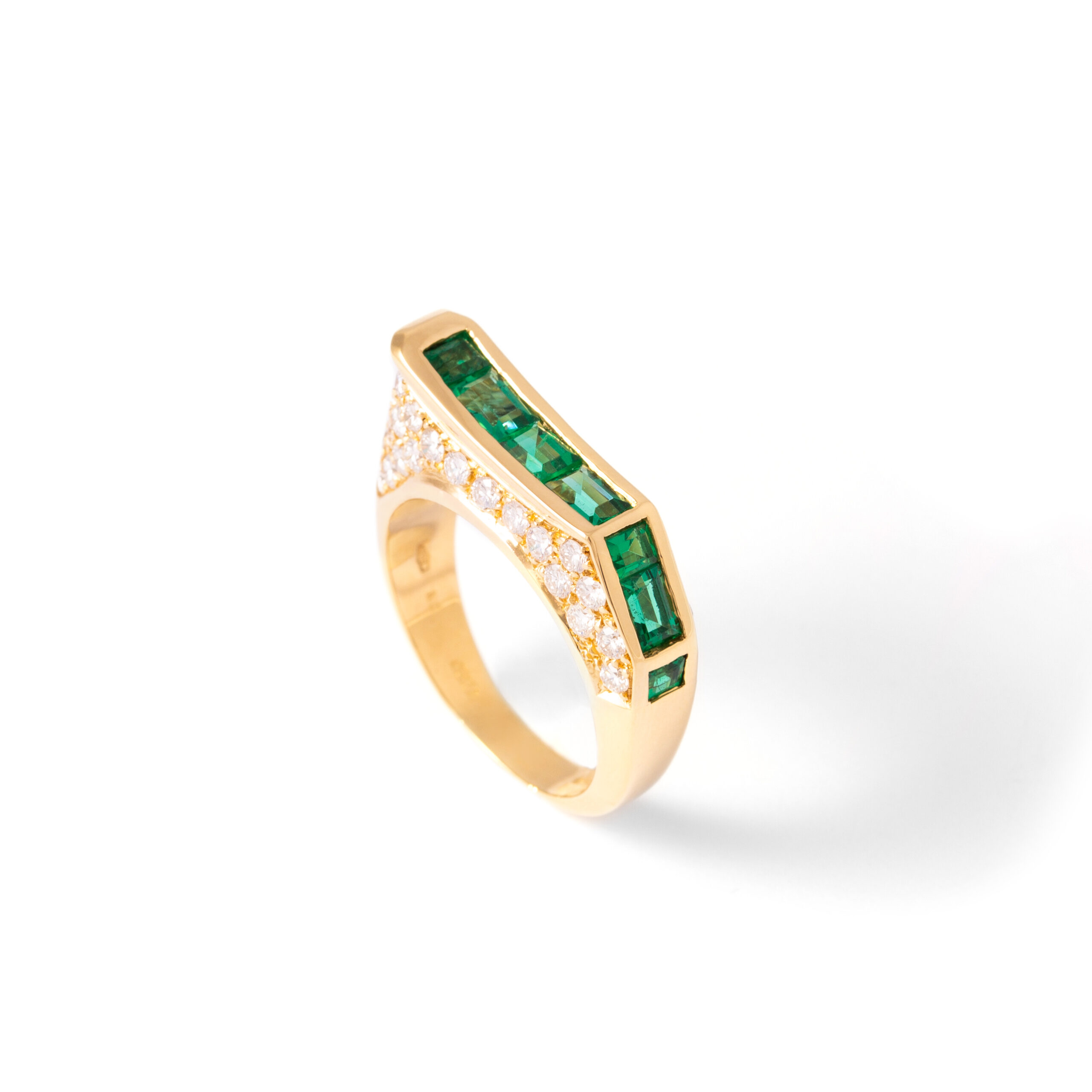Ring in 18kt yellow gold set with square cut emeralds 0.92 cts and diamonds