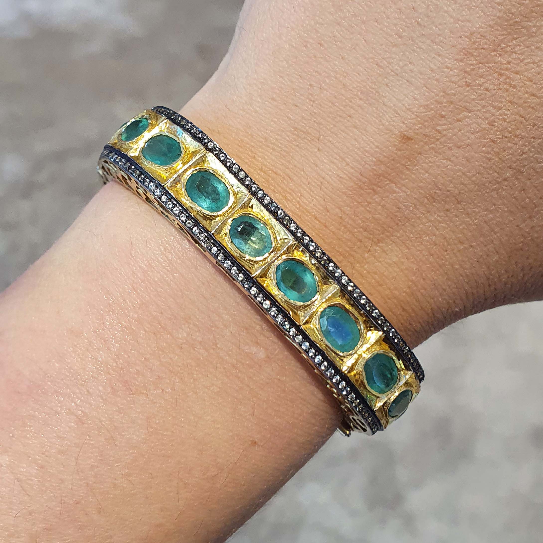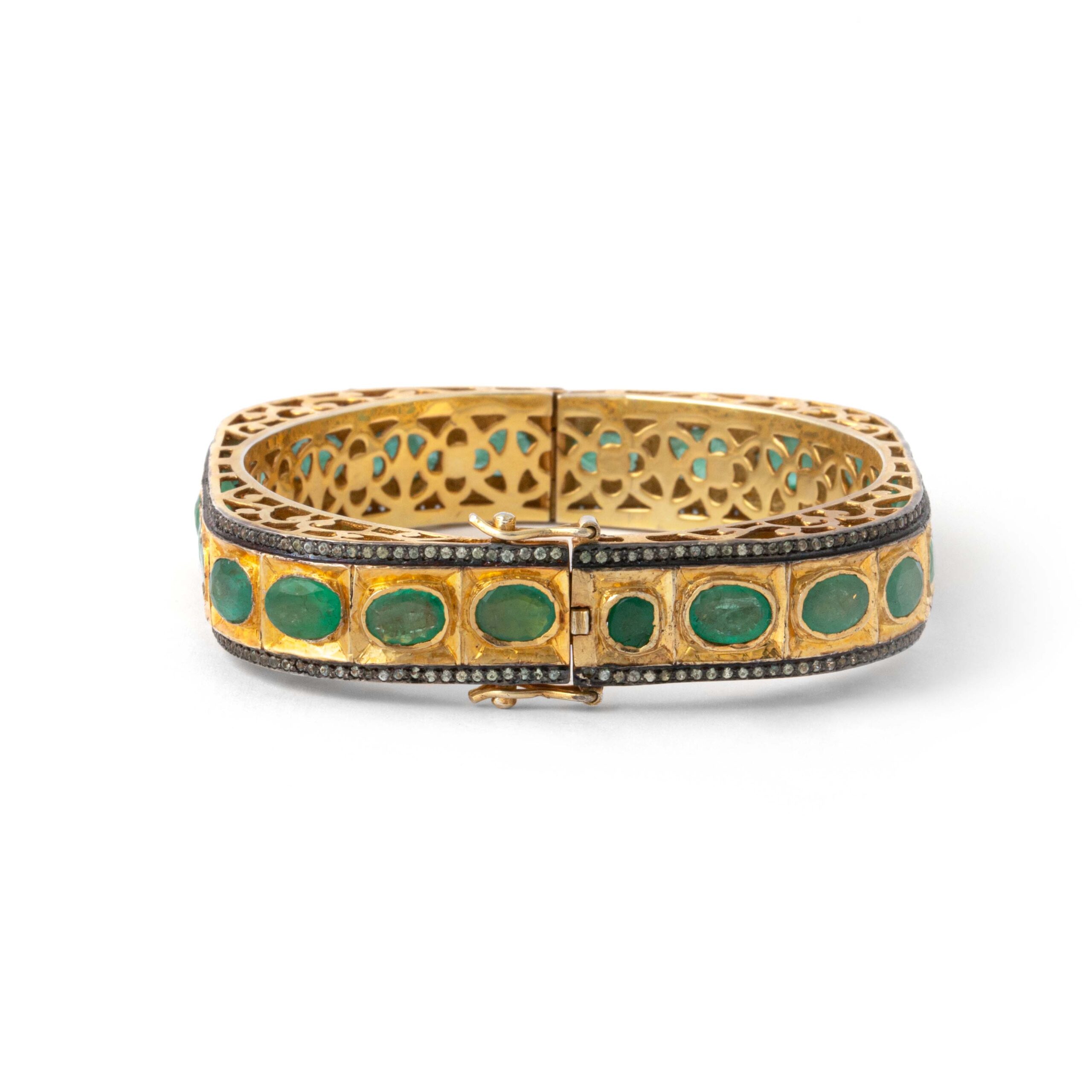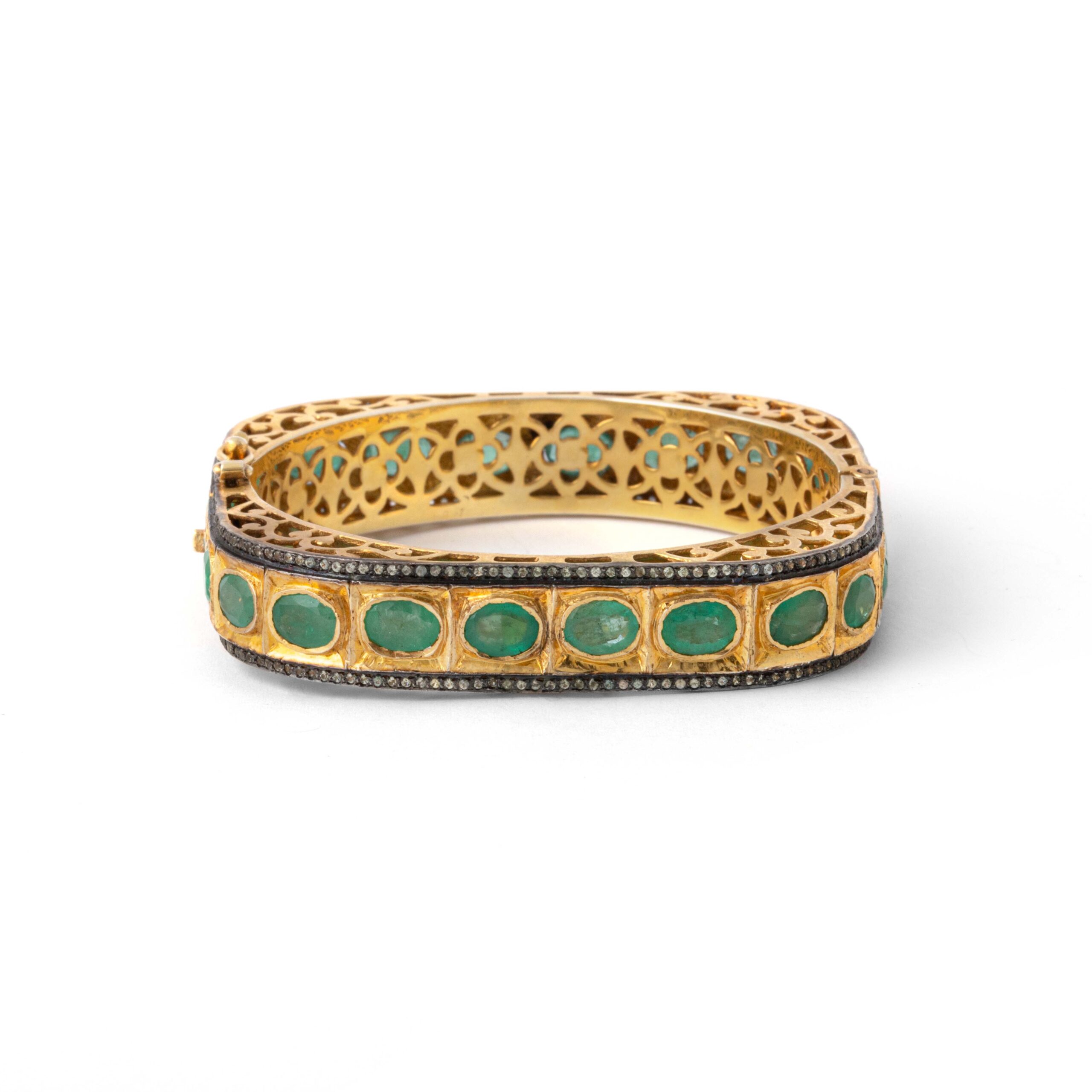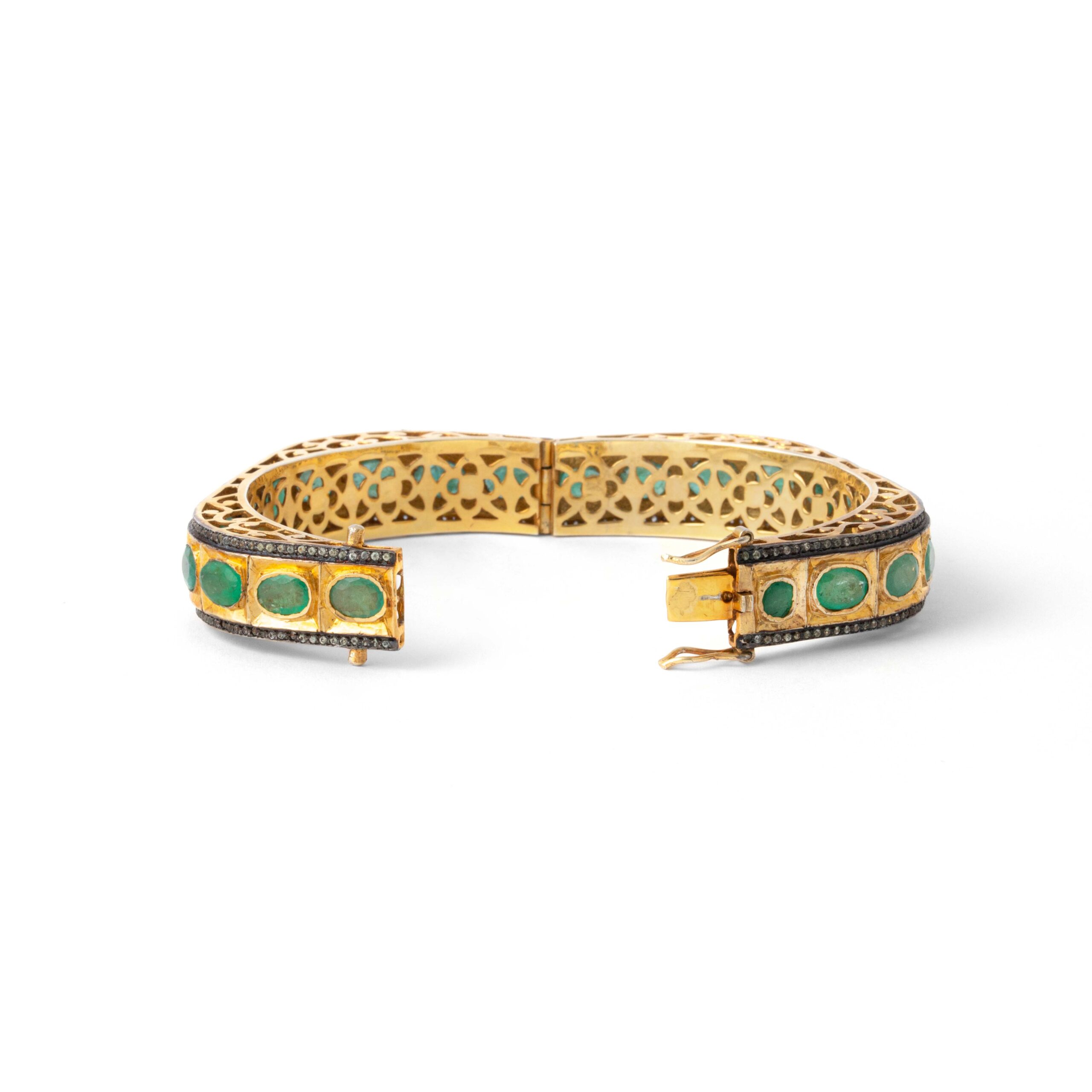 Behold the allure of this captivating Emerald and Diamond Gold Bangle Bracelet, a masterpiece of Indian craftsmanship.