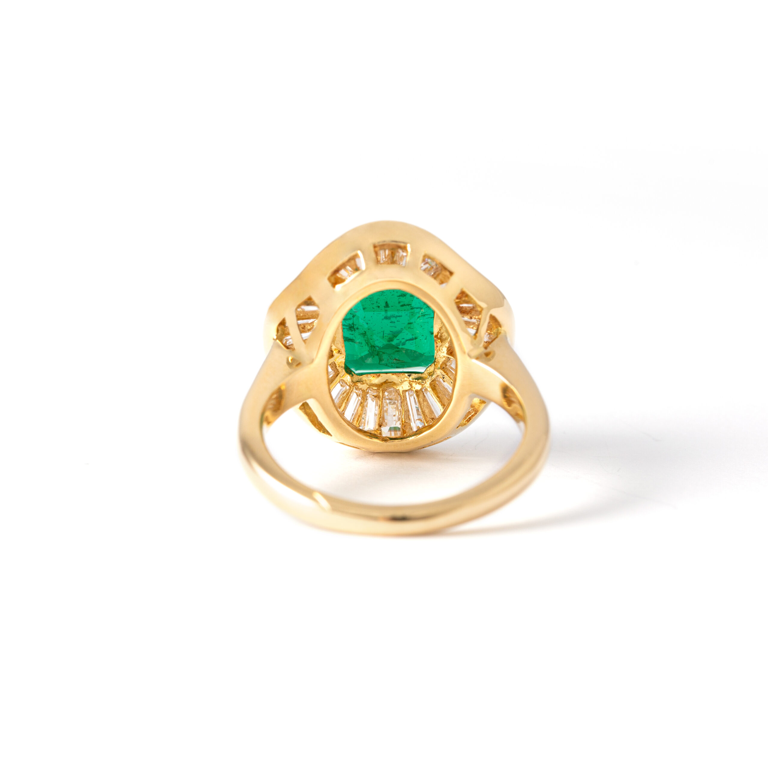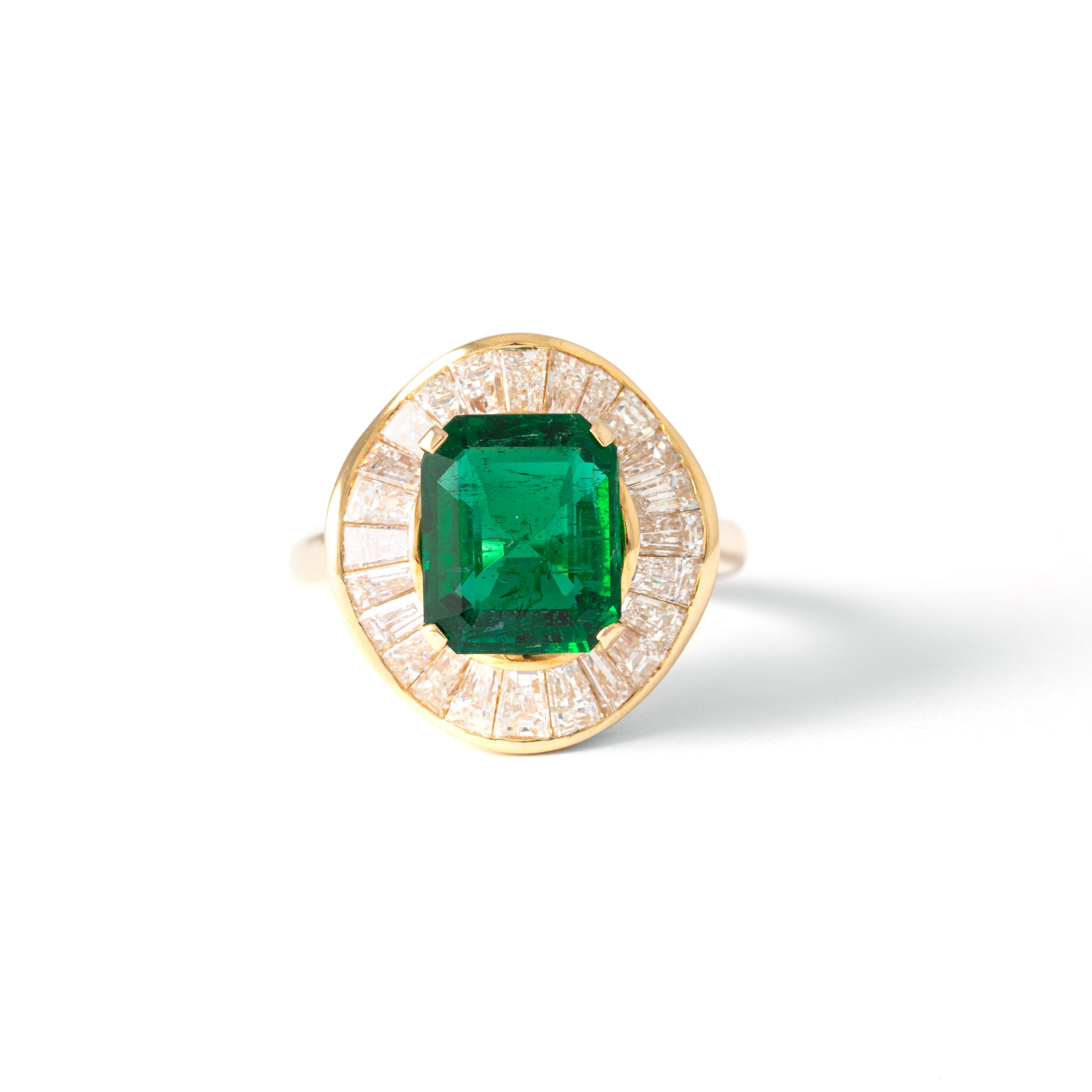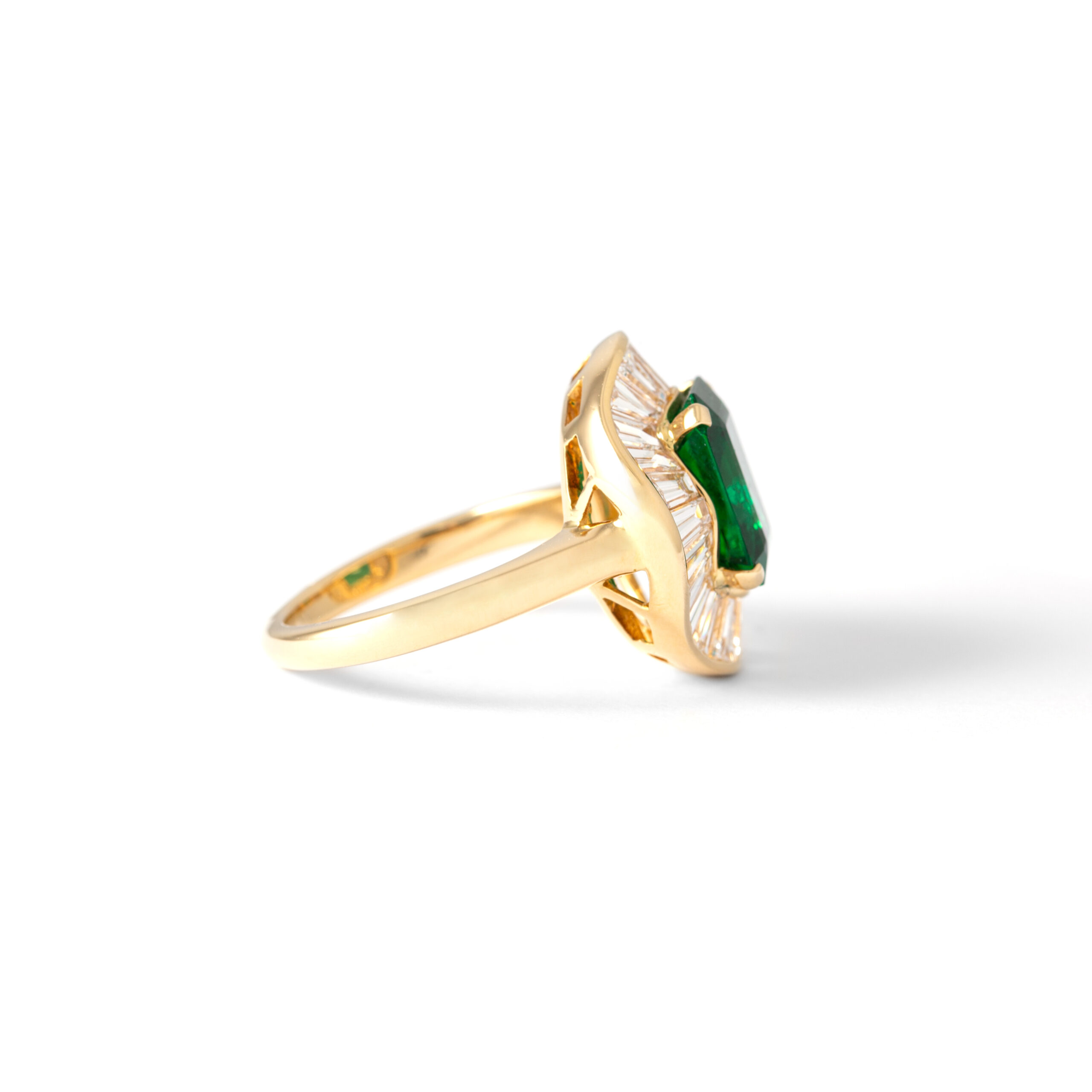 Ring in 18kt yellow gold set with one square cut emerald 3.22 cts and diamonds 2.18cts