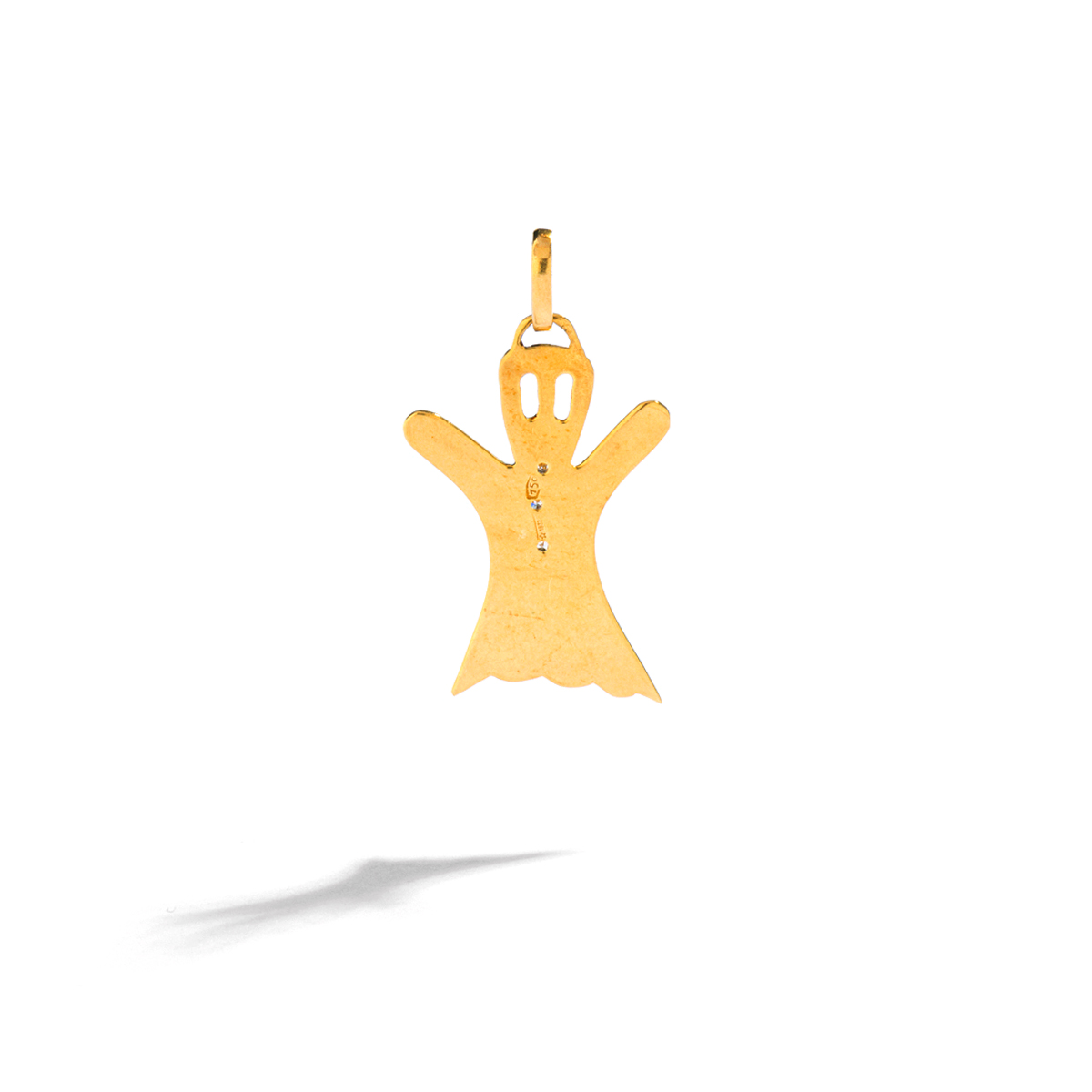 Ghost Yellow Gold 18k Pendant Charm. Three small diamonds.