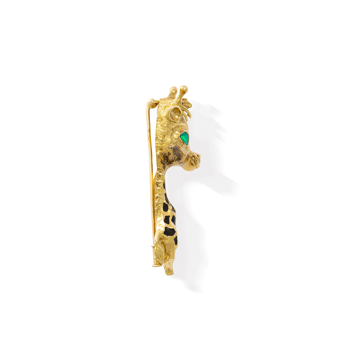 Wearing this French Gold Giraffe Brooch not only adds a touch of glamour to your attire but also showcases your commitment to preserving our planet. It is a unique and meaningful piece that will surely spark conversations and admiration wherever you go.