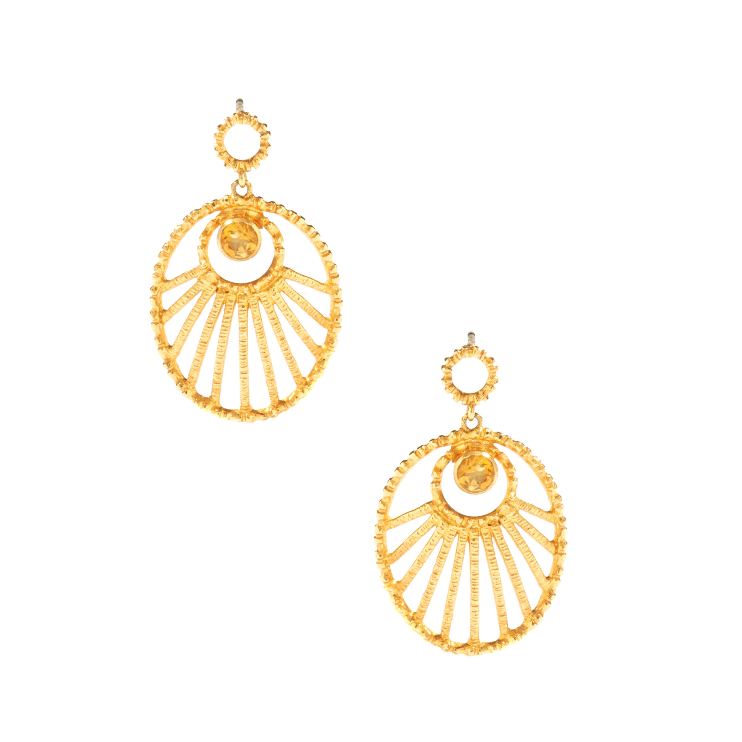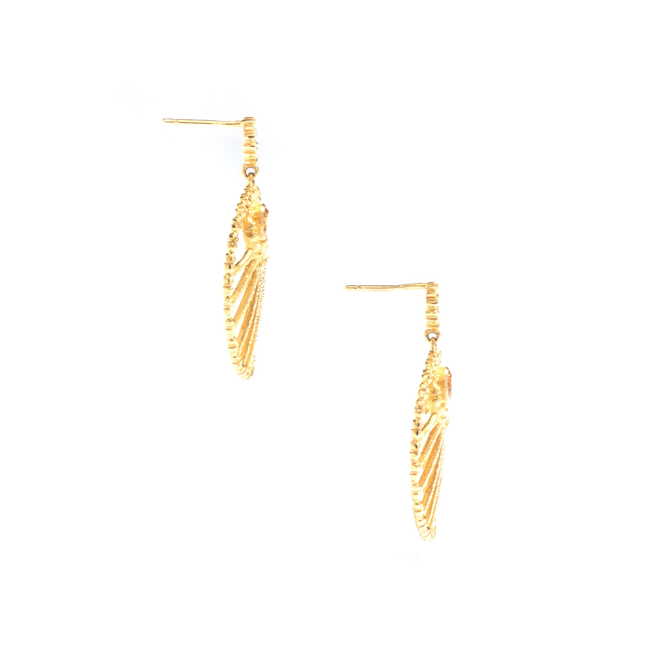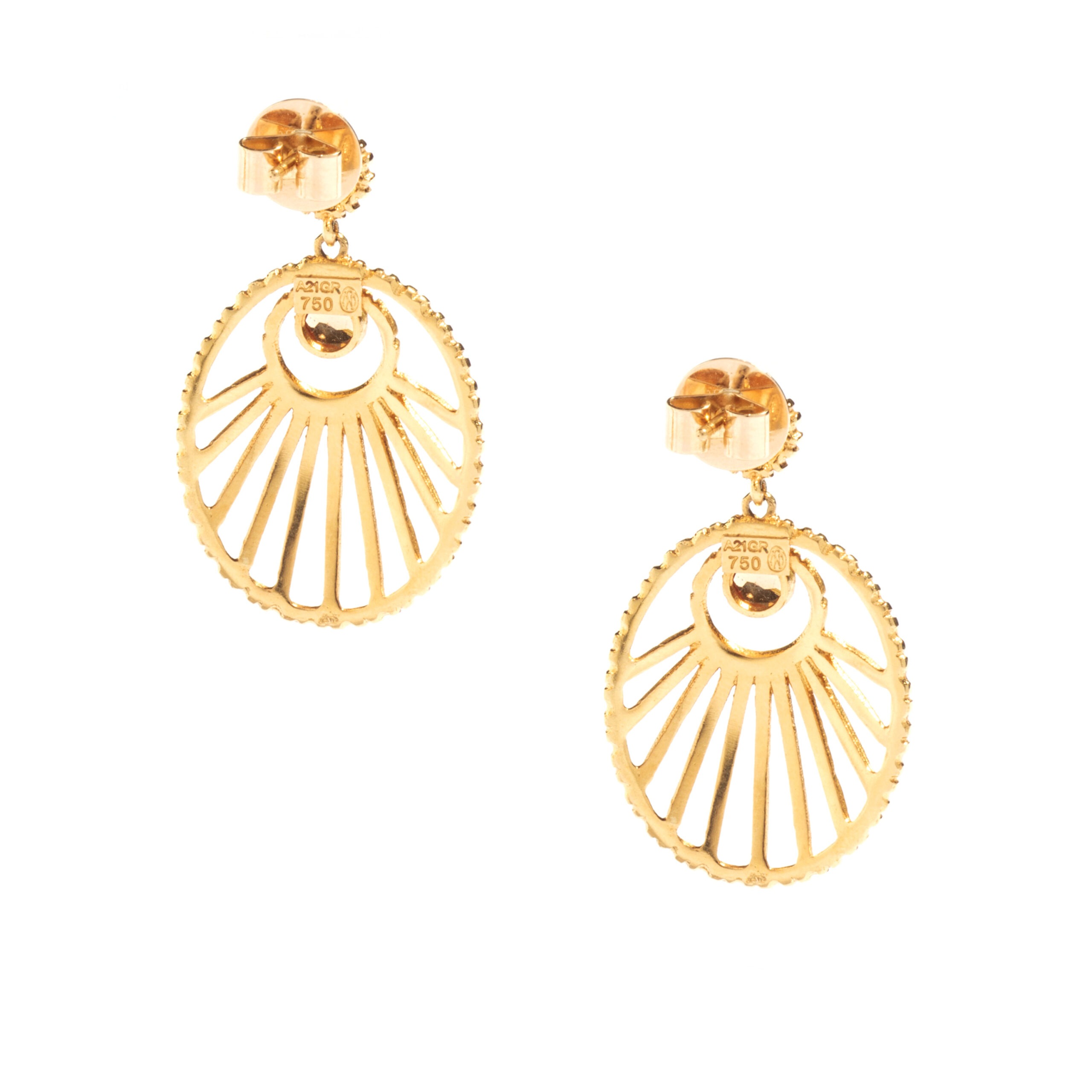 Lalaounis Yellow Gold 18K Earrings. Elevate your ensemble with the timeless elegance of these Lalaounis Yellow Gold 18K Earrings, each adorned with a captivating round-cut yellow stone at its center.