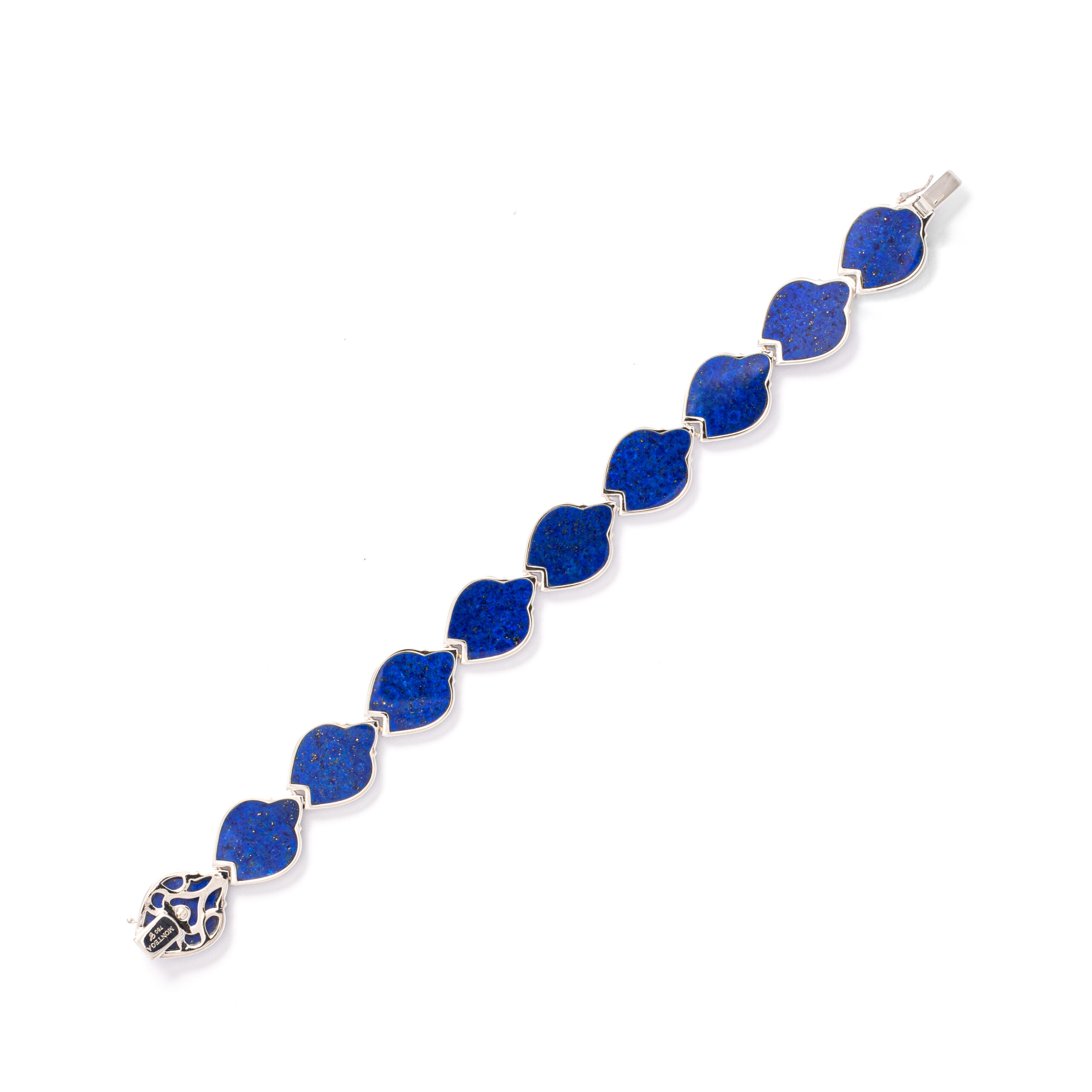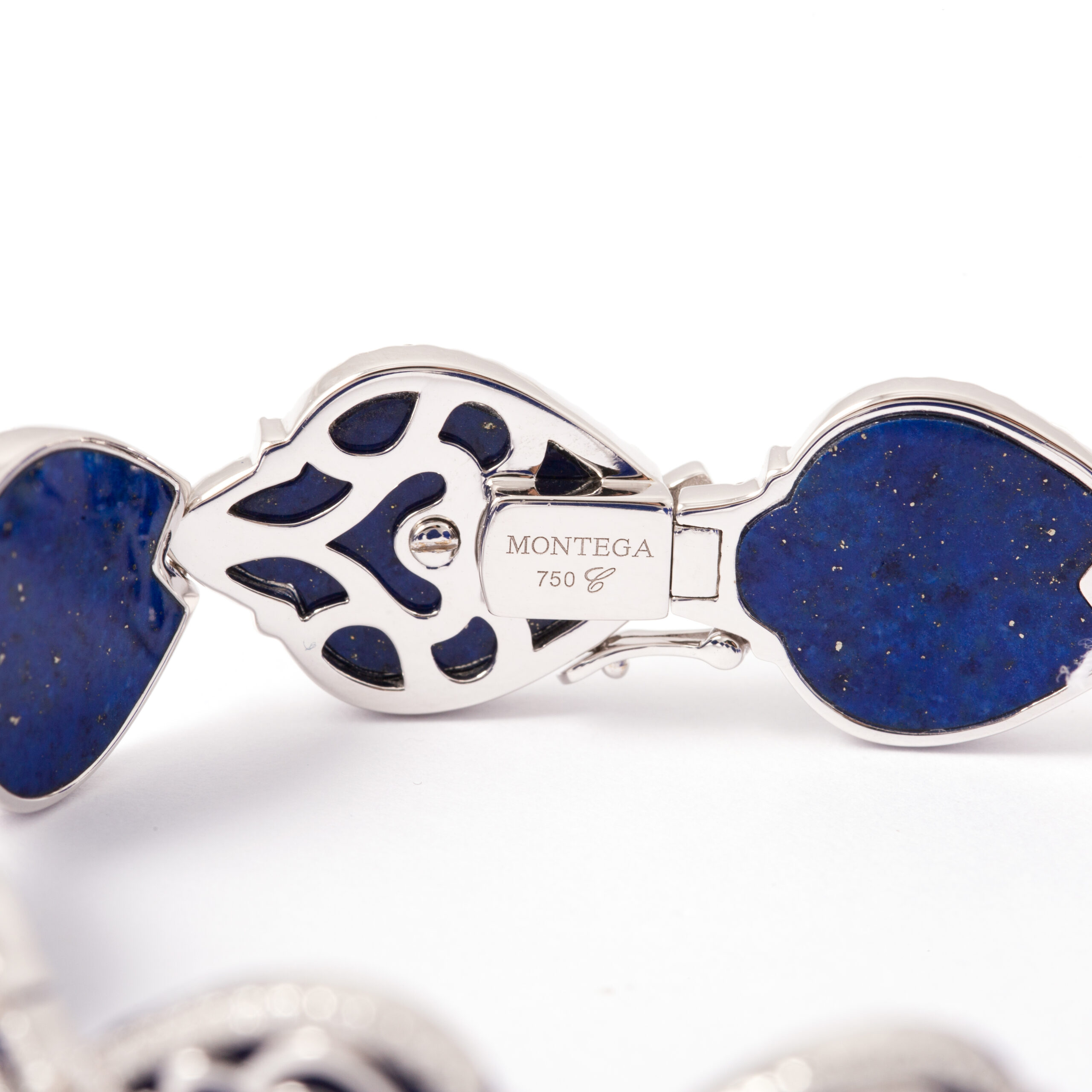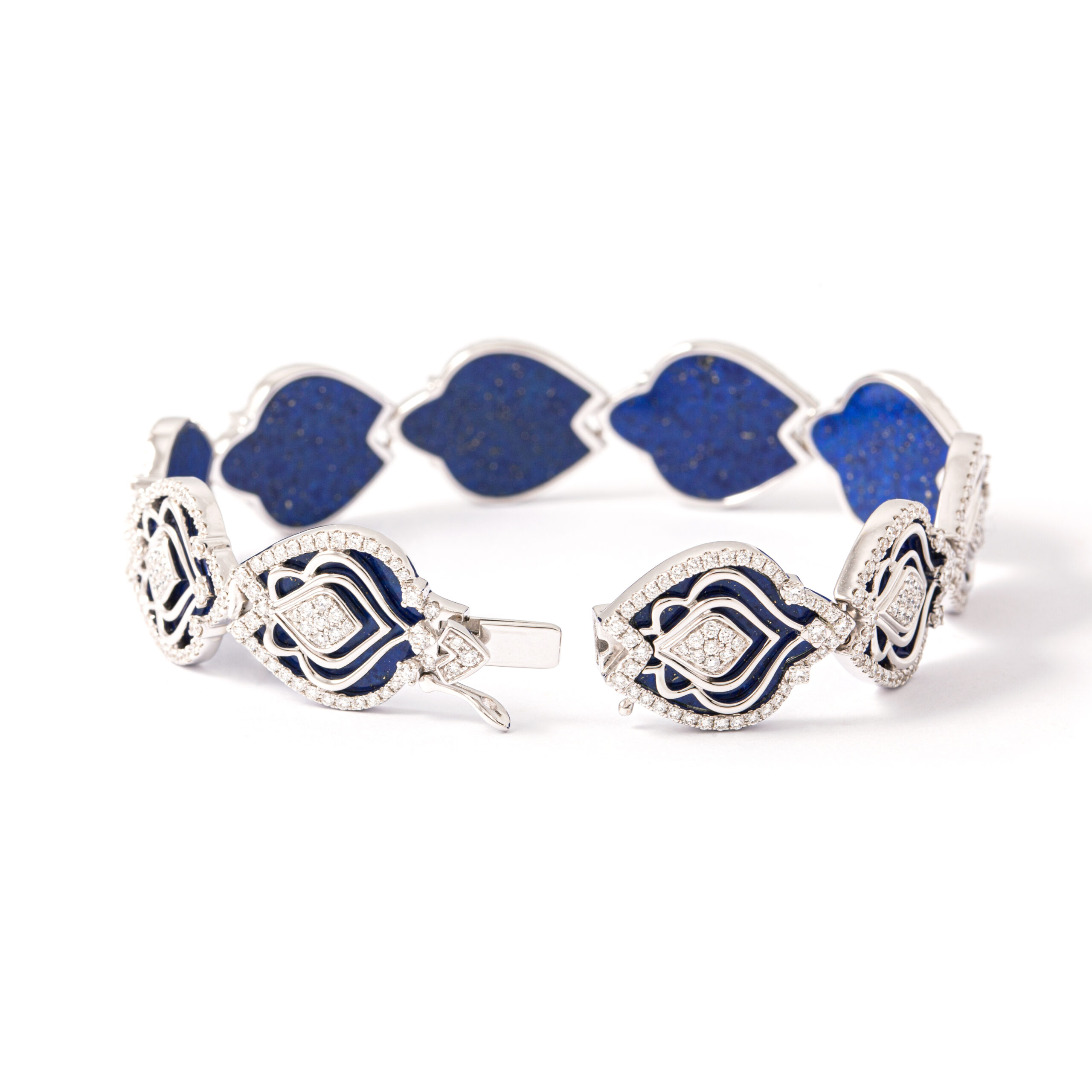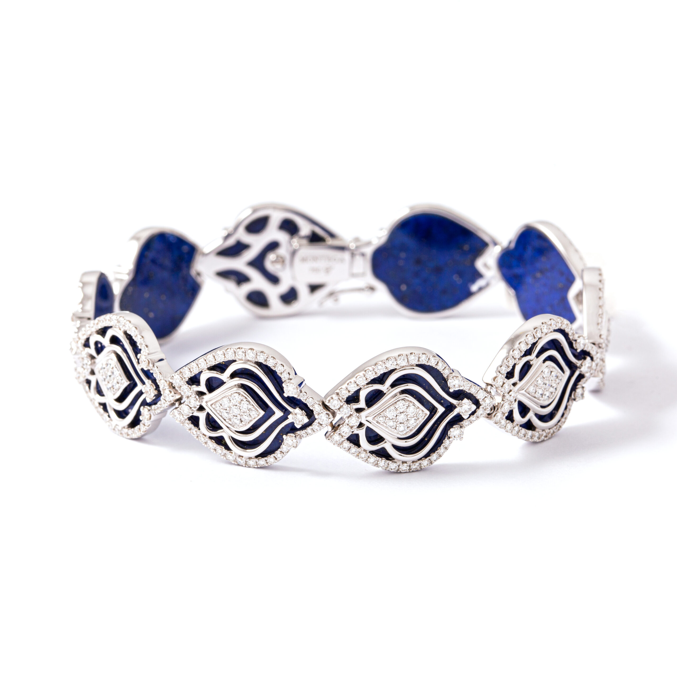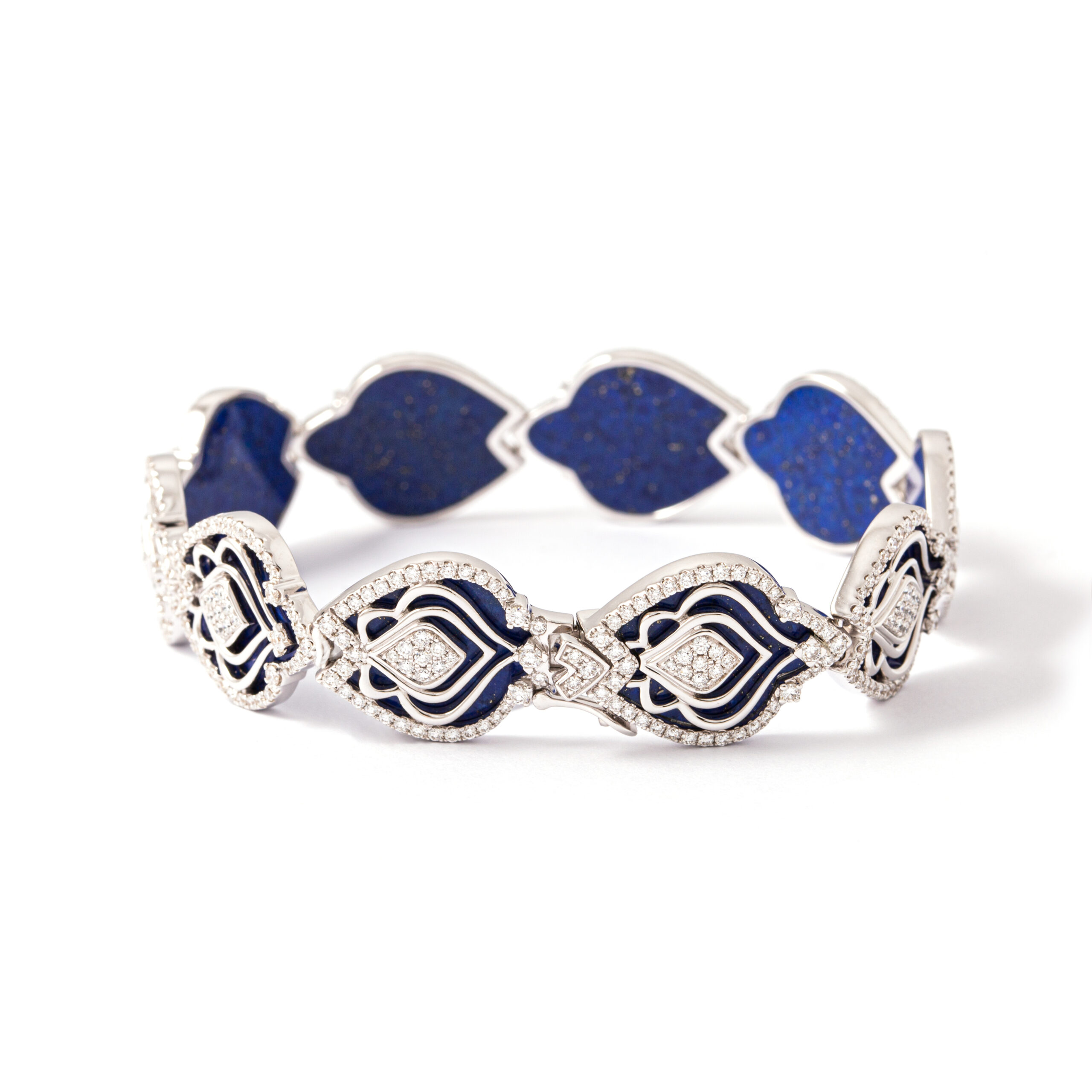 Bracelet in 18kt white gold set with 128 diamonds 1.14 cts and 2 lapis lazuli 17.78 ct