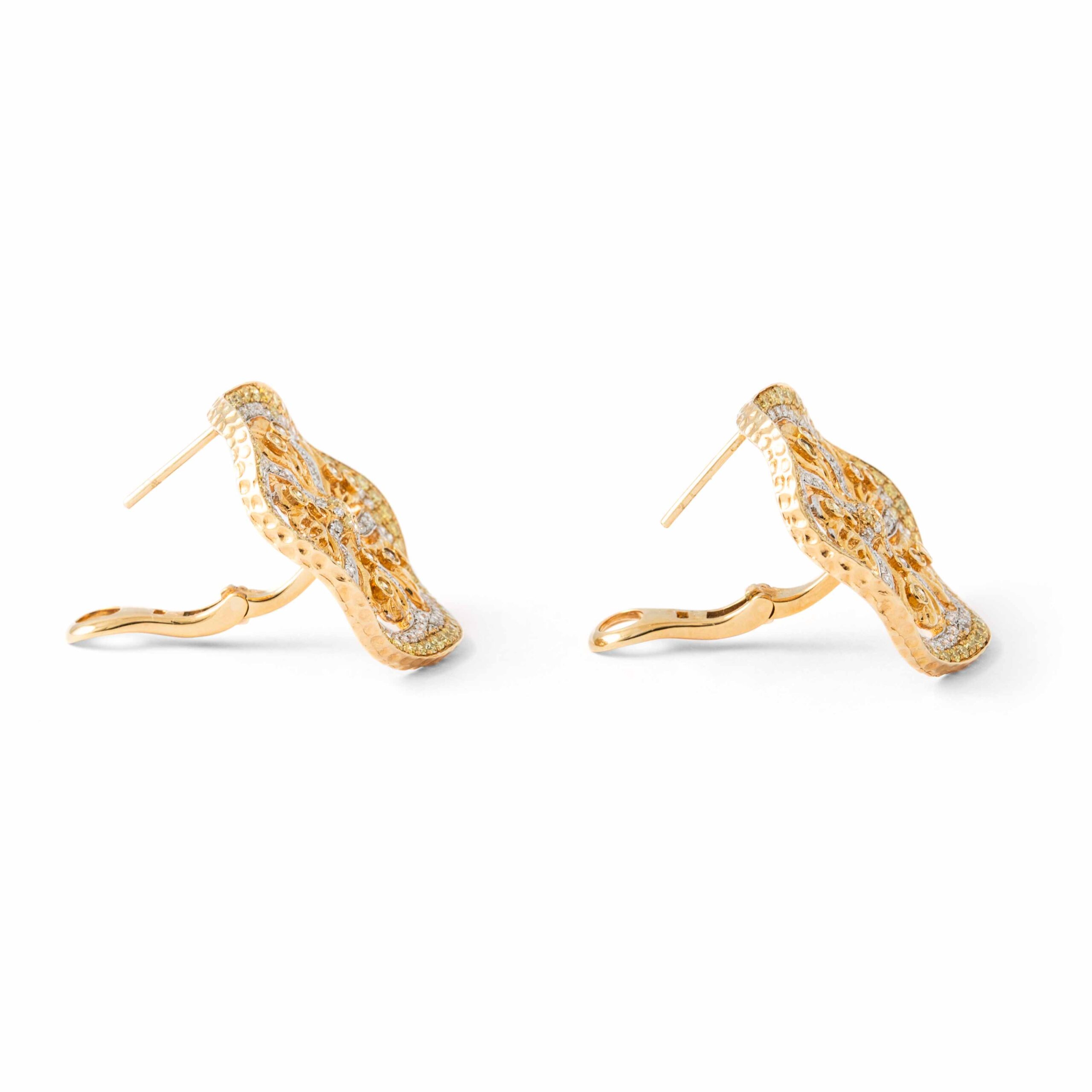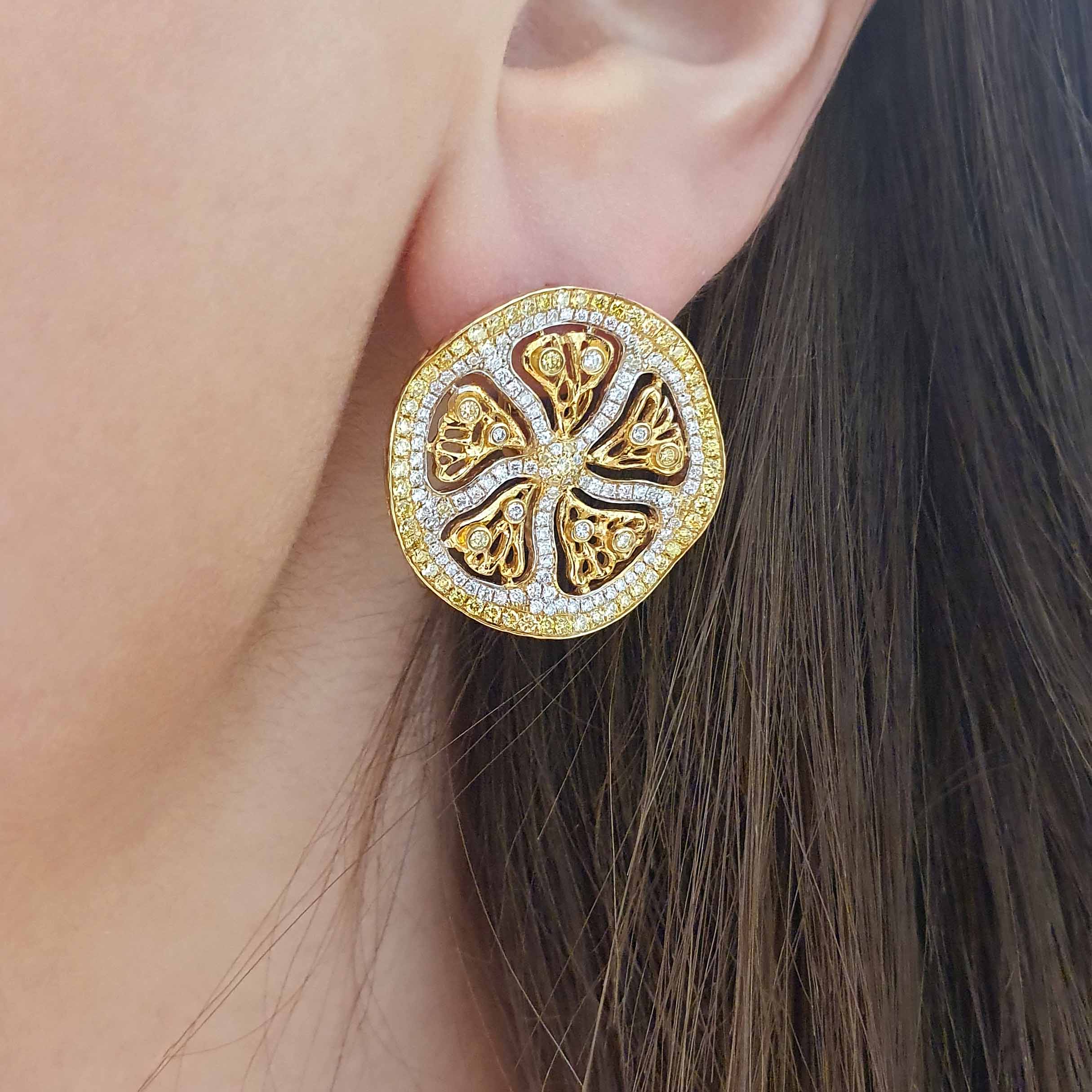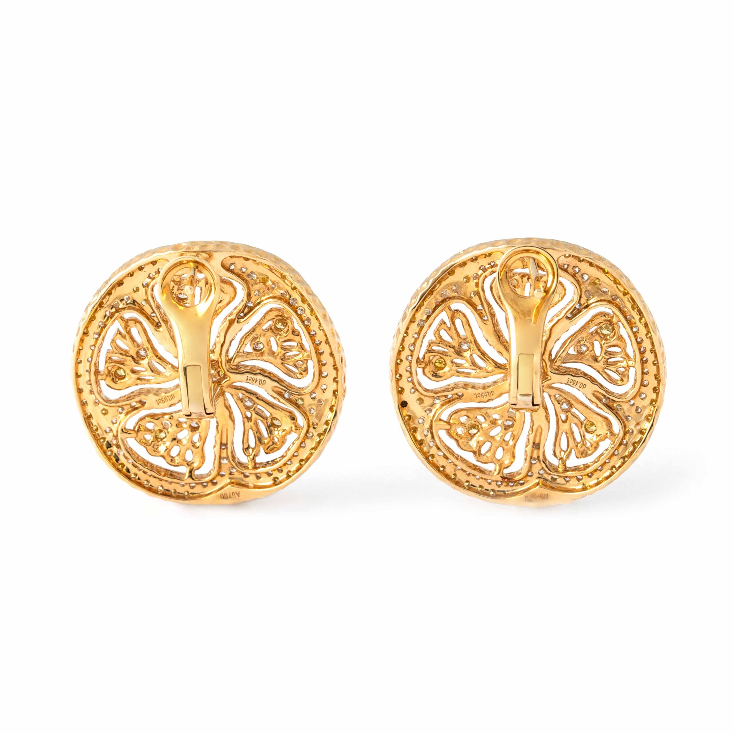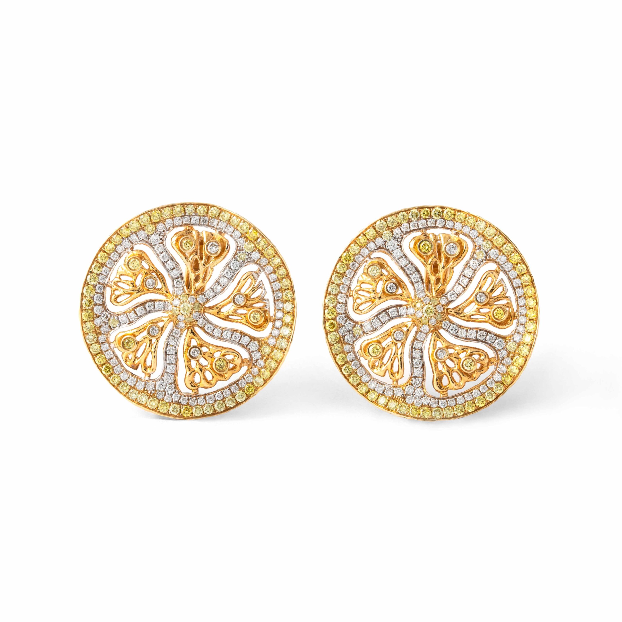 Illuminate your look with these dazzling Lemon earrings, crafted in 18K yellow gold and adorned with natural yellow and white diamonds. The earrings feature 136 round yellow diamonds totaling 1.26 carats, complemented by 212 round white diamonds of VS clarity and F color totaling 0.92 carats. Radiant and luxurious, these earrings are a captivating blend of elegance and sophistication, perfect for adding a touch of sparkle to any occasion.