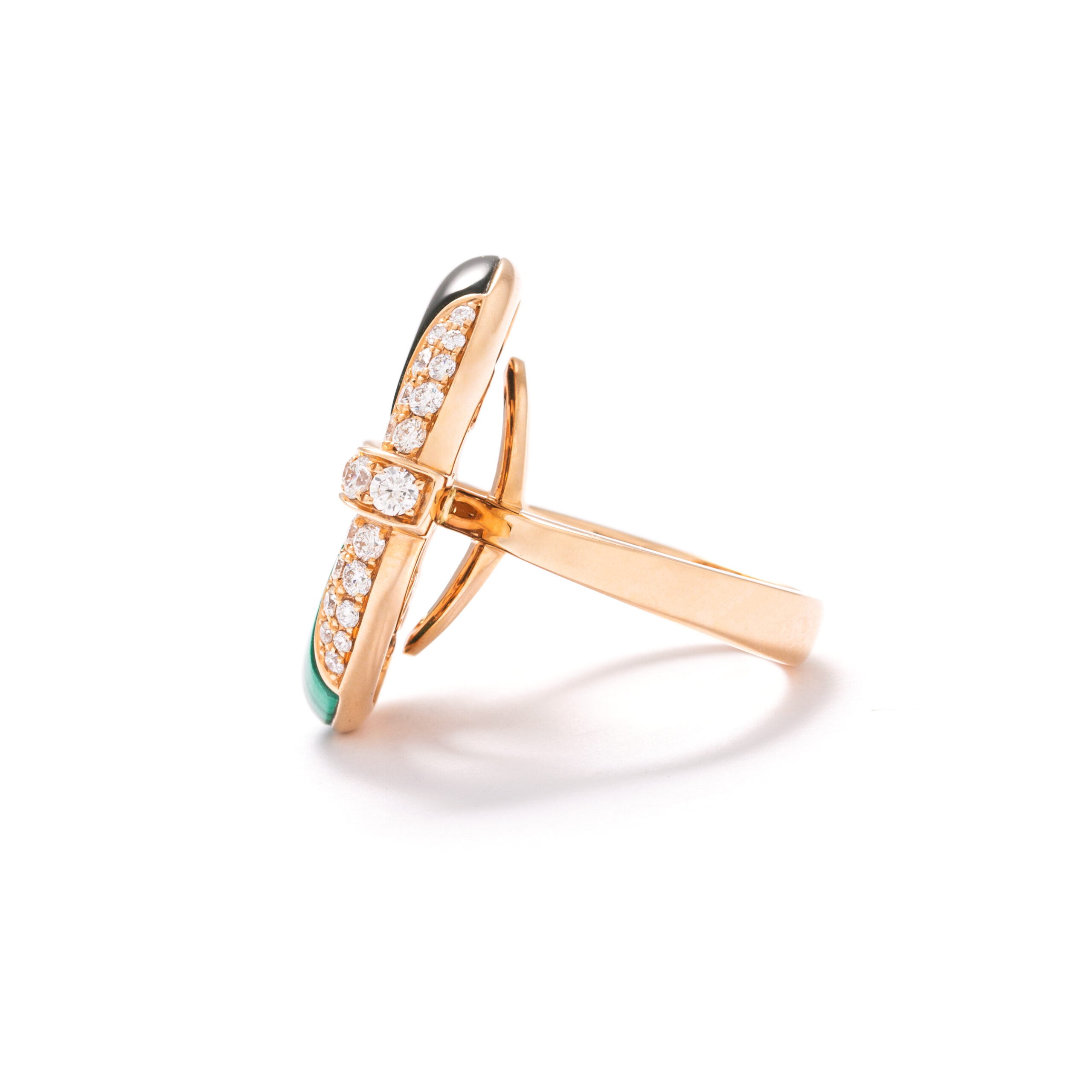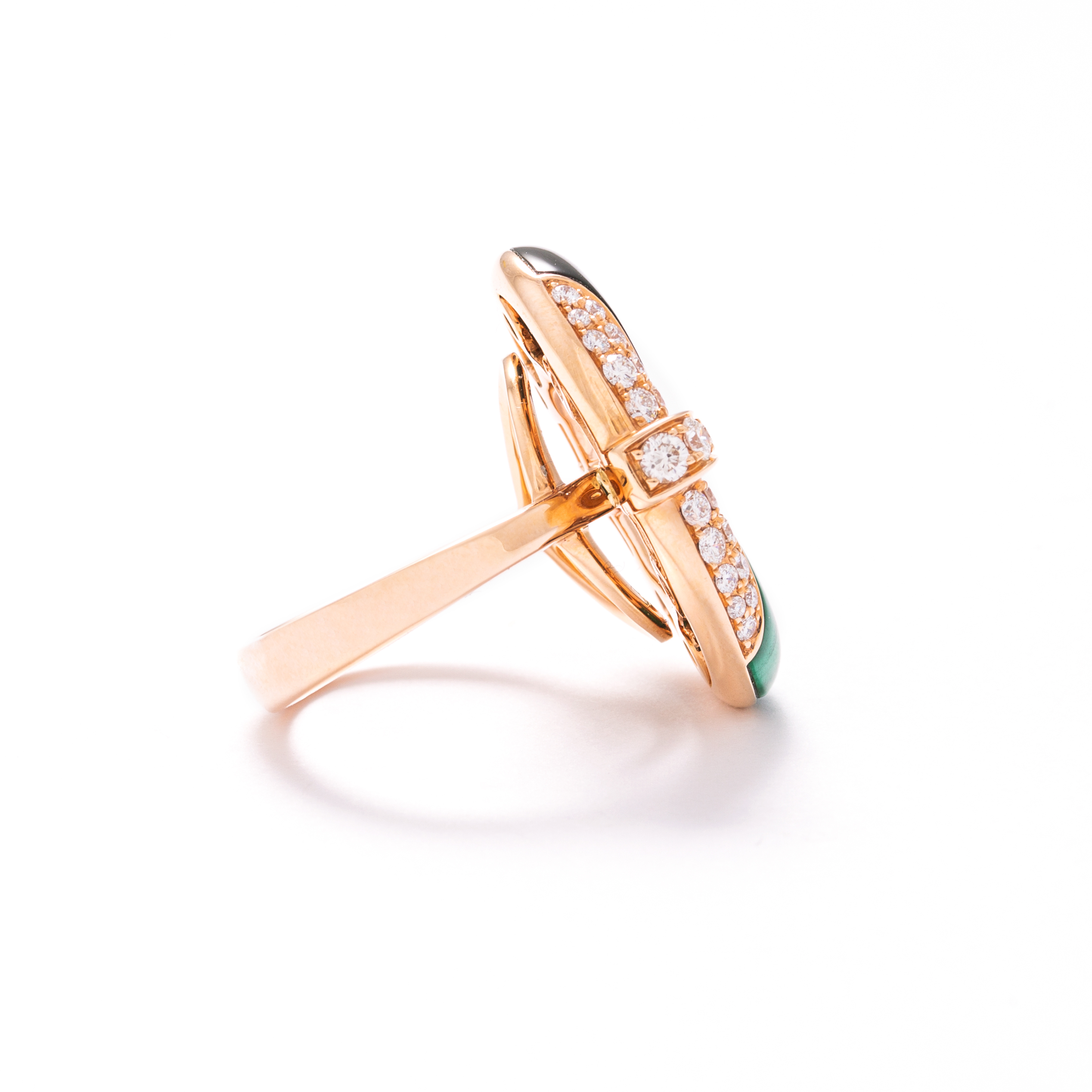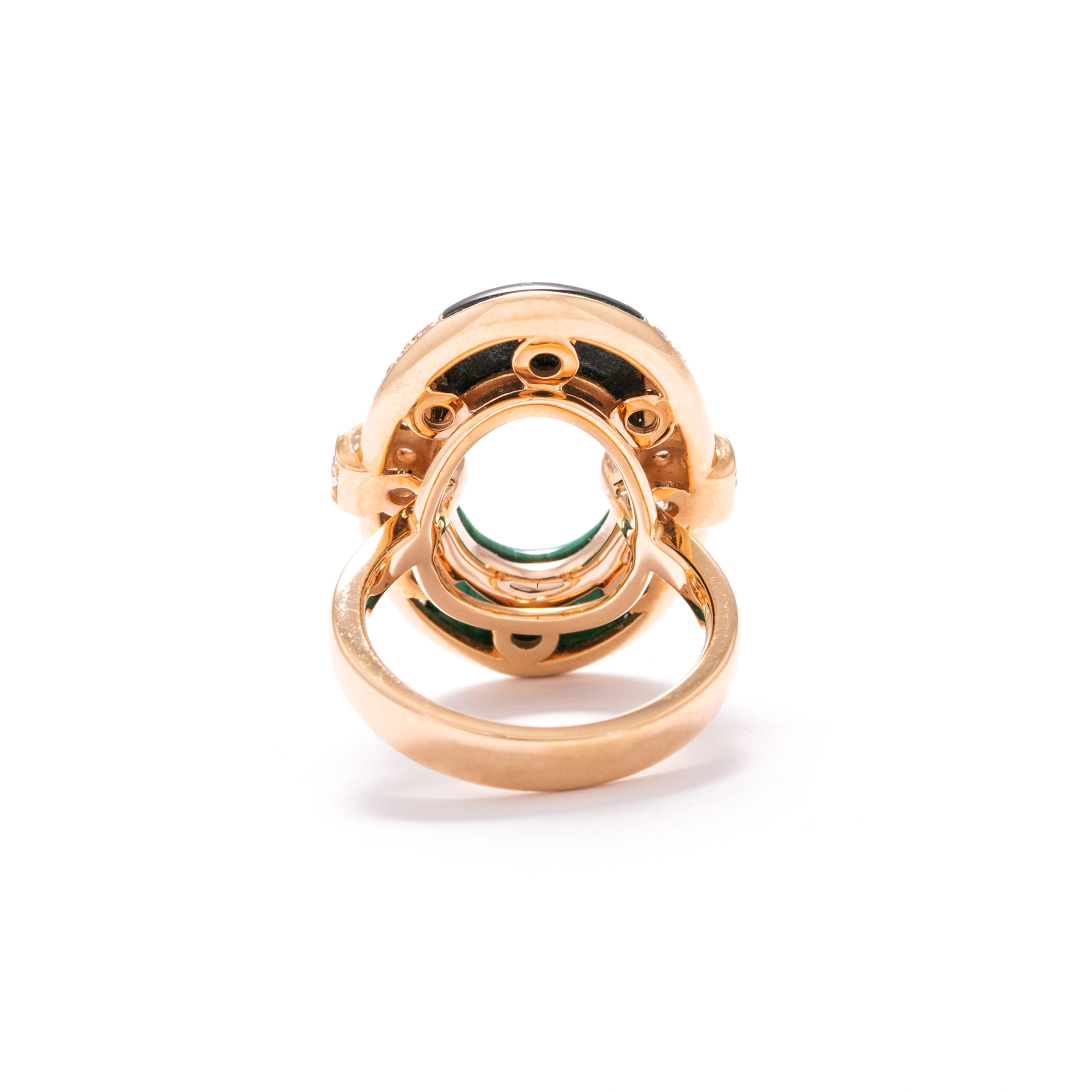 Ring in 18kt pink gold set with 46 diamonds 0.92 cts, one onyx 1.90 cts and one malachite 2.80 cts
