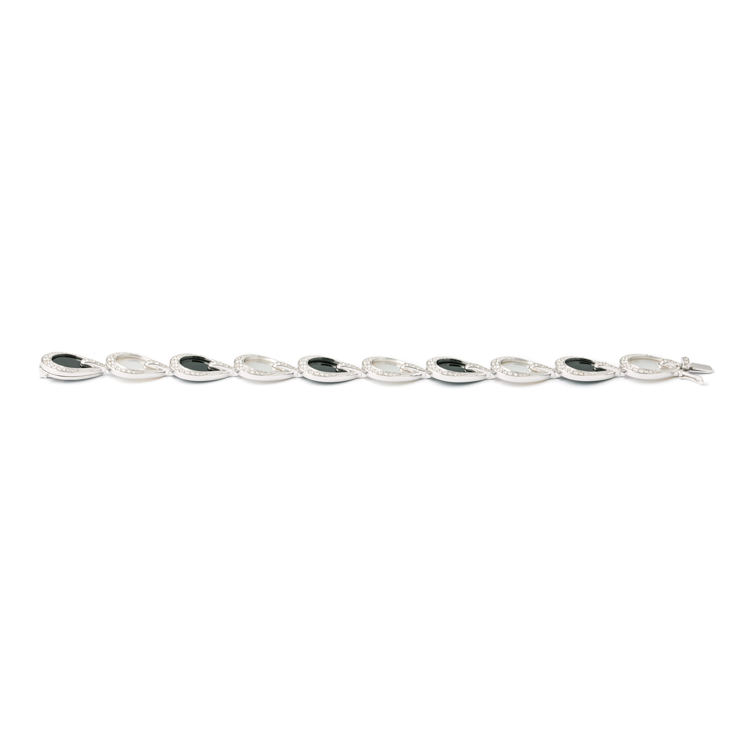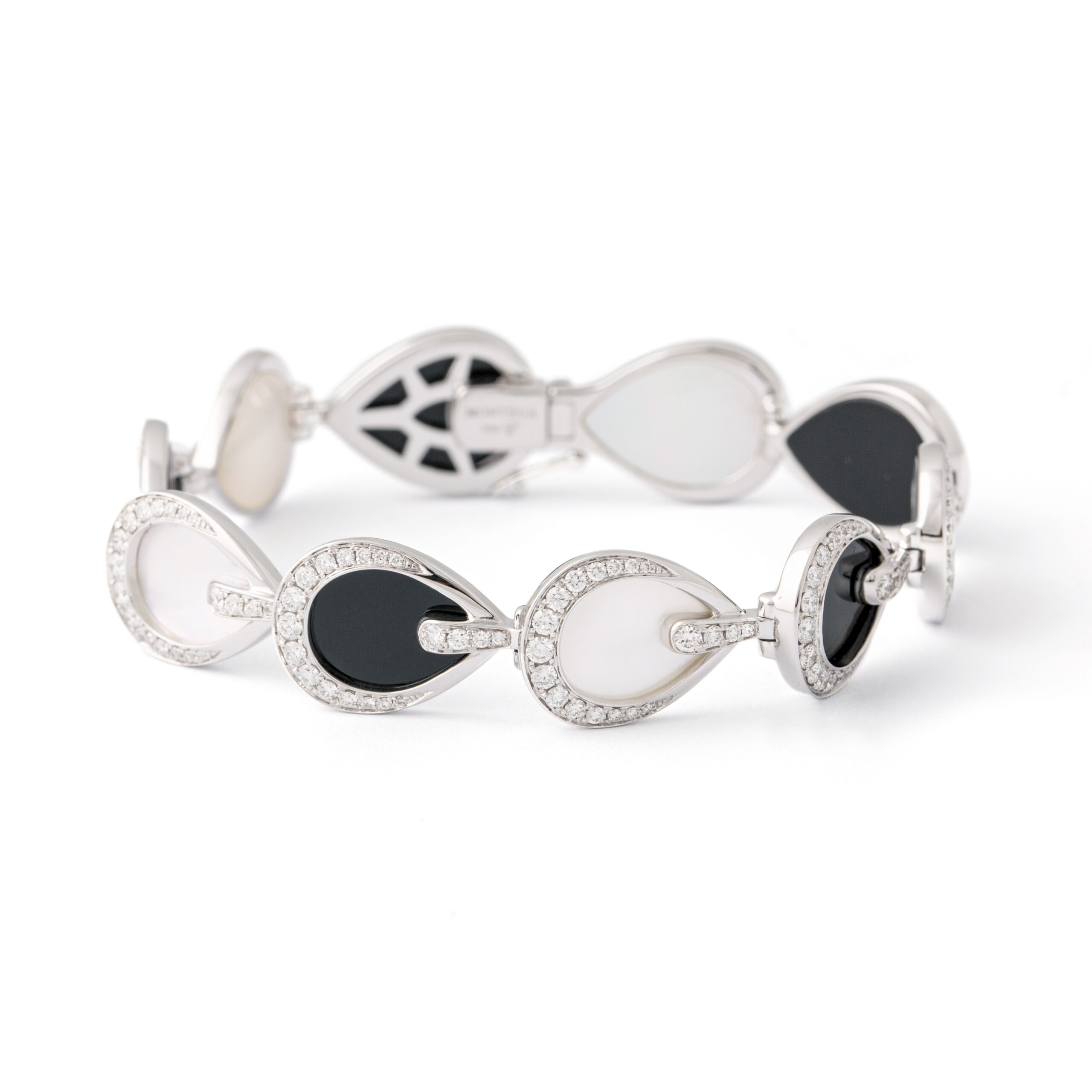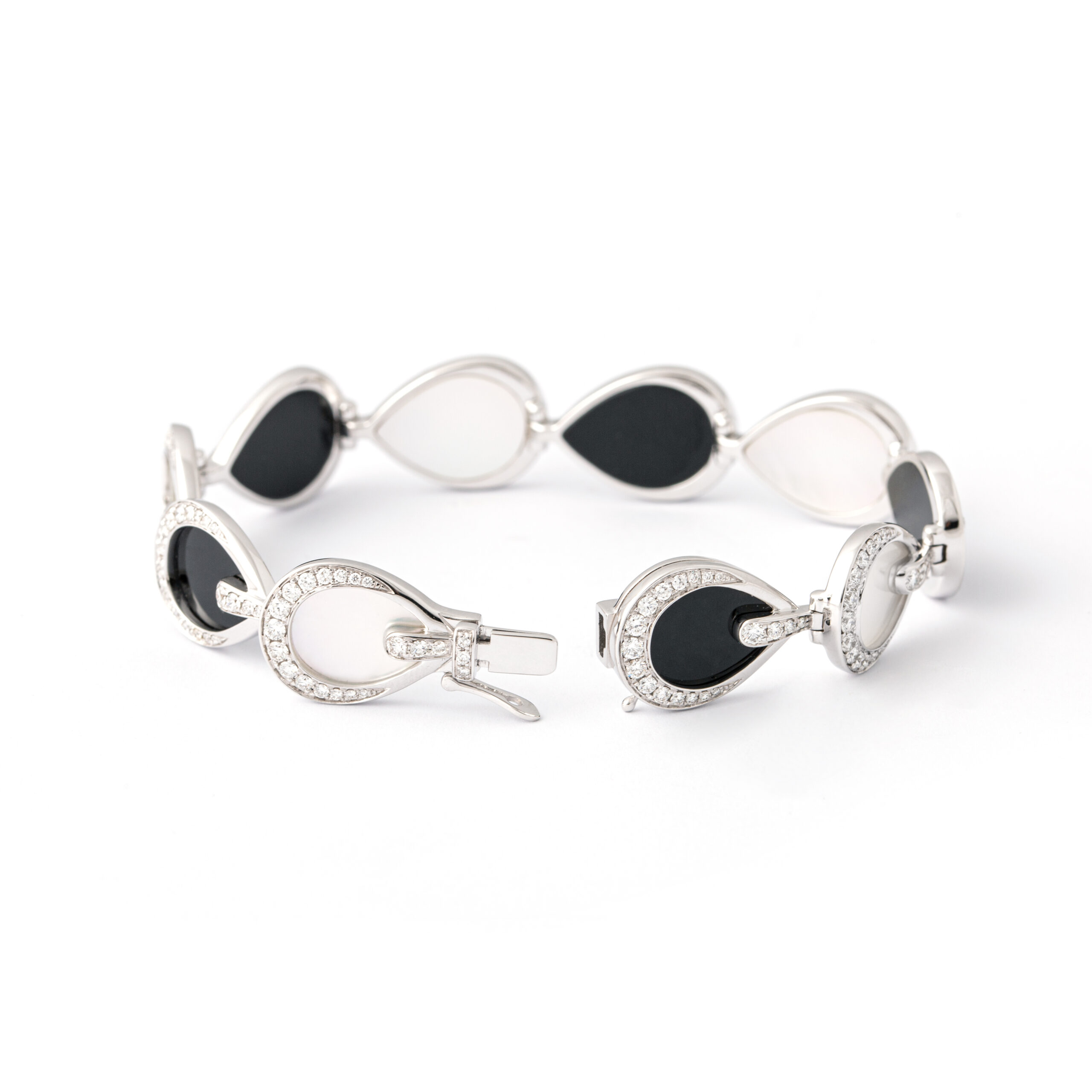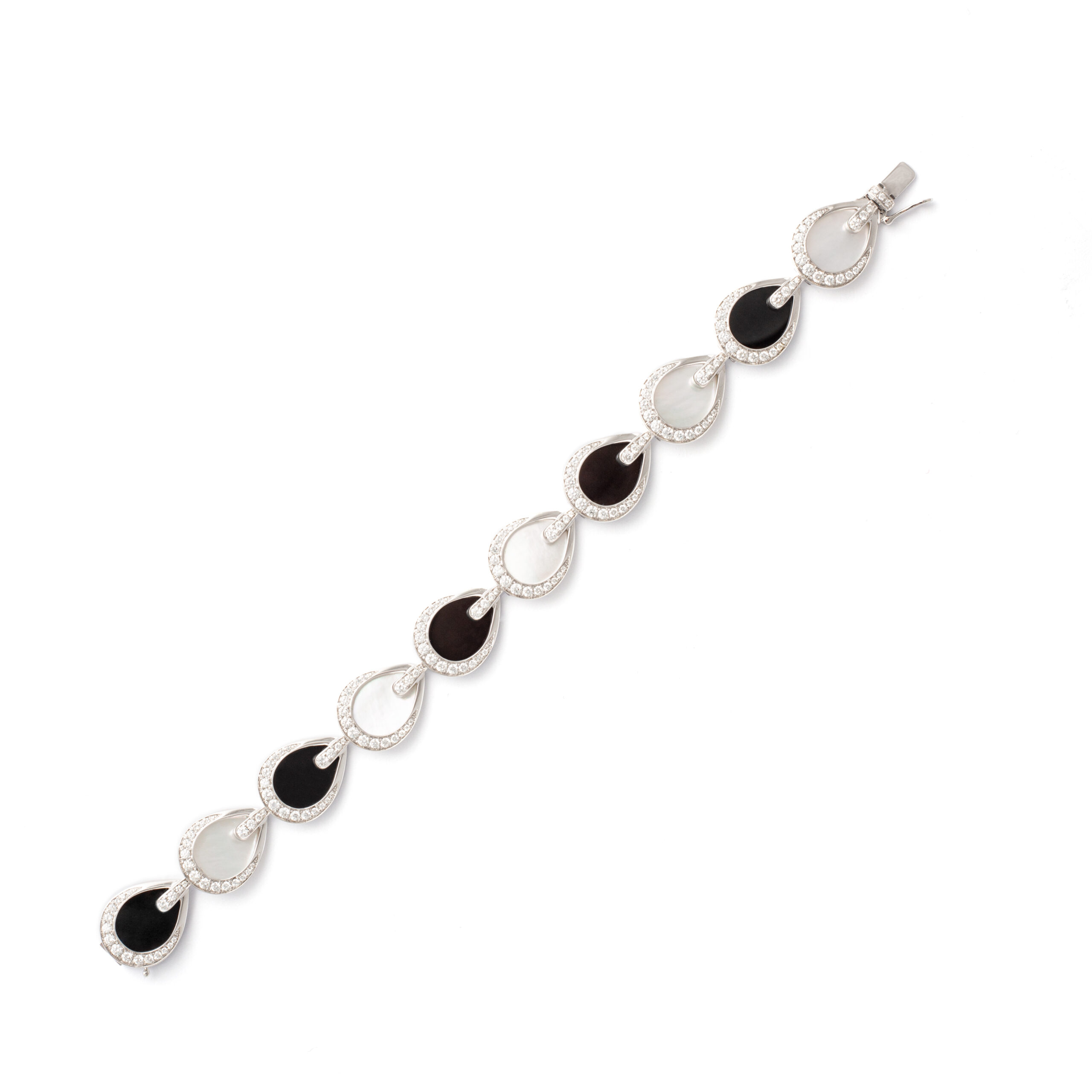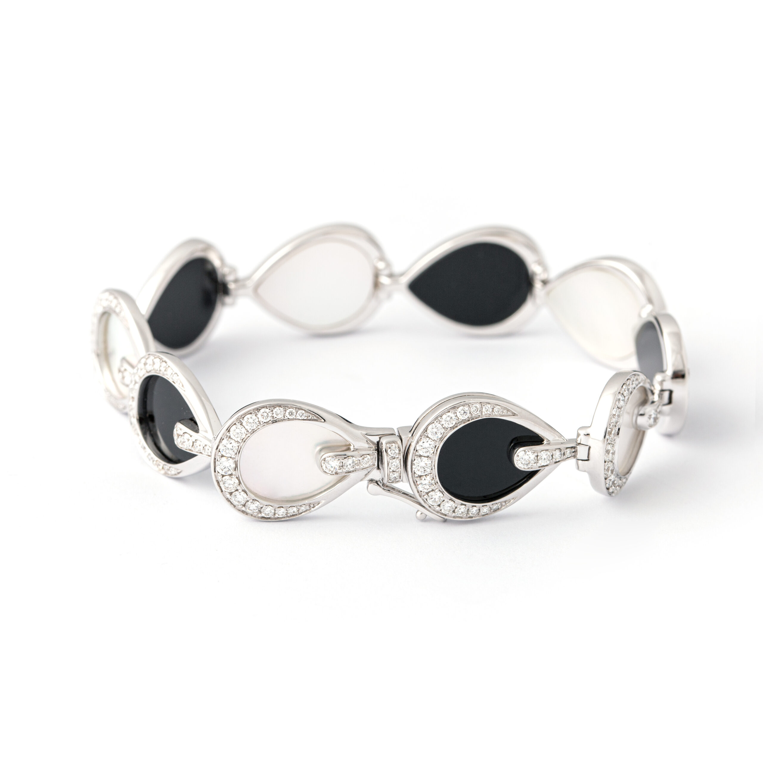 Bracelet in 18kt white gold set with 374 diamonds 4.99 cts, 5 mother-of-pearls 8.51 cts and 5 onyx 8.25 cts.