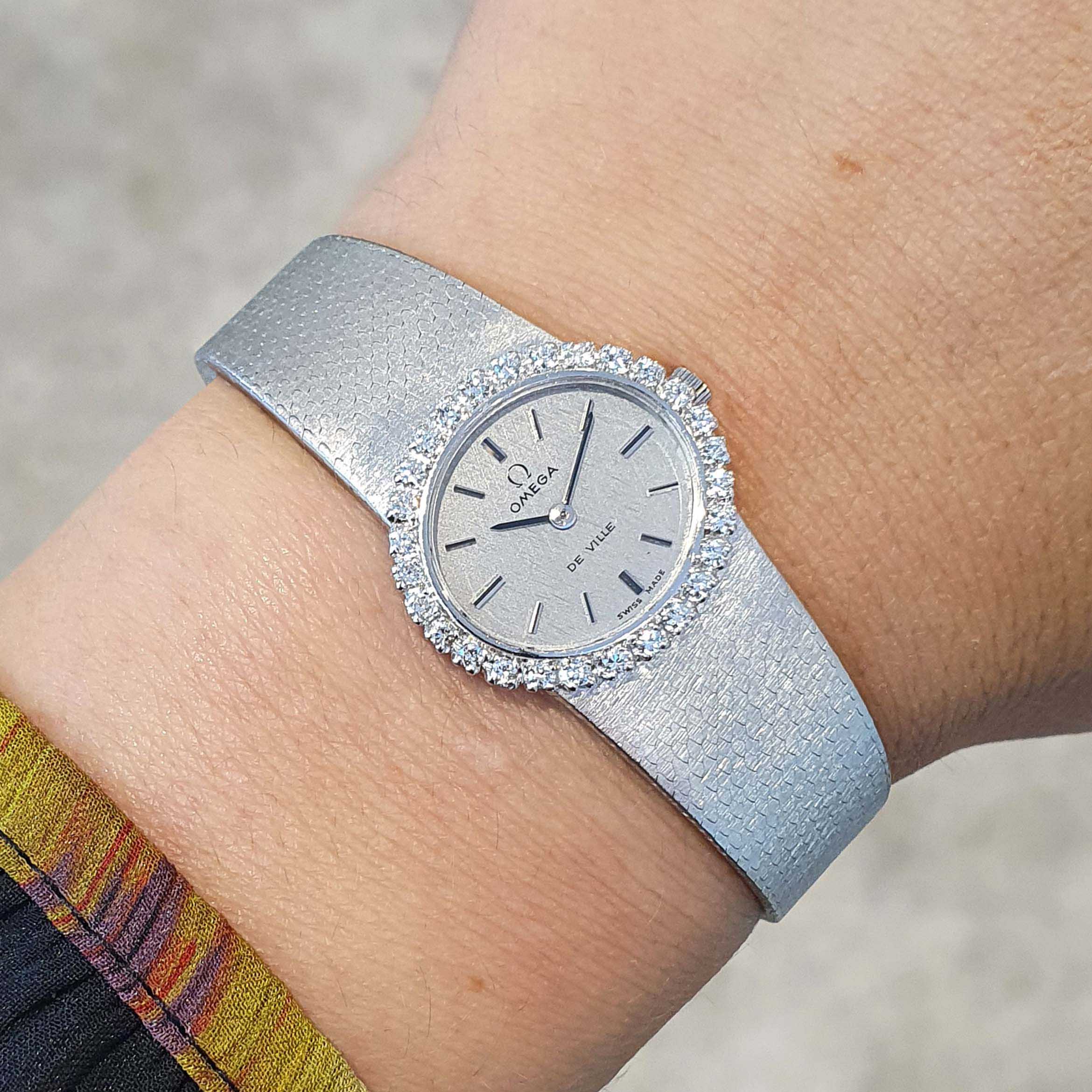 Omega Diamond White Gold Wristwatch 1970S
