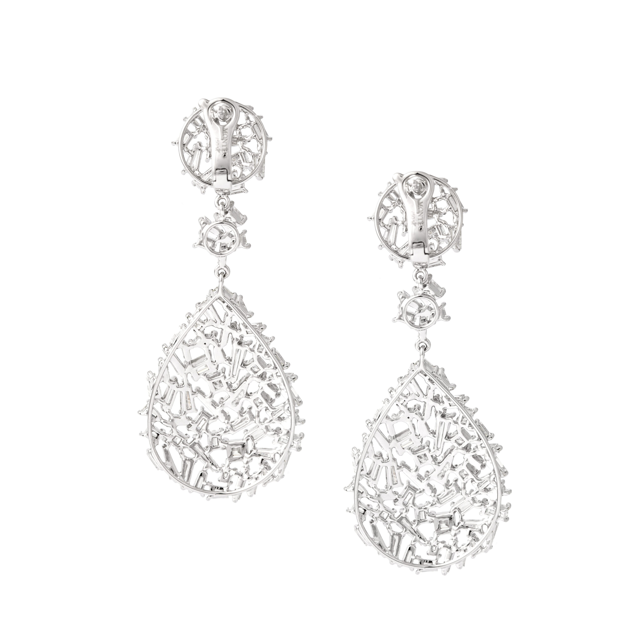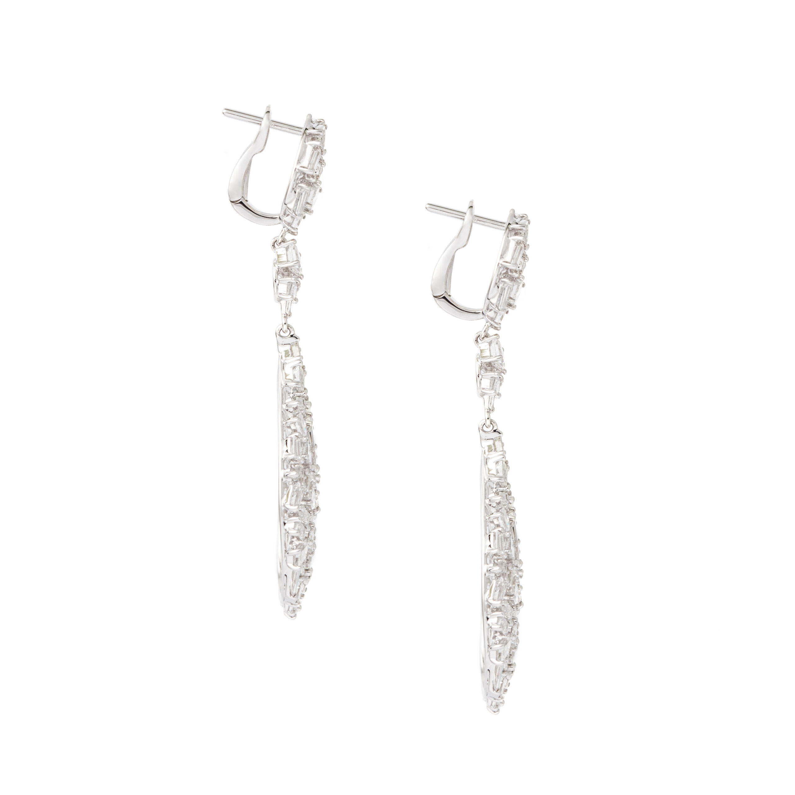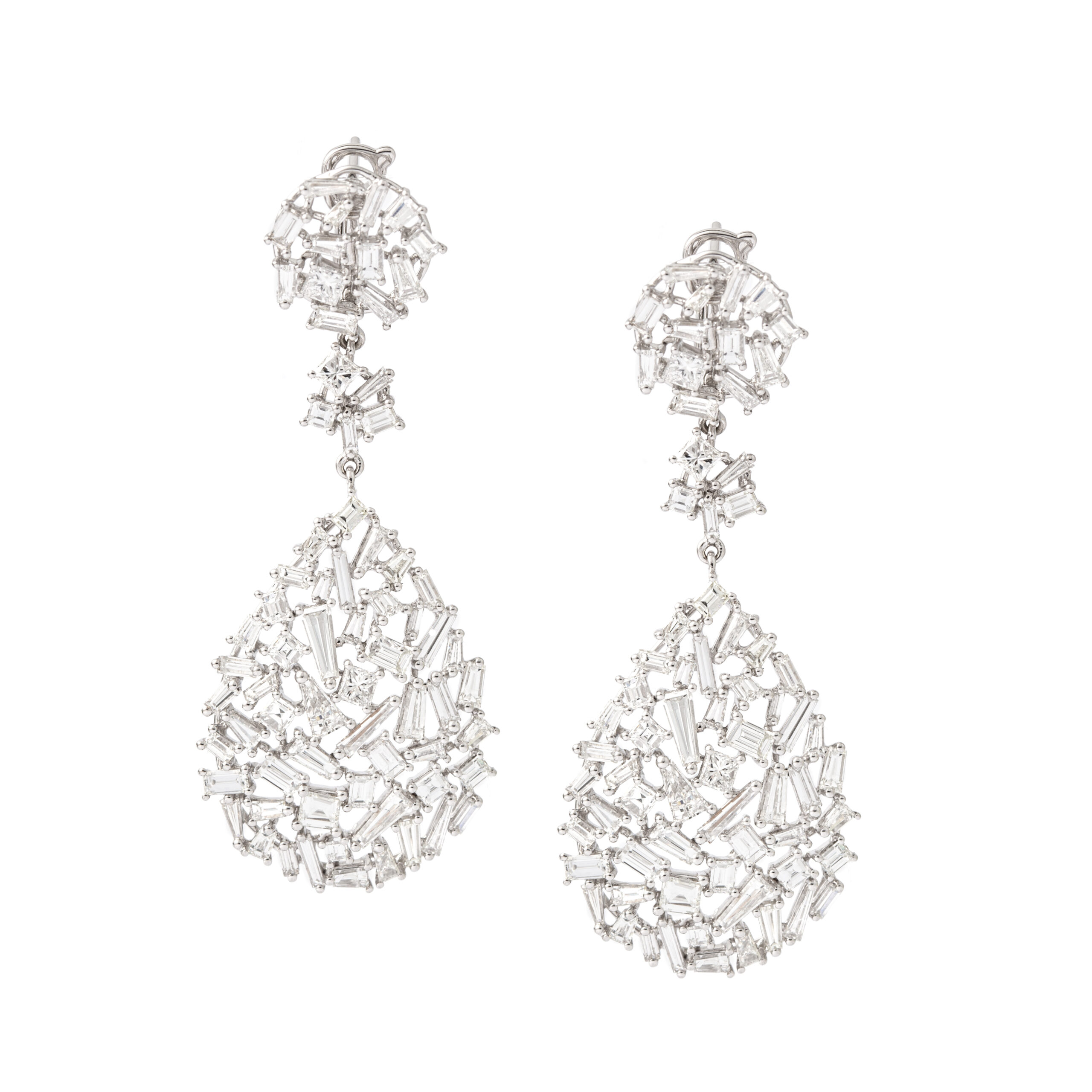 Earrings in 18kt white gold set with 139 baguette, princess, tapers cut diamonds 7.32 cts.