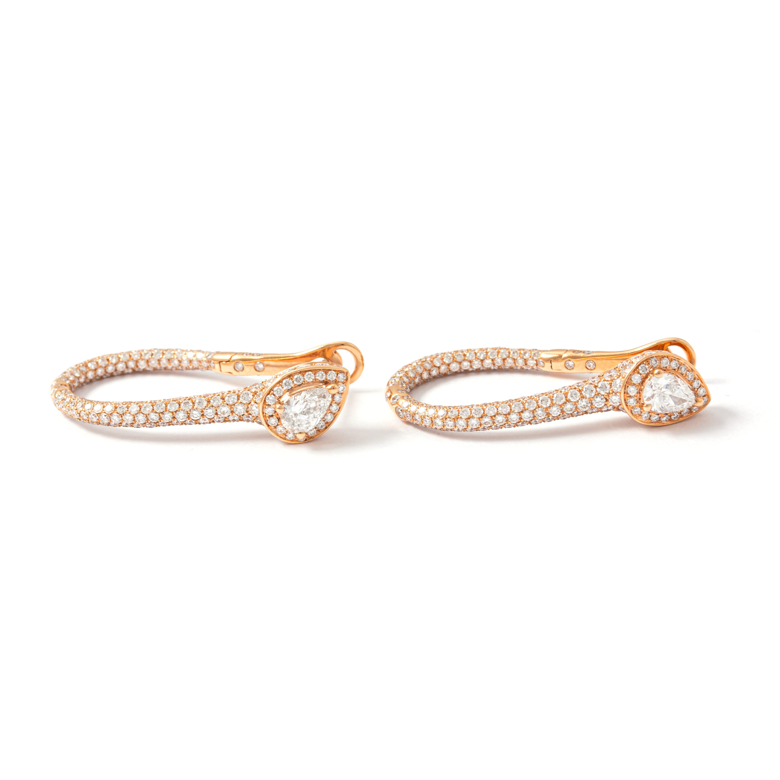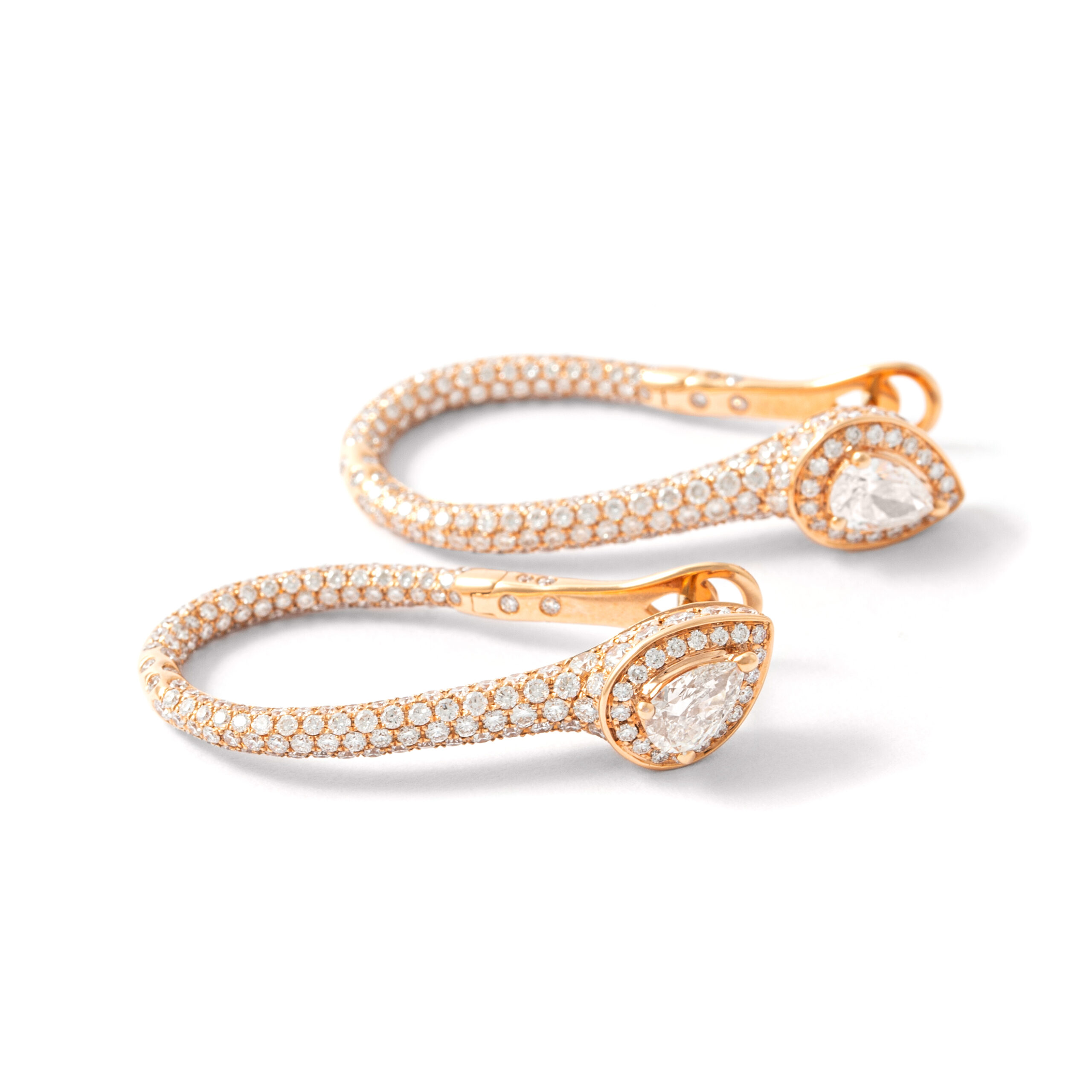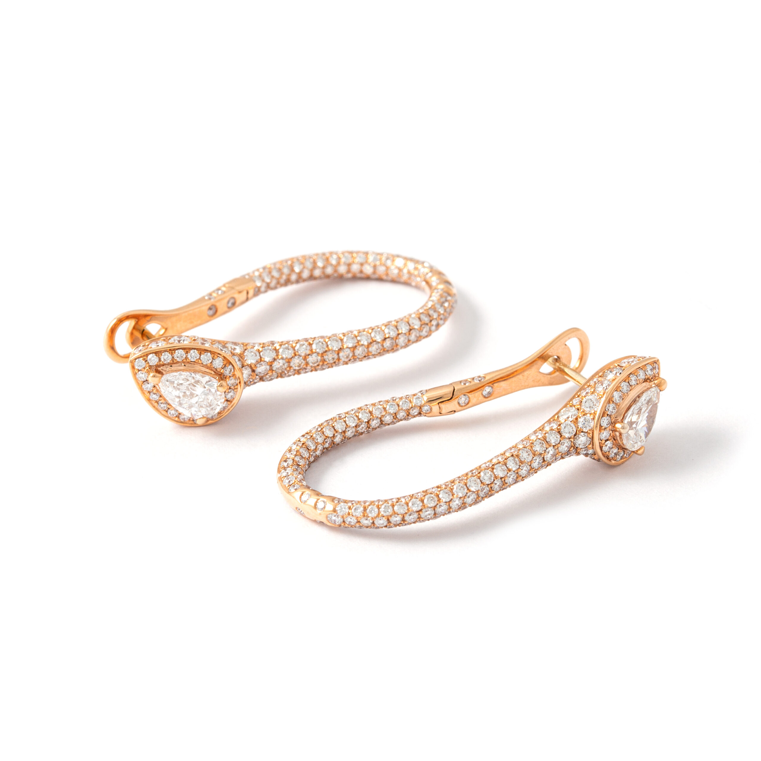 Earrings in 18kt pink gold set with 442 diamonds 3.23 cts and 2 pear-shaped cut diamonds 0.86 cts