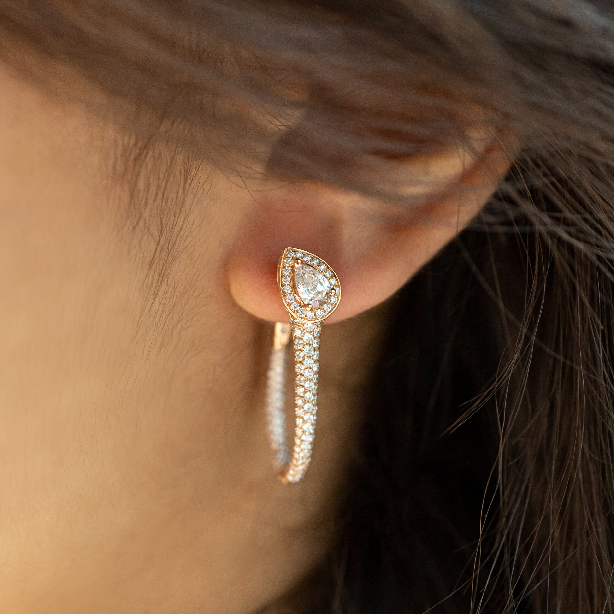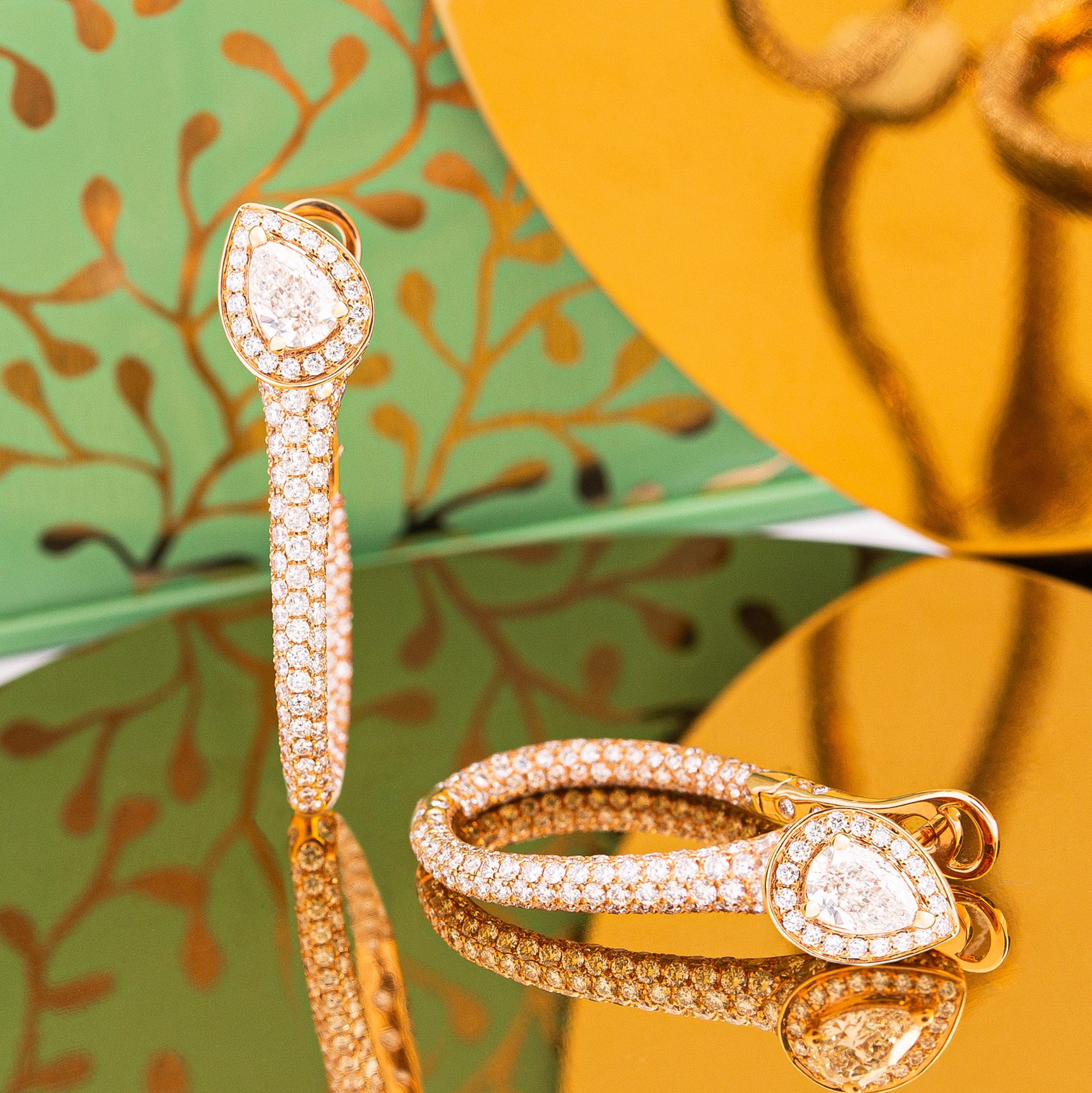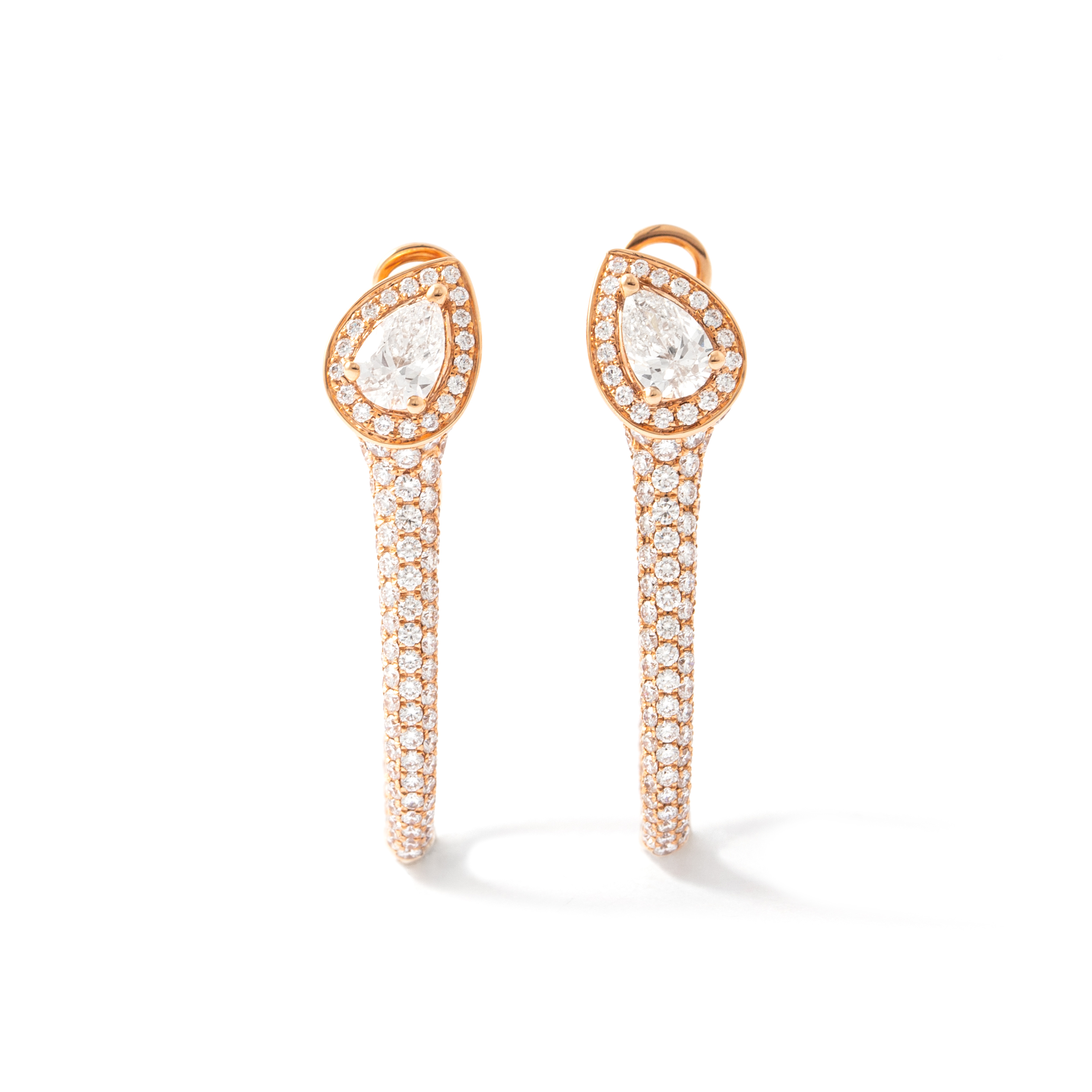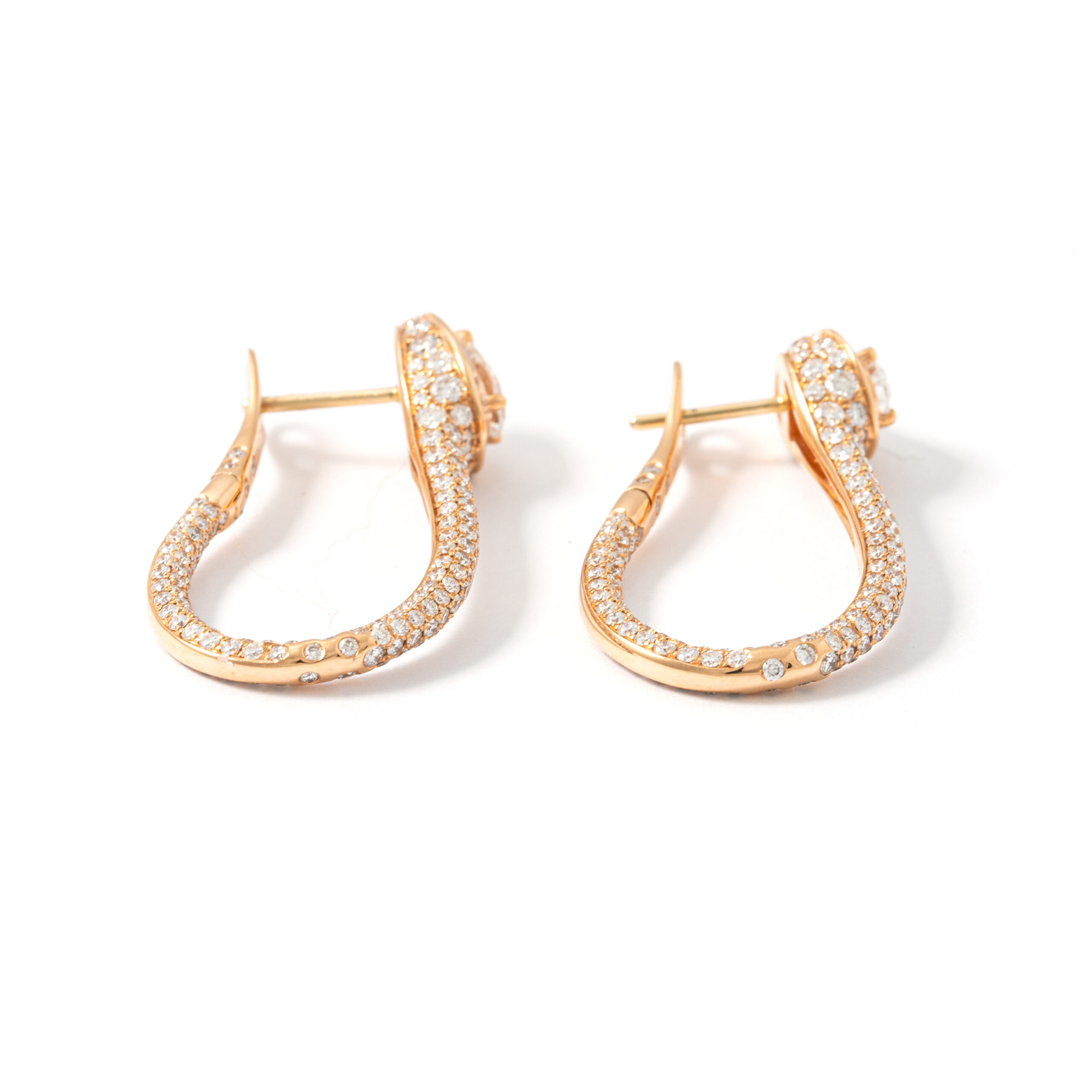 Earrings in 18kt pink gold set with 442 diamonds 3.23 cts and 2 pear-shaped cut diamonds 0.86 cts