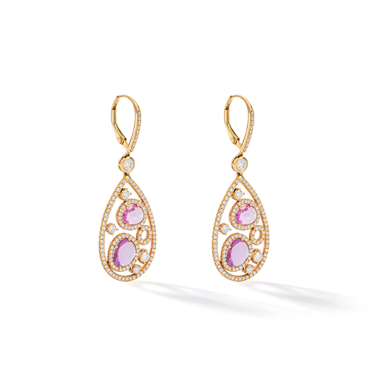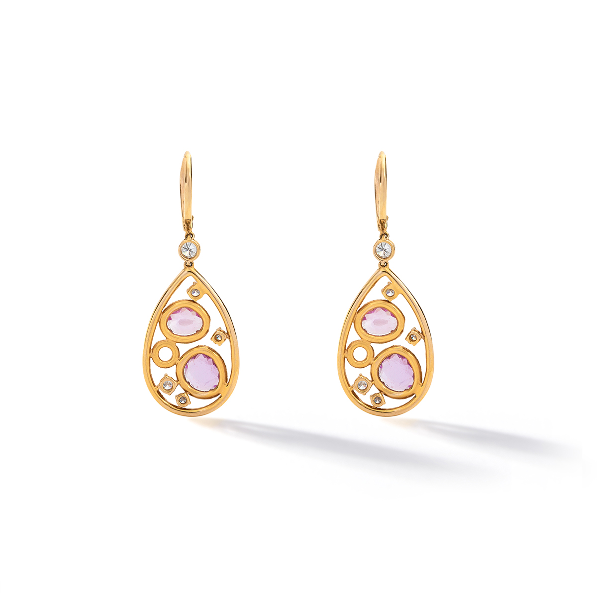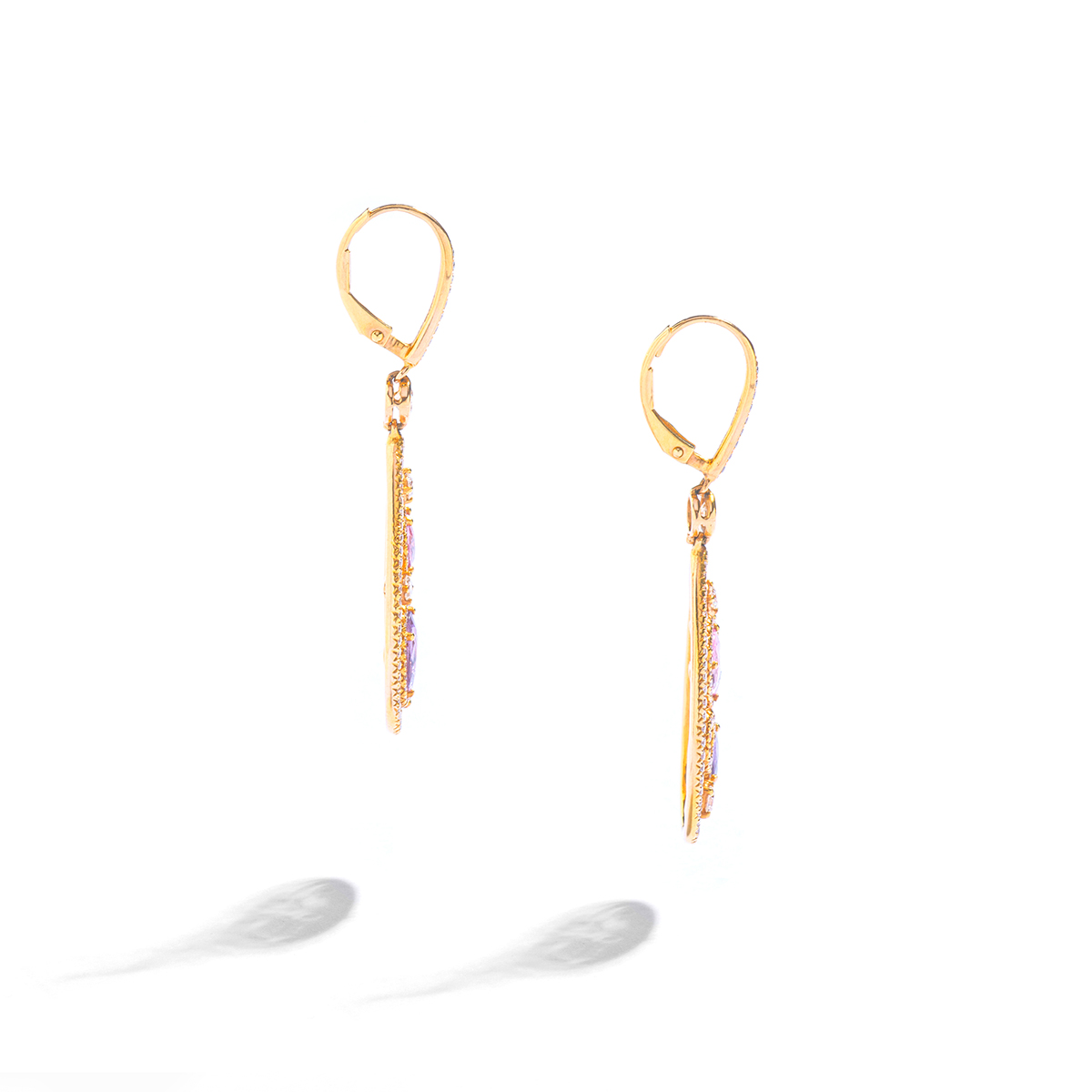 Collection » Pink Sapphire Amethyst Diamond on Rose Gold Earrings Ear Pendants