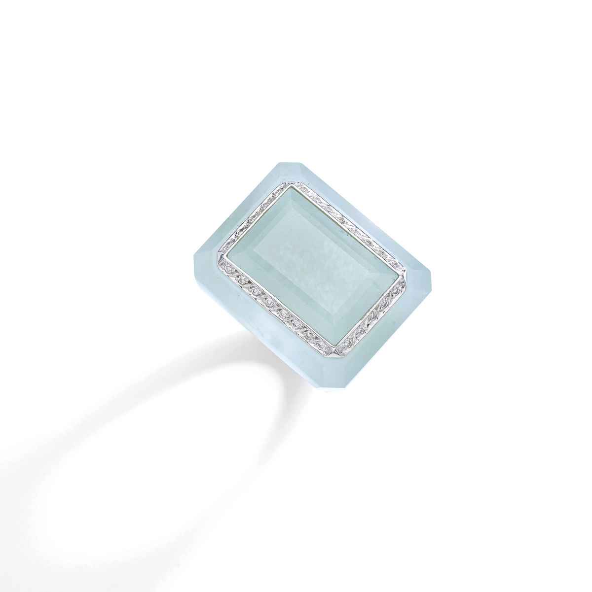 Significant Quartz and Diamond on white Gold Ring. Italian work.