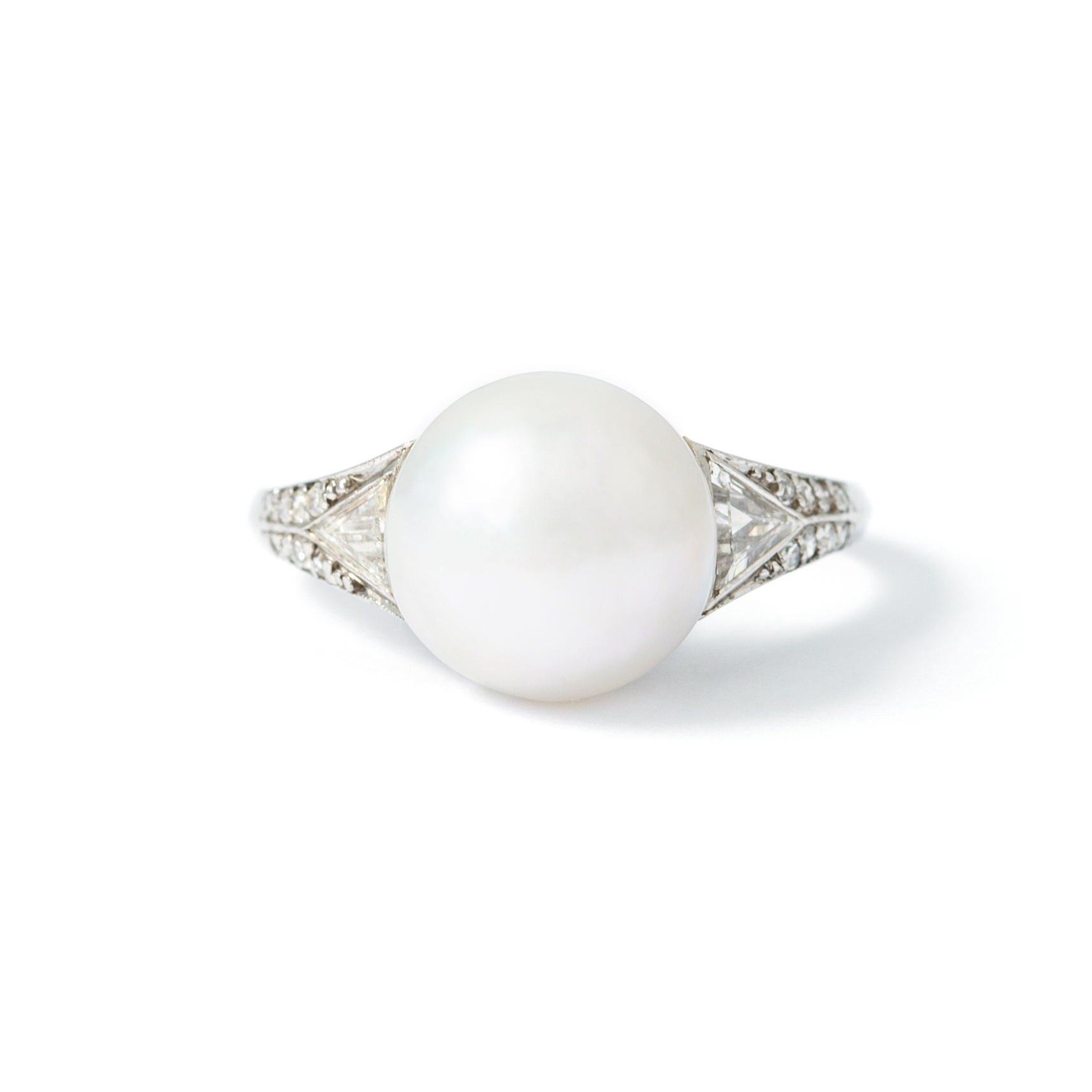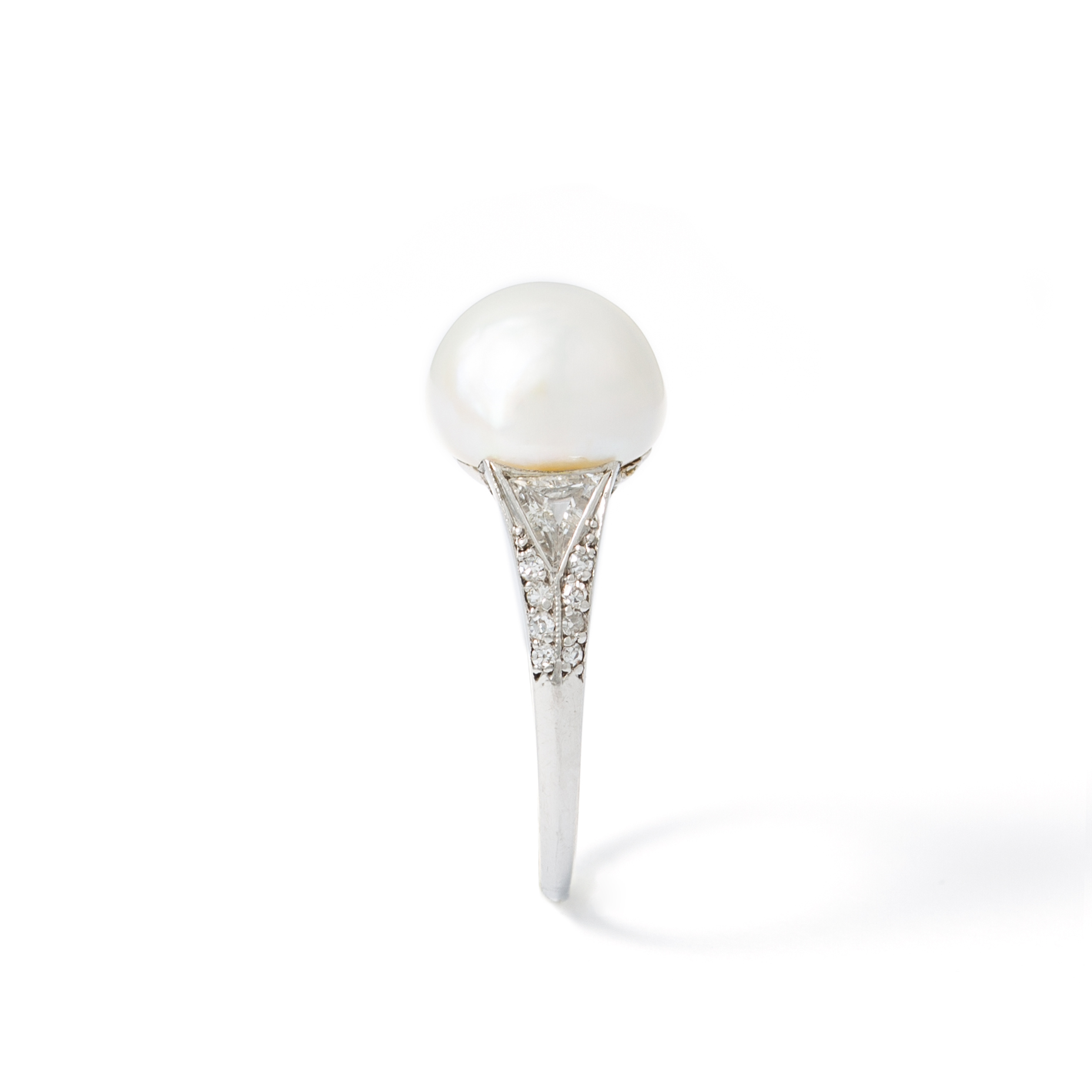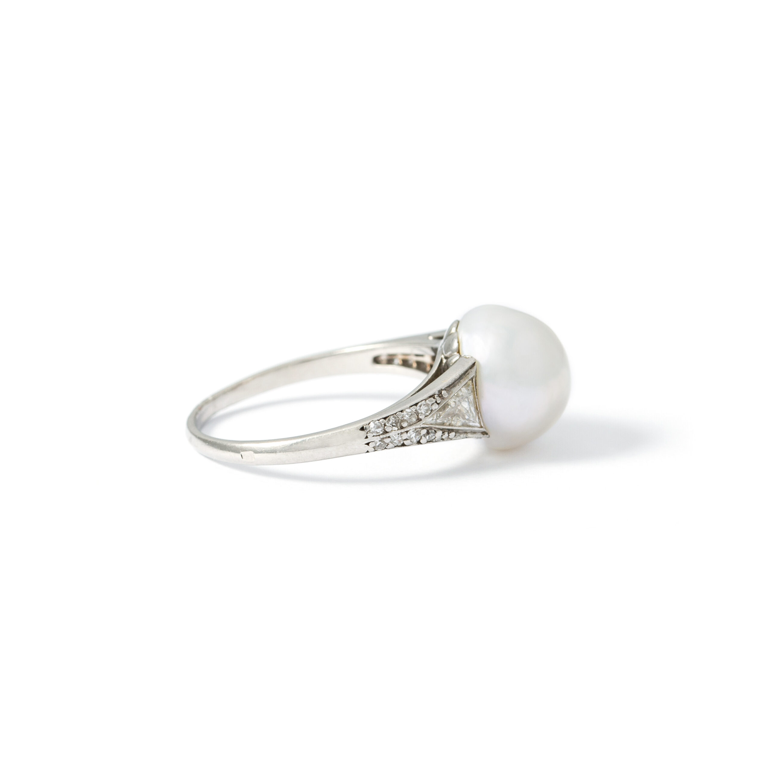 Ring in white gold 18kt set with one button real pearl and diamonds