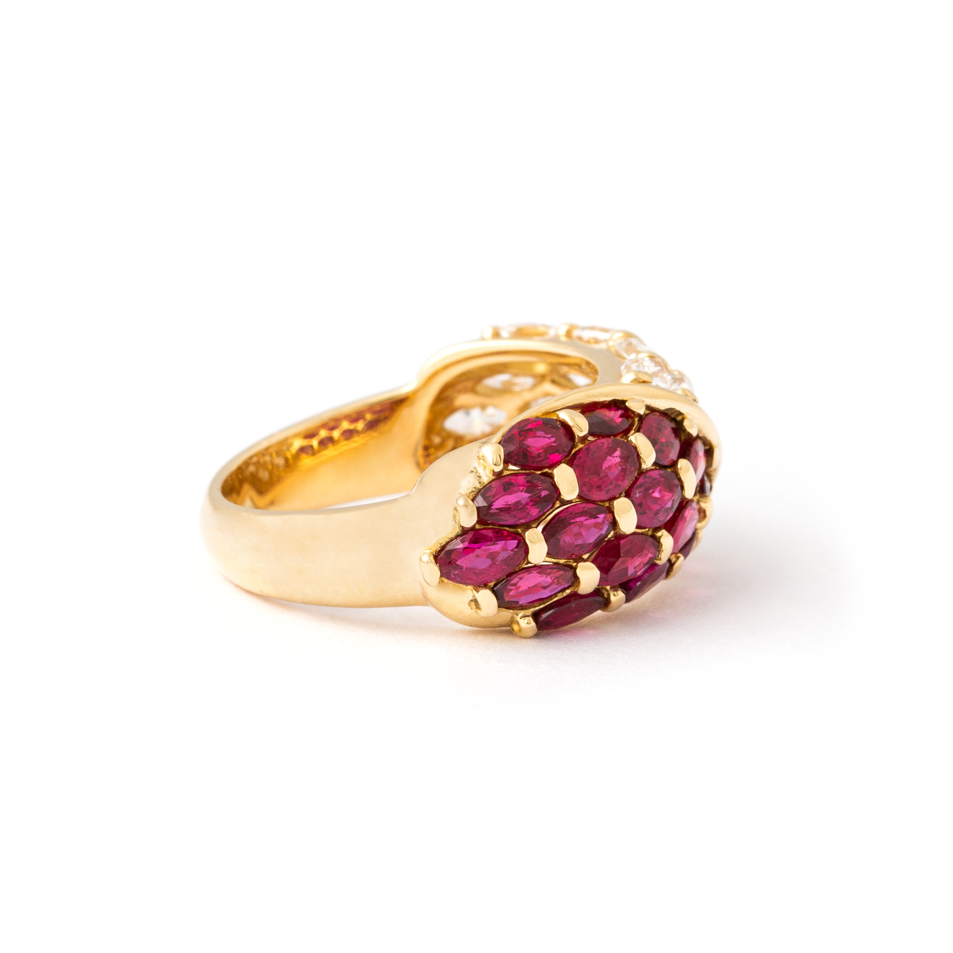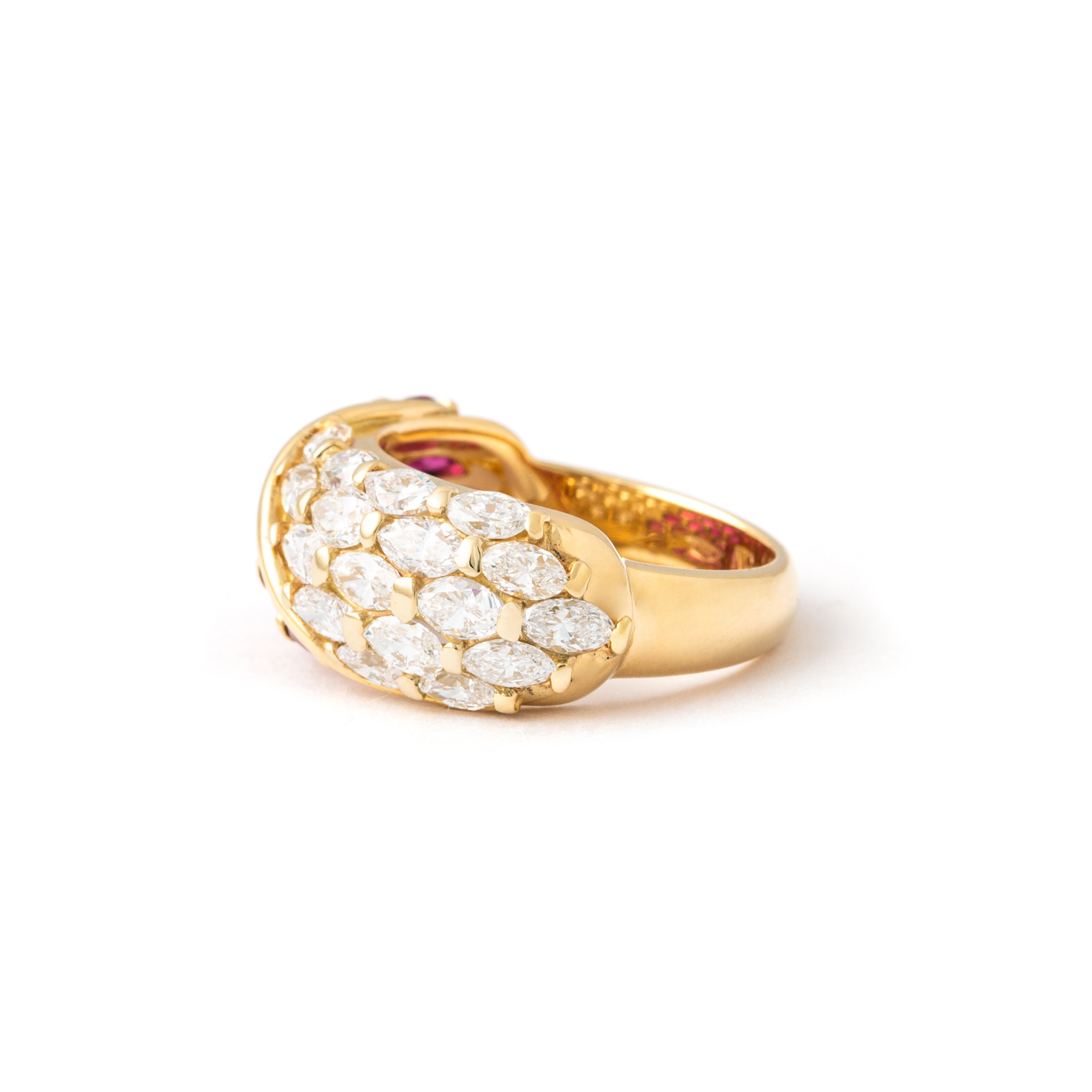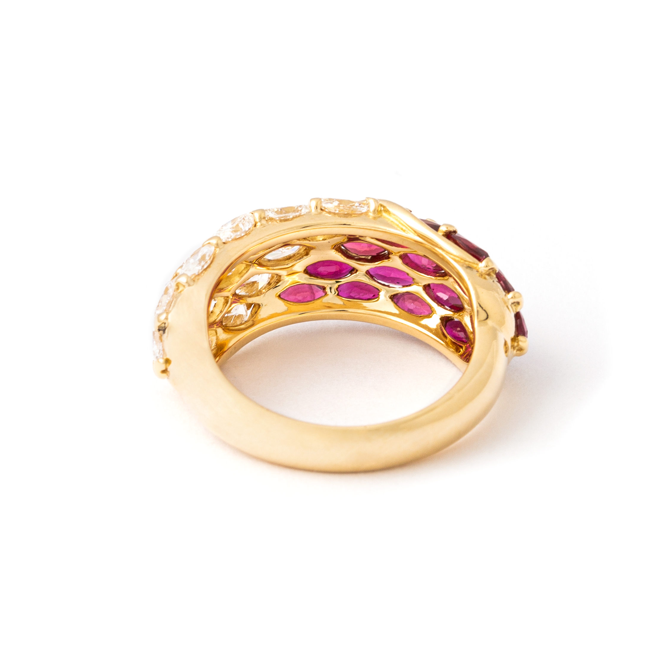 Ring in 18kt yellow gold set with 17 diamonds 2.01 cts and 17 17 rubies 2.56 cts Size 54