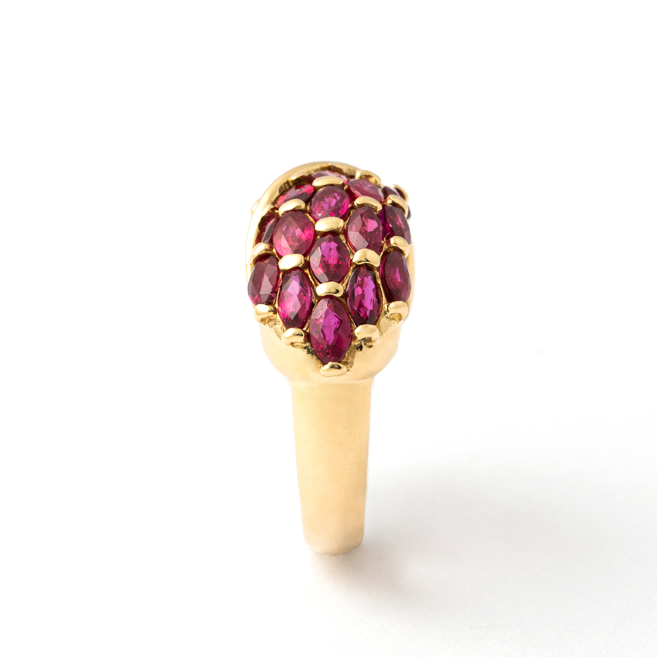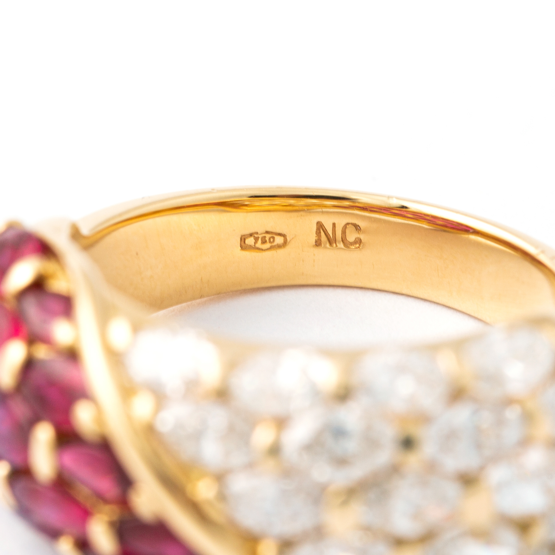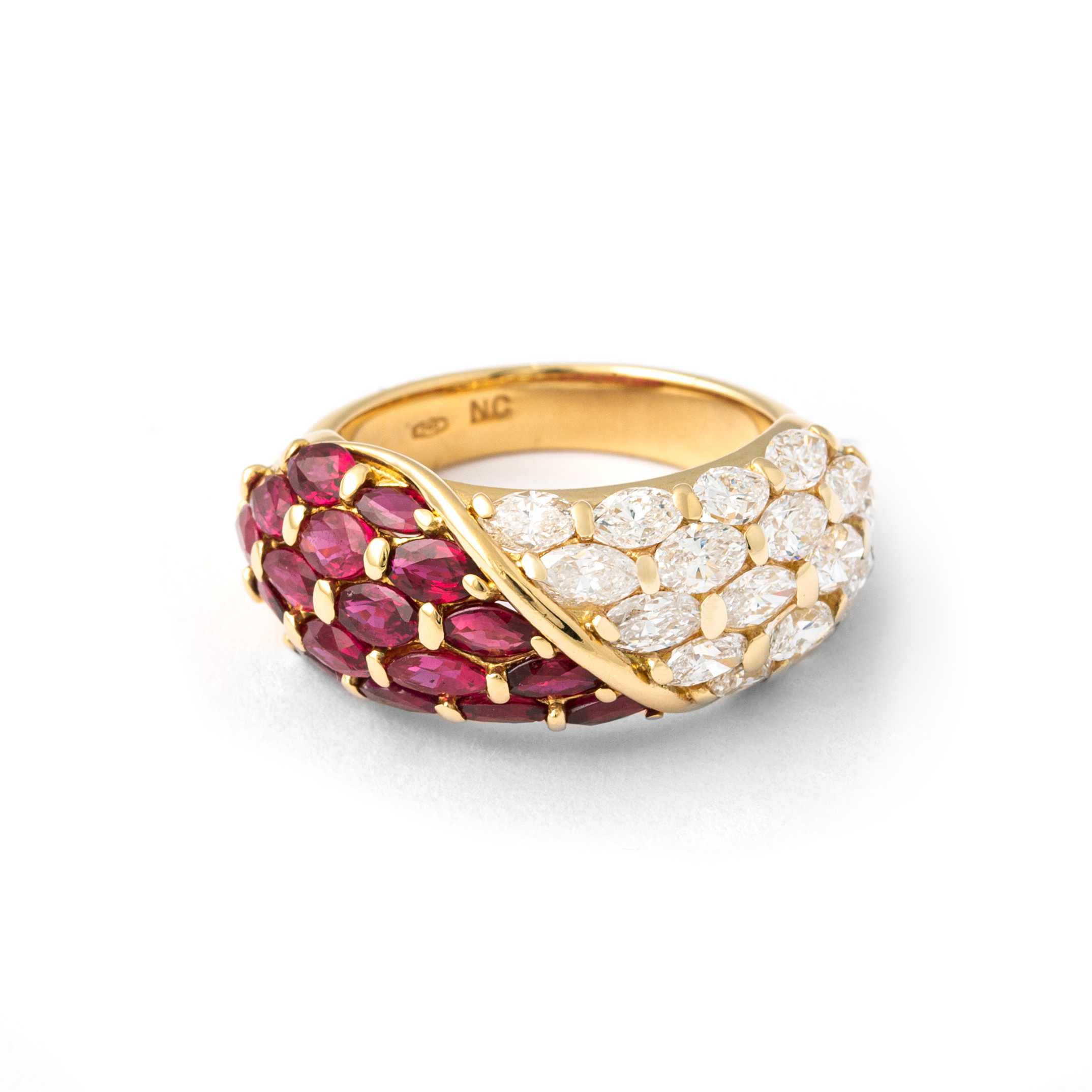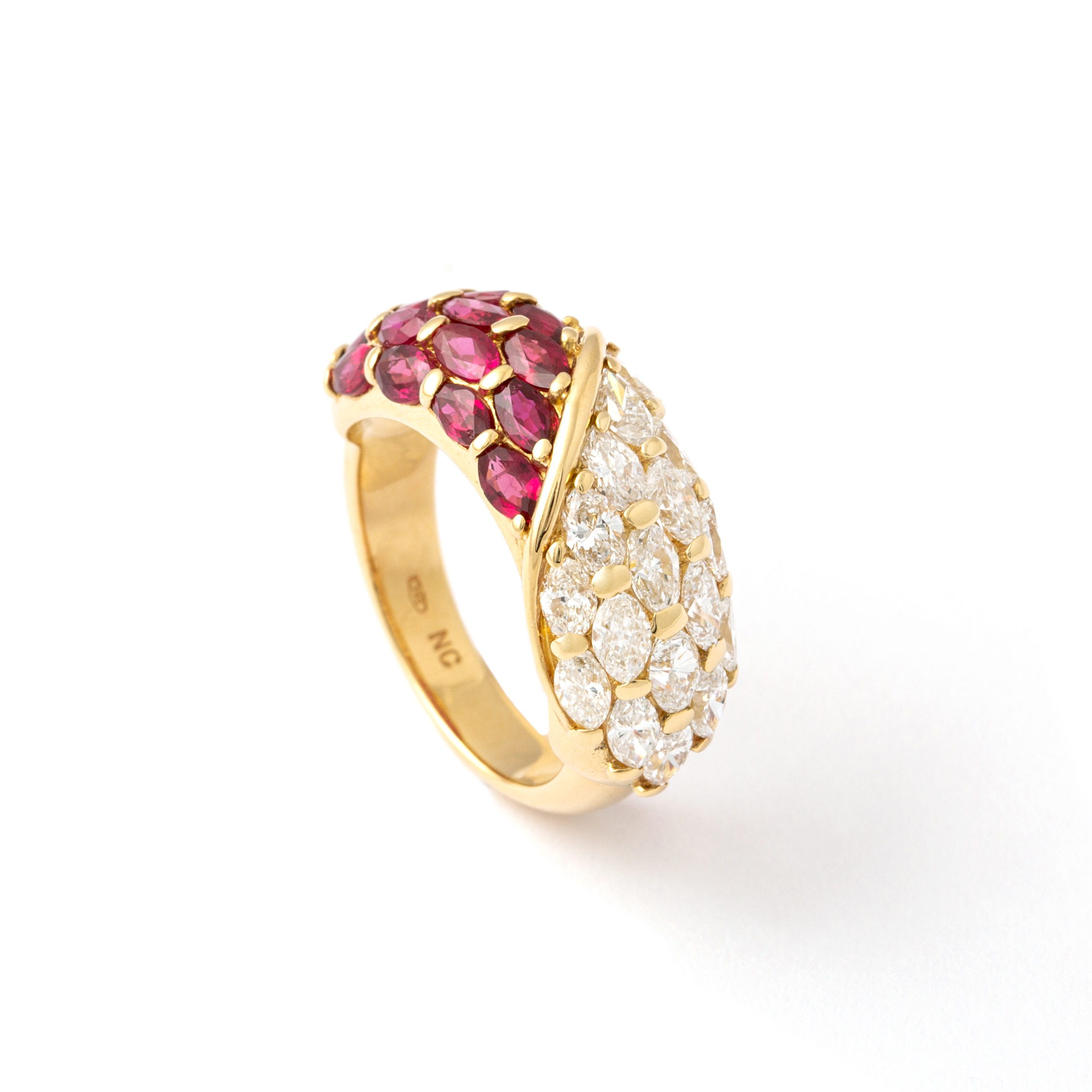 Ring in 18kt yellow gold set with 17 diamonds 2.01 cts and 17 17 rubies 2.56 cts Size 54