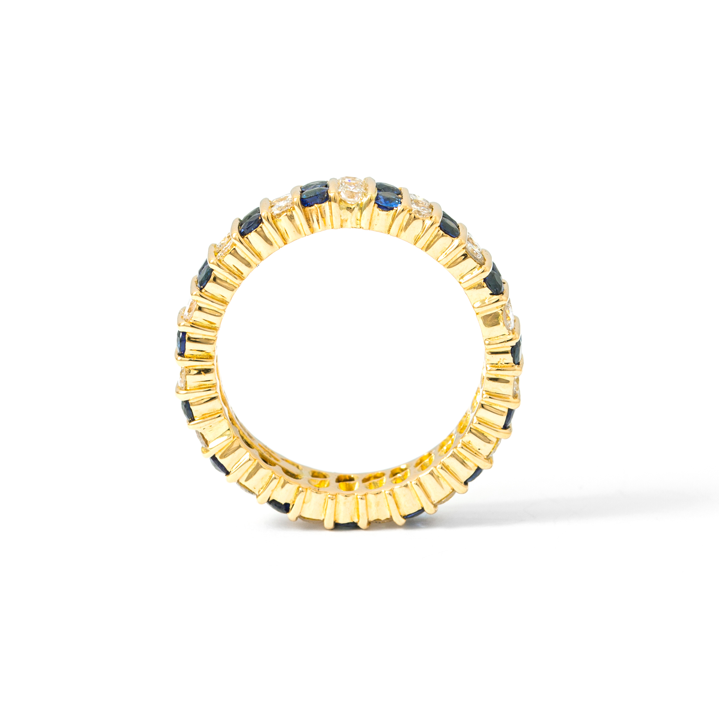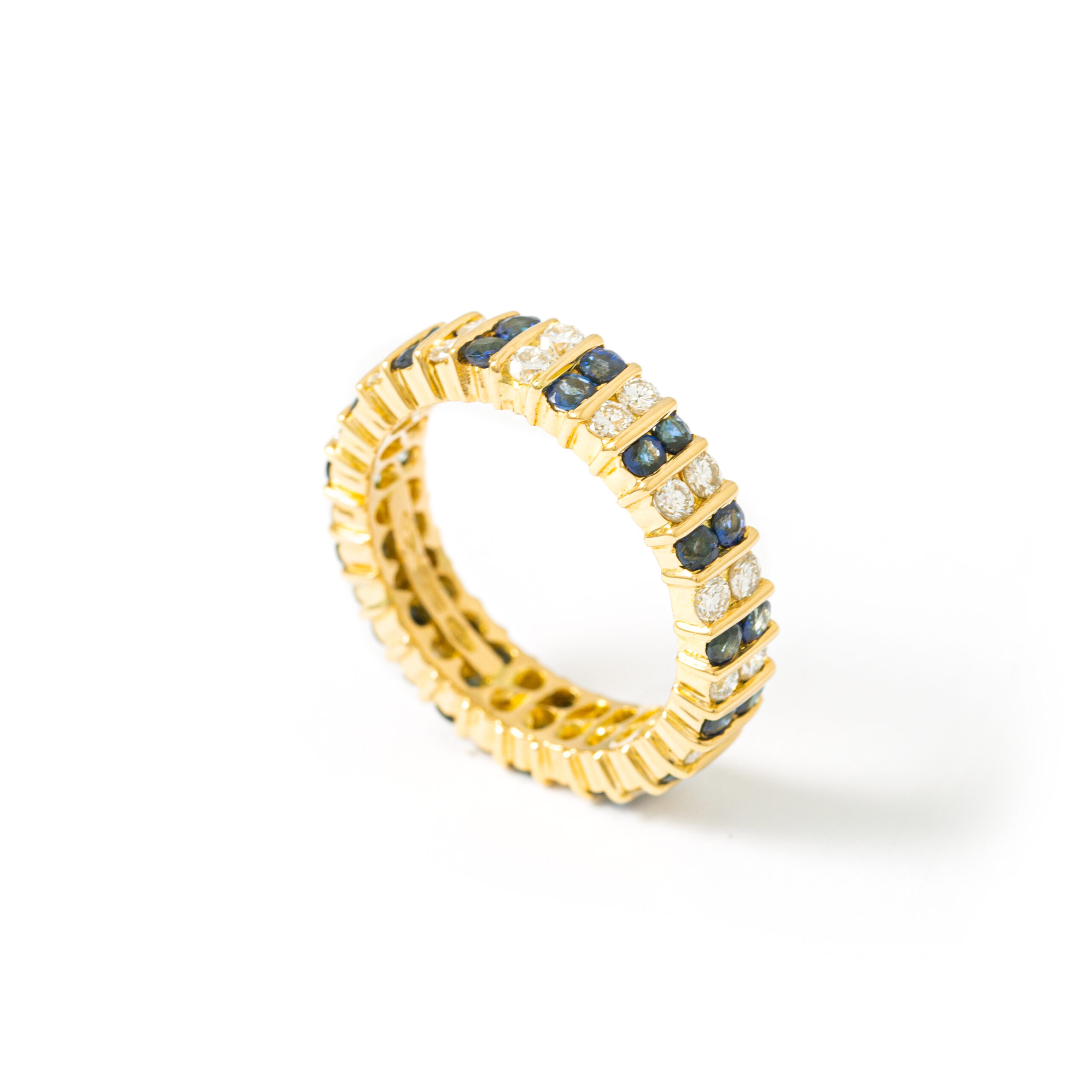 Ring in 18kt yellow gold set with diamonds 0.93 cts and sapphires 1.46 cts