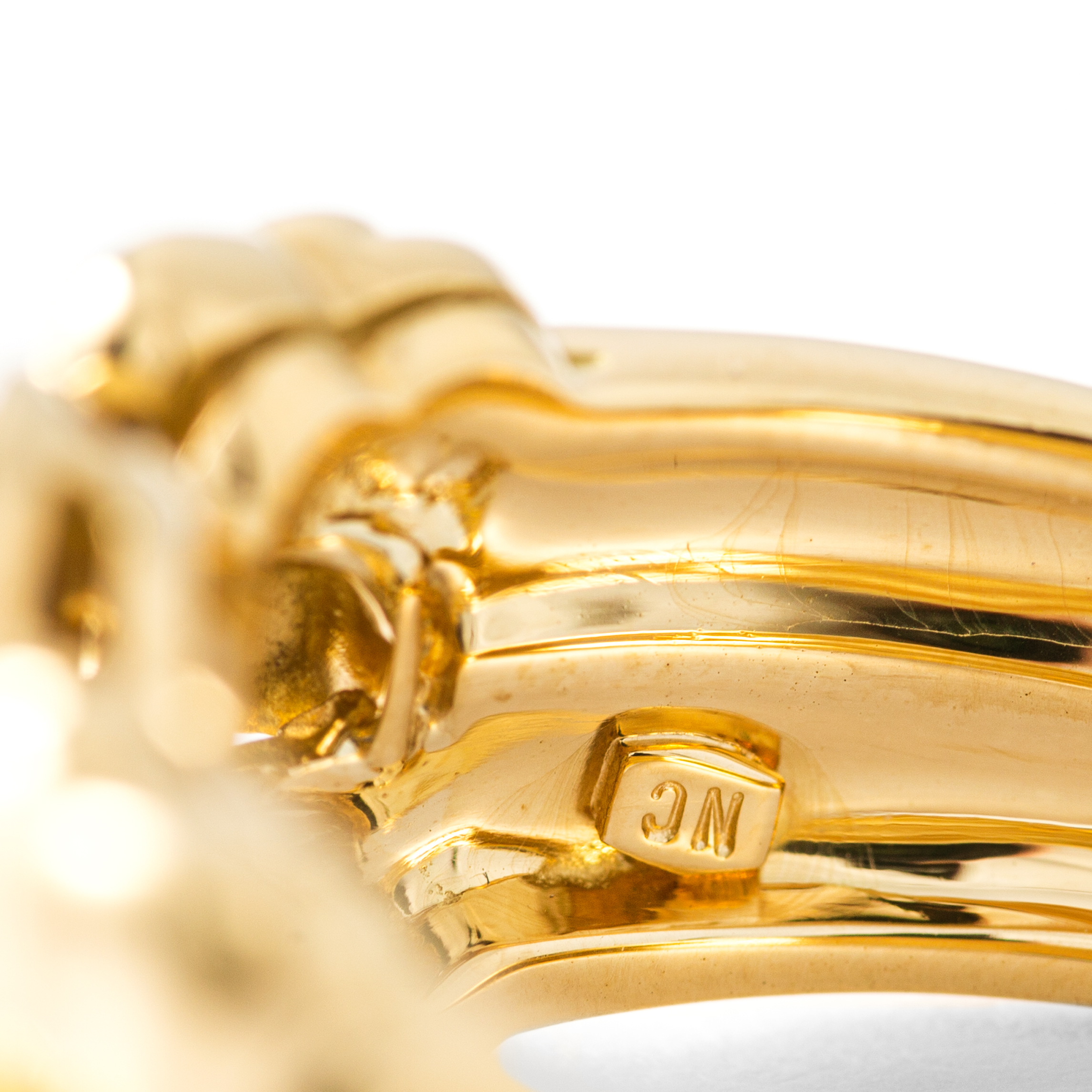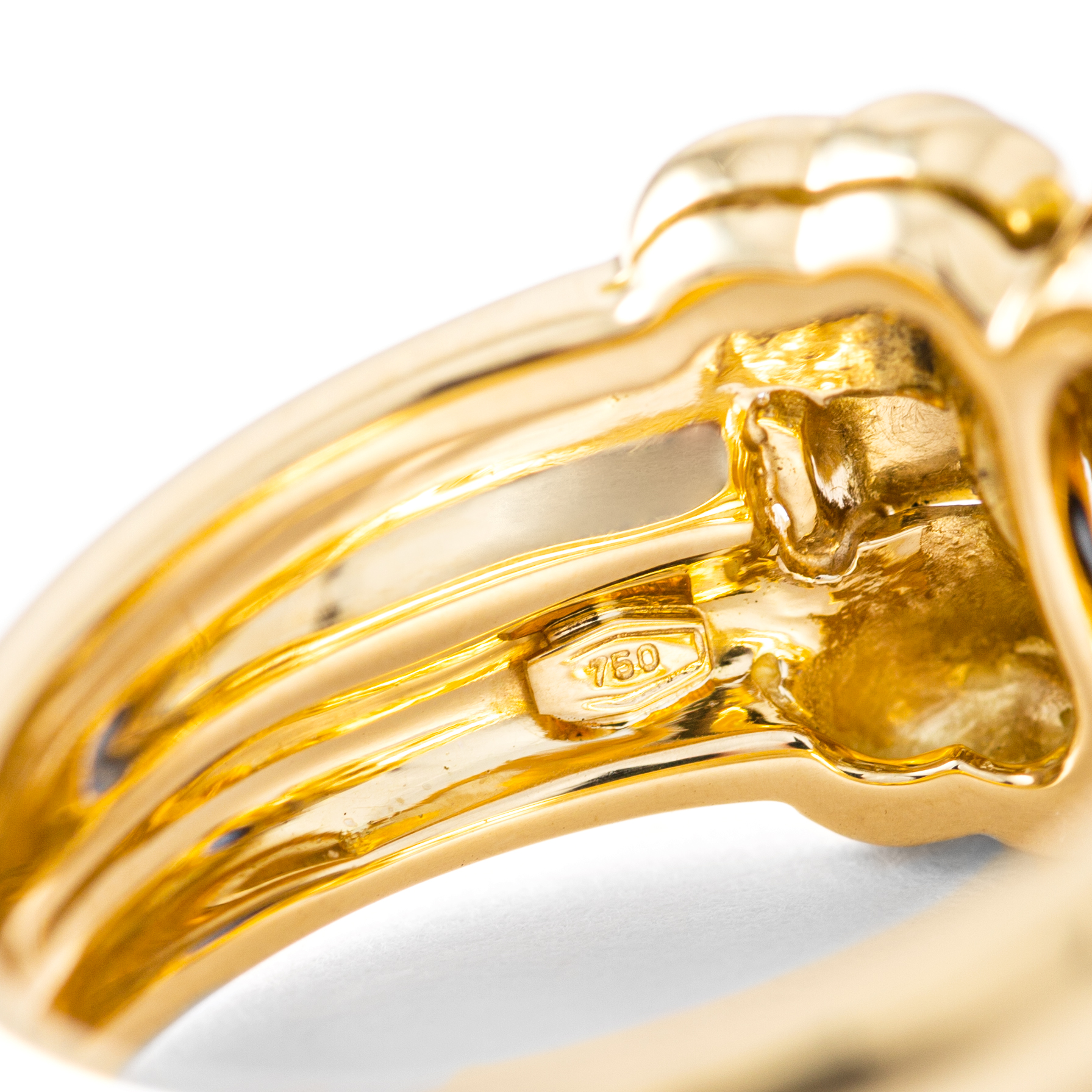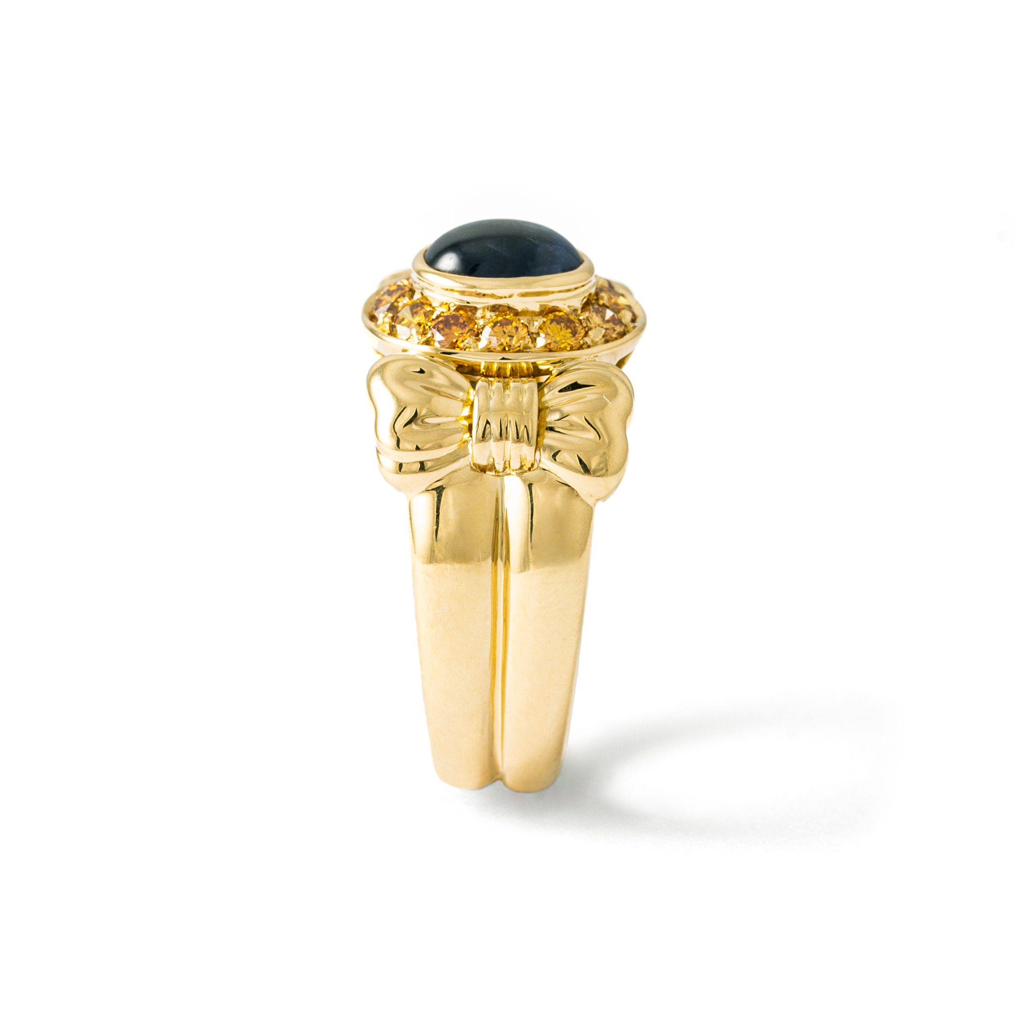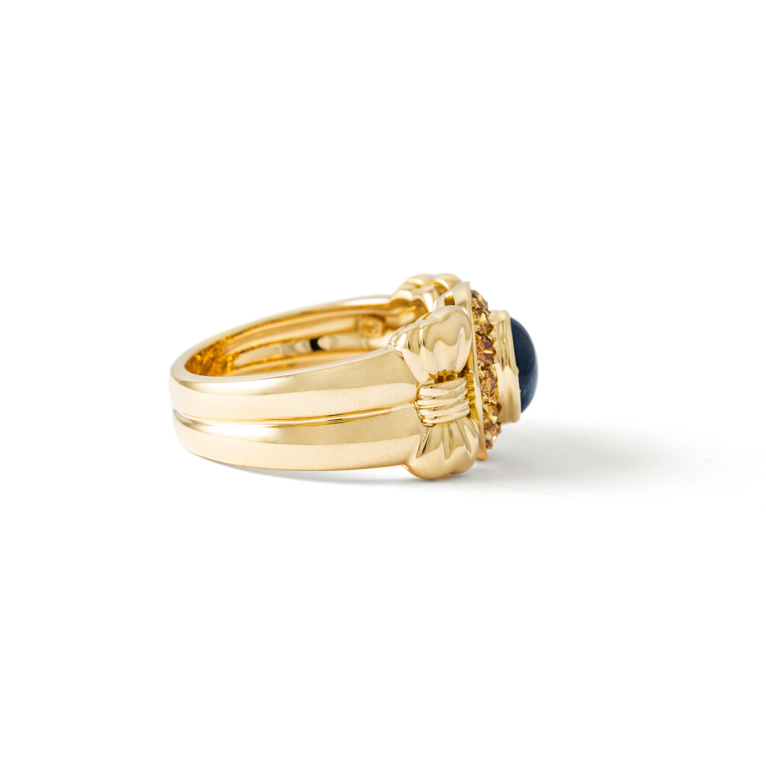 Ring in 18kt yellow gold set with one cabochon cut sapphire 1.32 cts and 12diamonds 0.44 cts