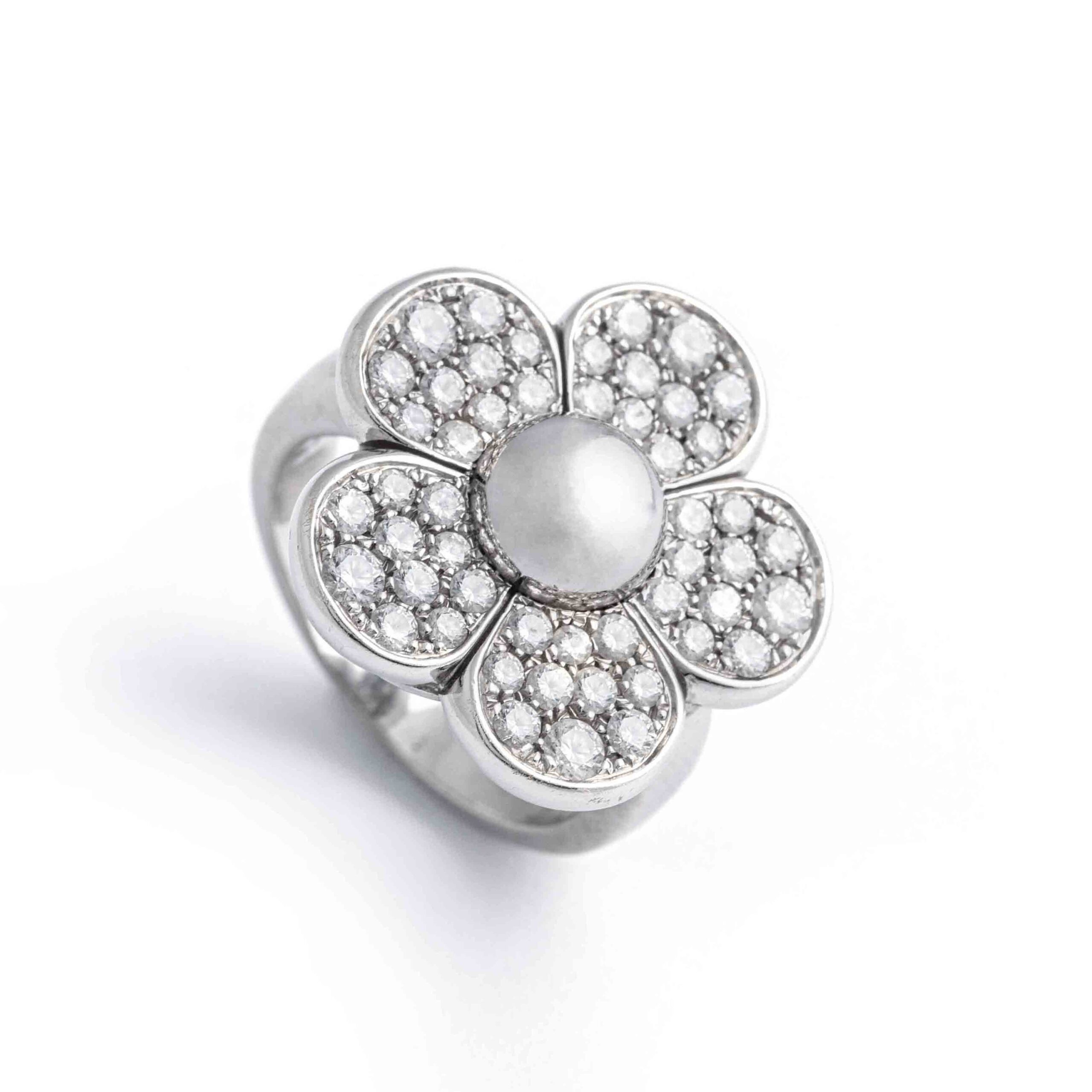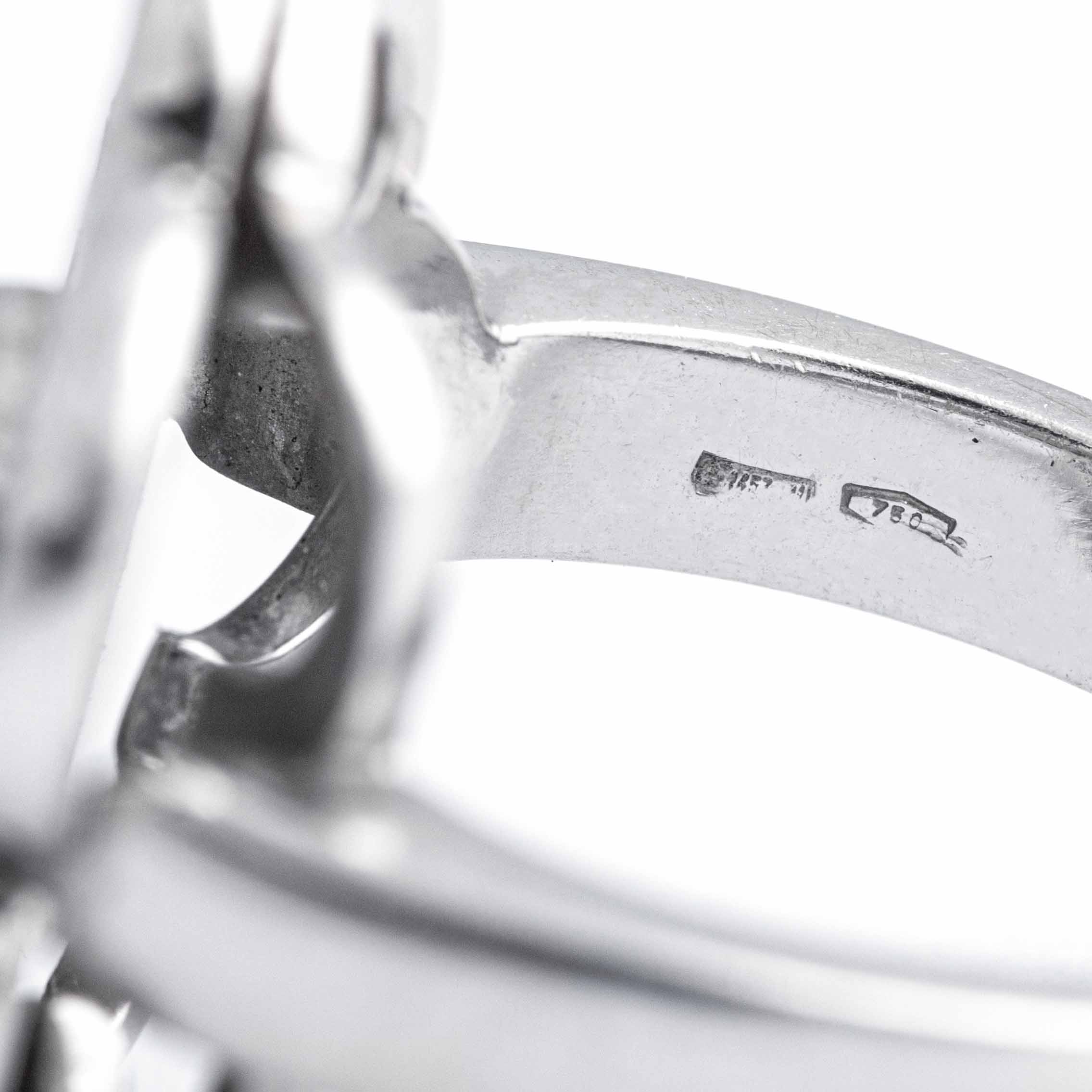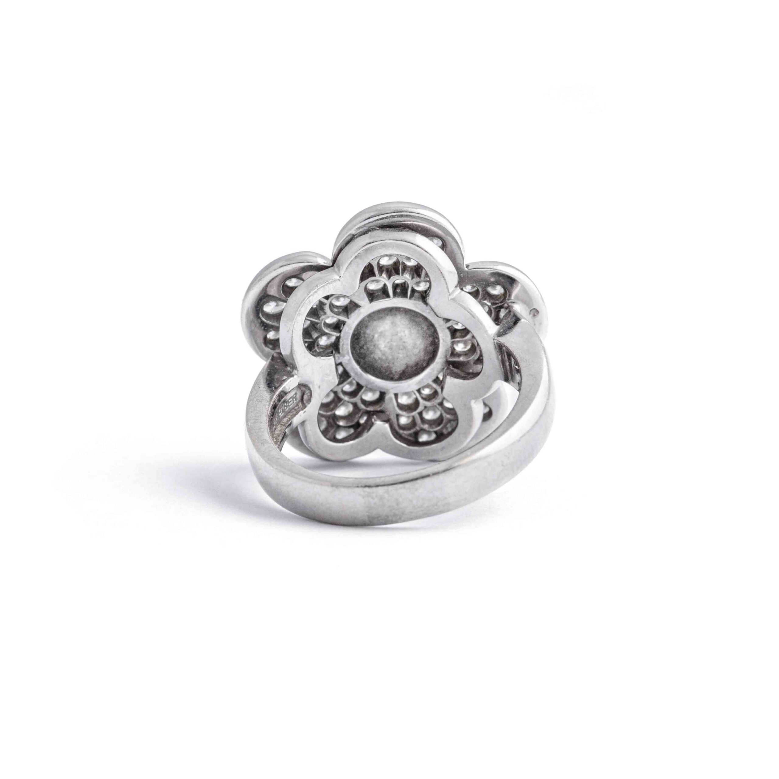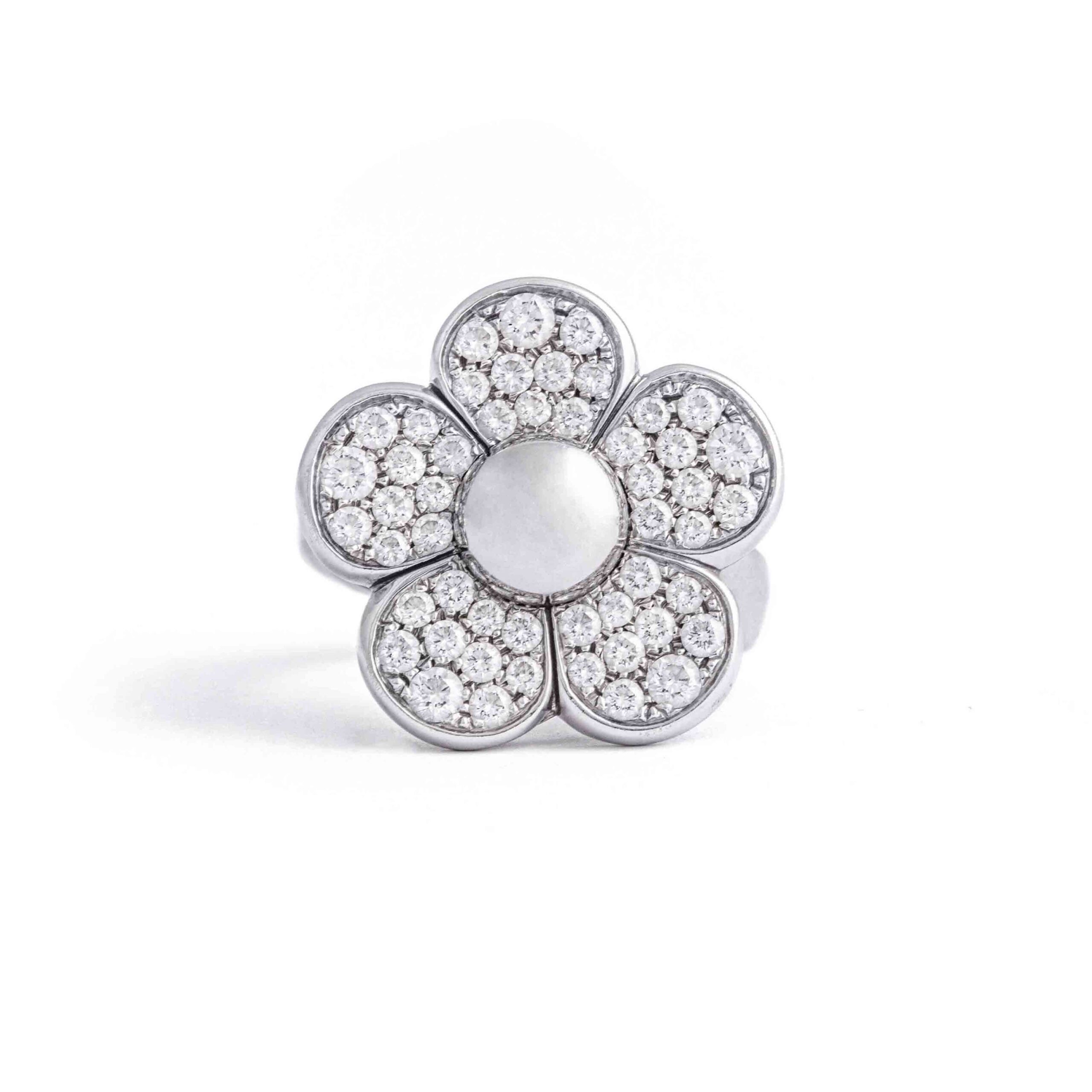 Schreiber Diamond White Gold Ring. Elevate your style with this breathtaking 18K white gold ring adorned with dazzling diamonds in a captivating flower design.