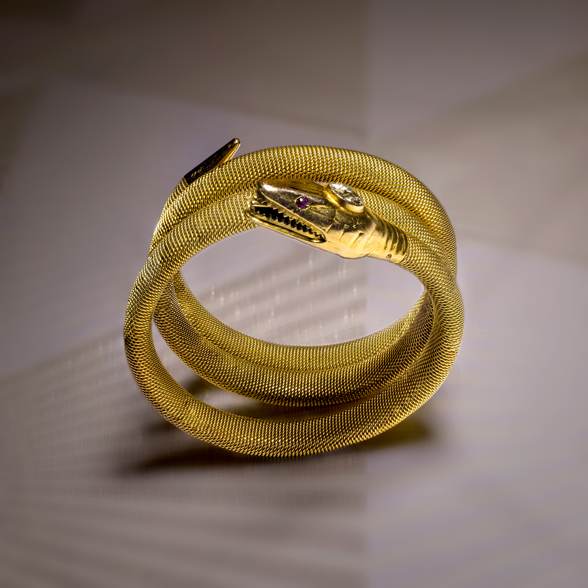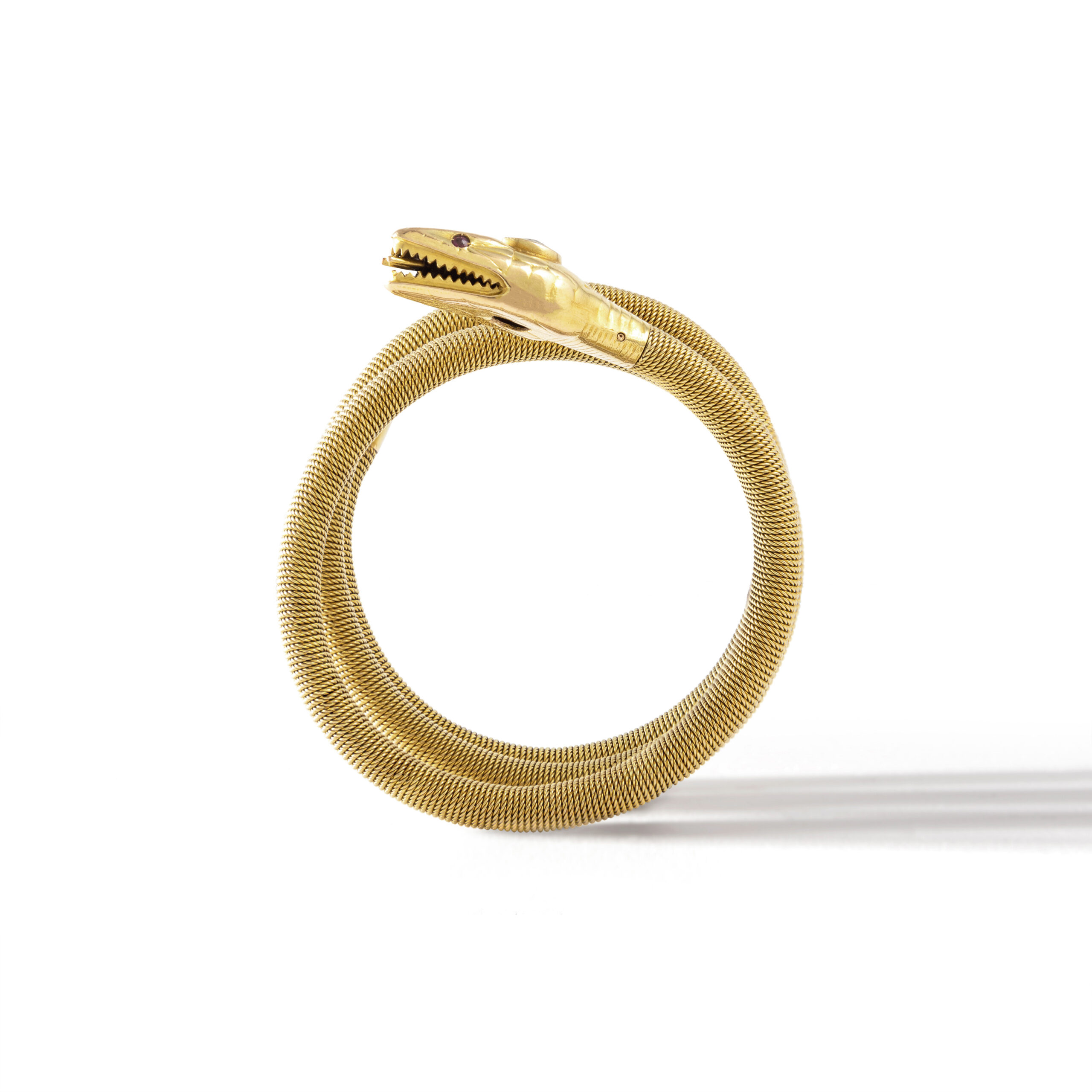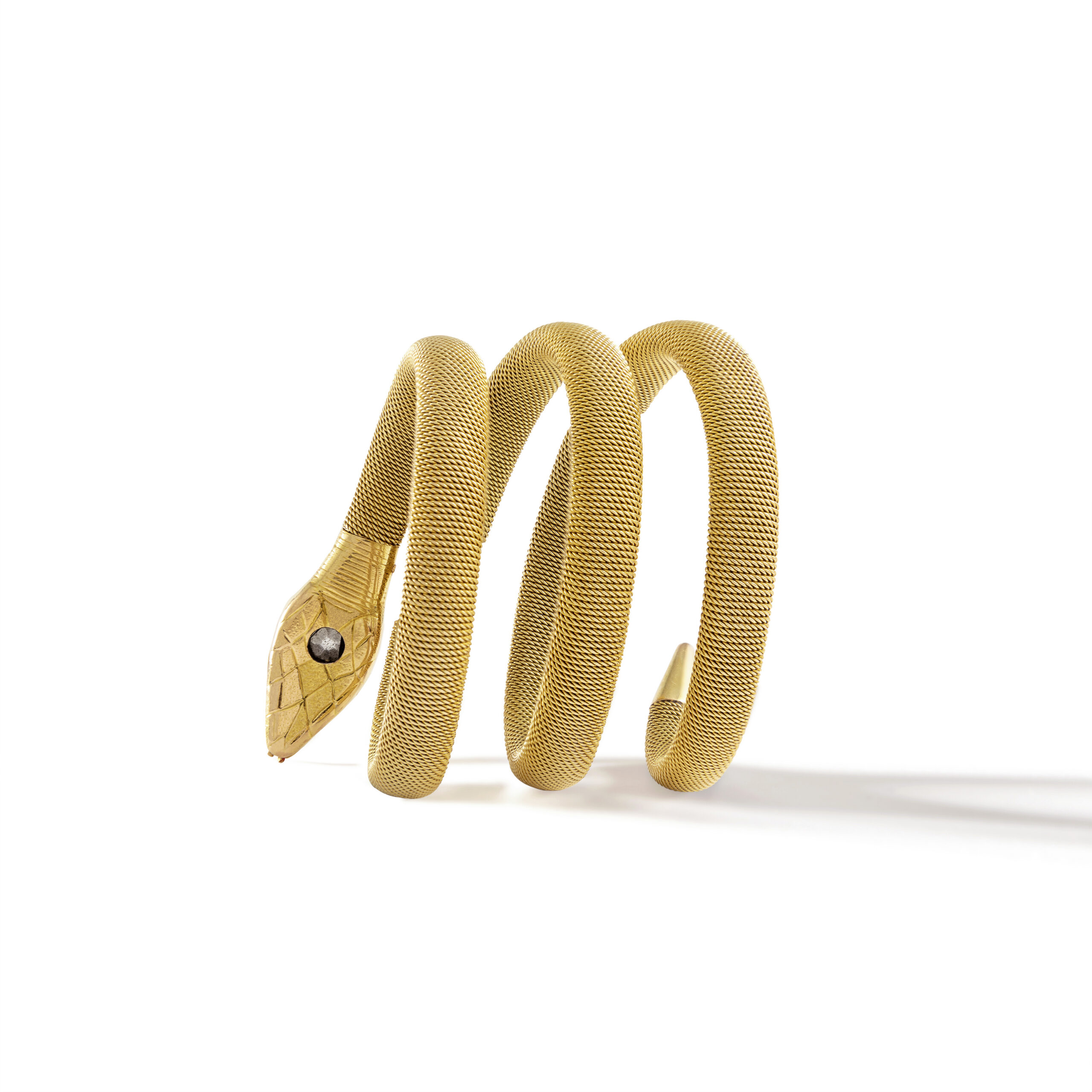 Snake multi-stand yellow gold 18k bracelet. Diamond Old Mine cut estimated approximately 0.80-0.90 carat. Flexible size. Circa 1940.