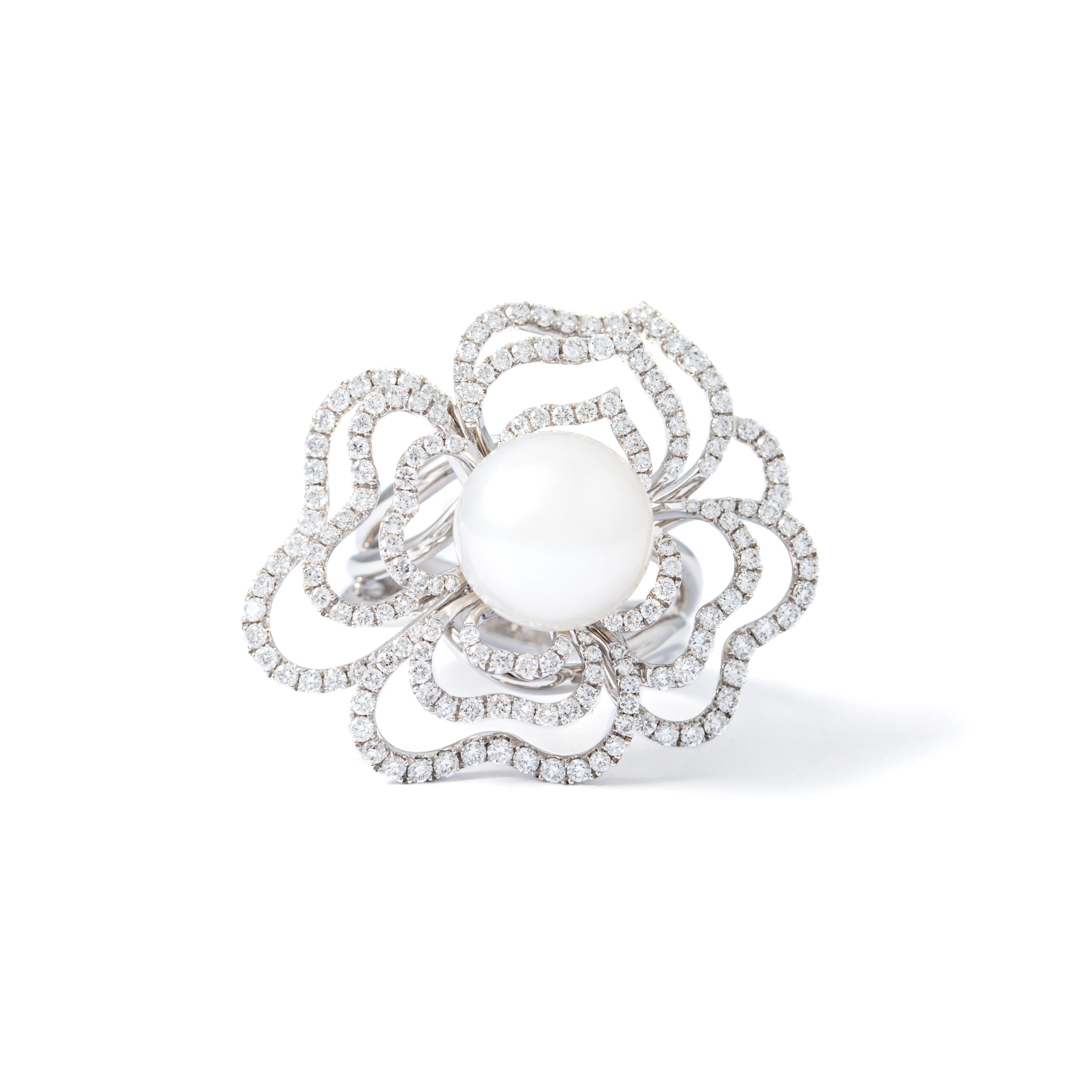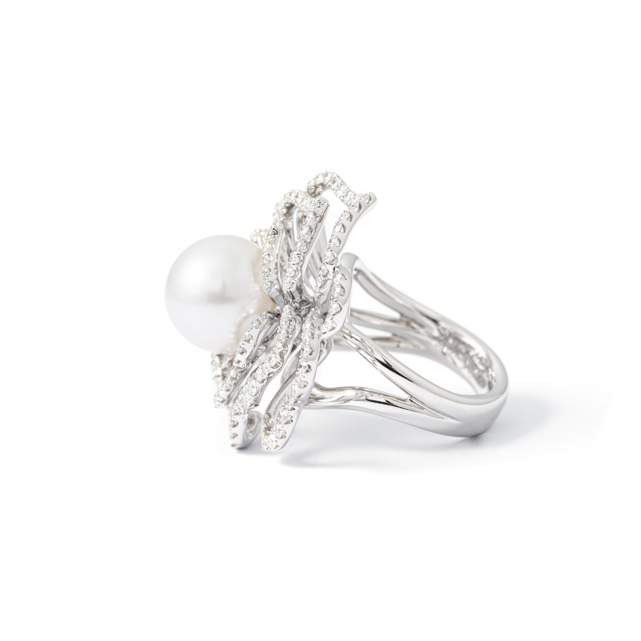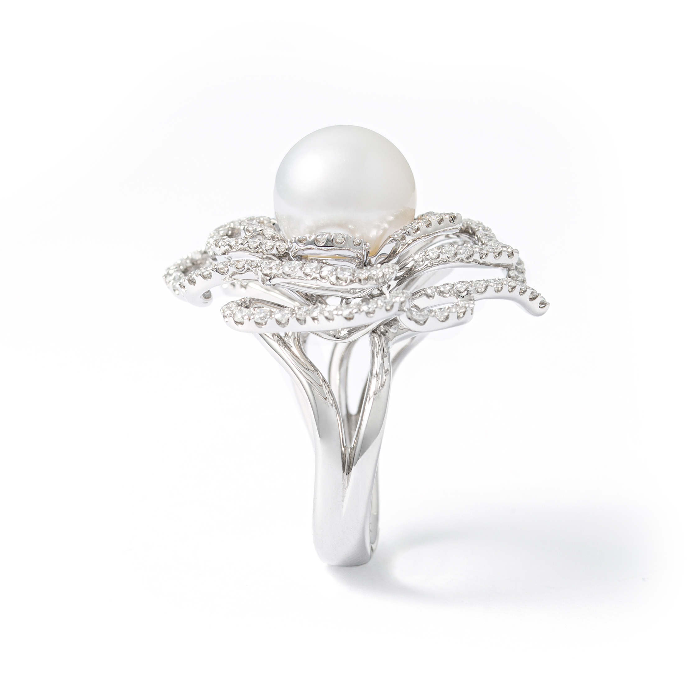 Ring in 18kt white gold set with one South Sea pearl and 176 diamonds 1.71 cts