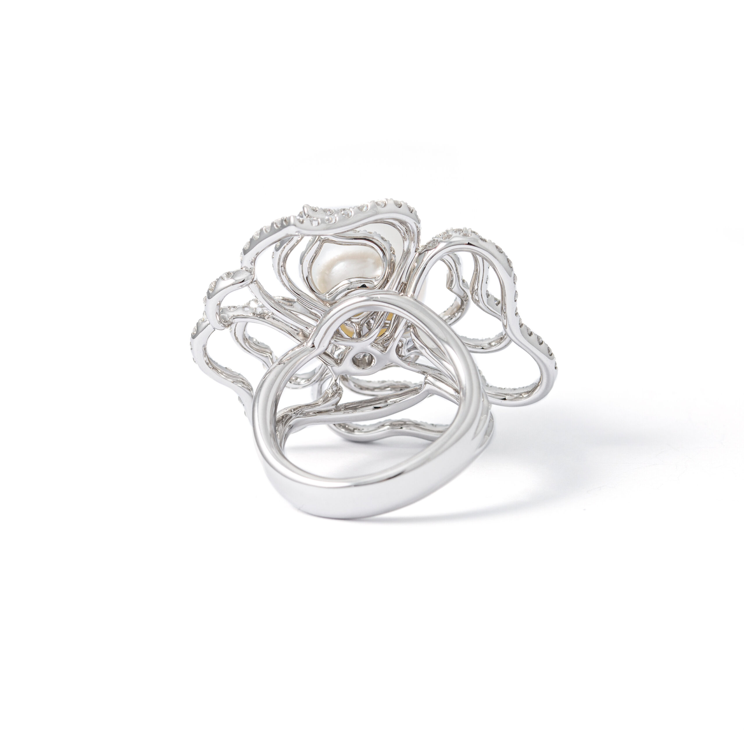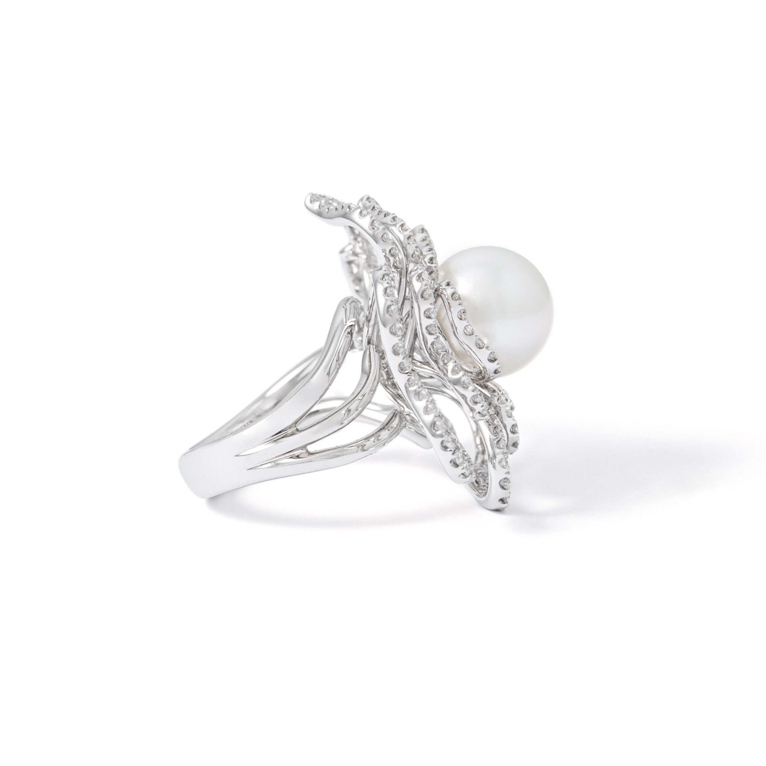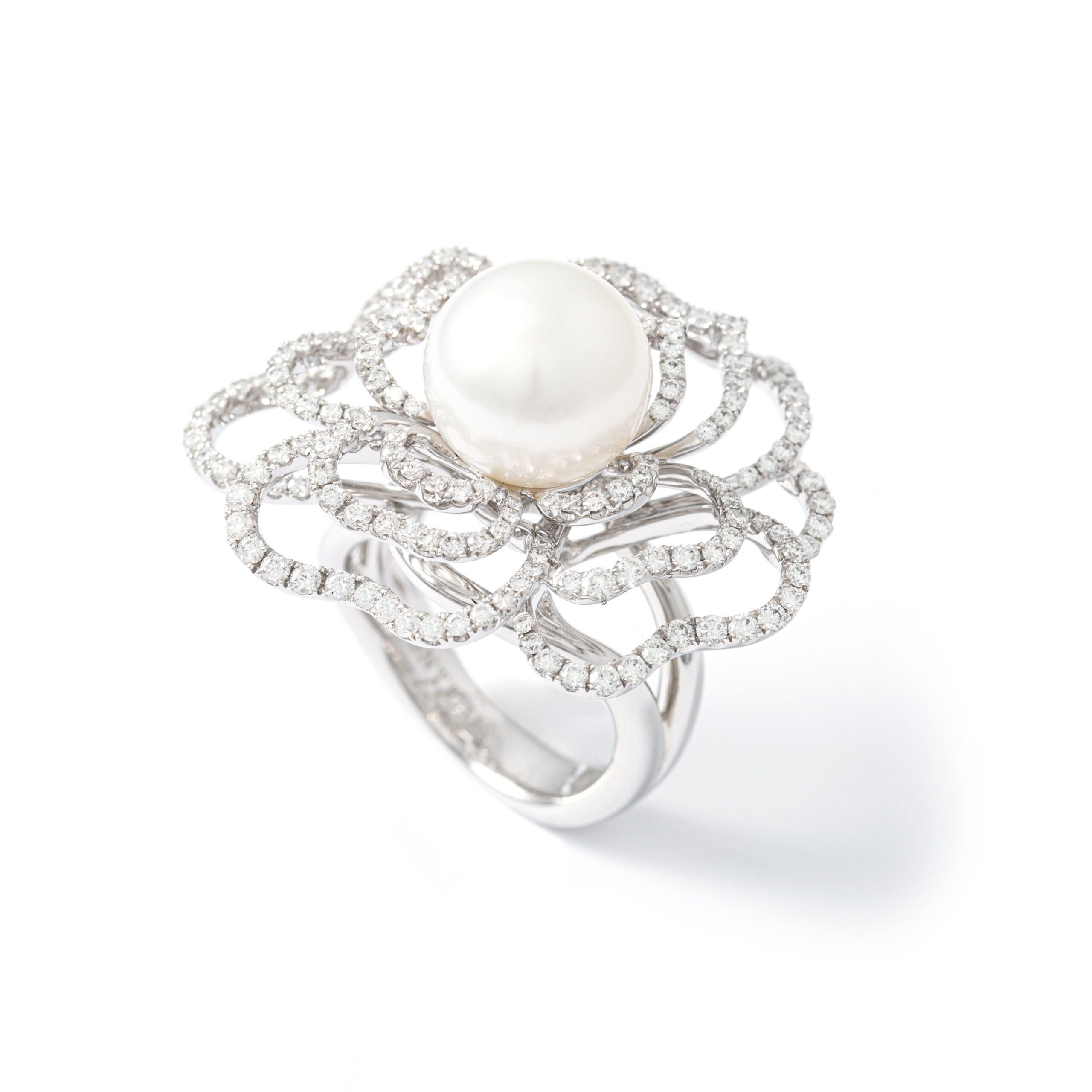 Ring in 18kt white gold set with one South Sea pearl and 176 diamonds 1.71 cts