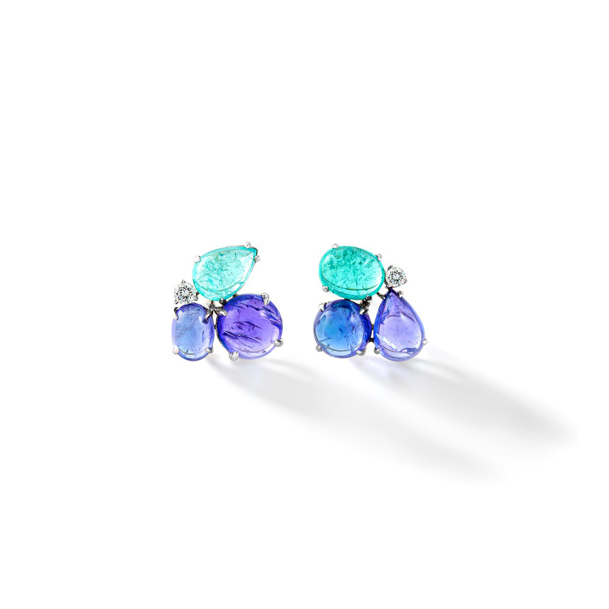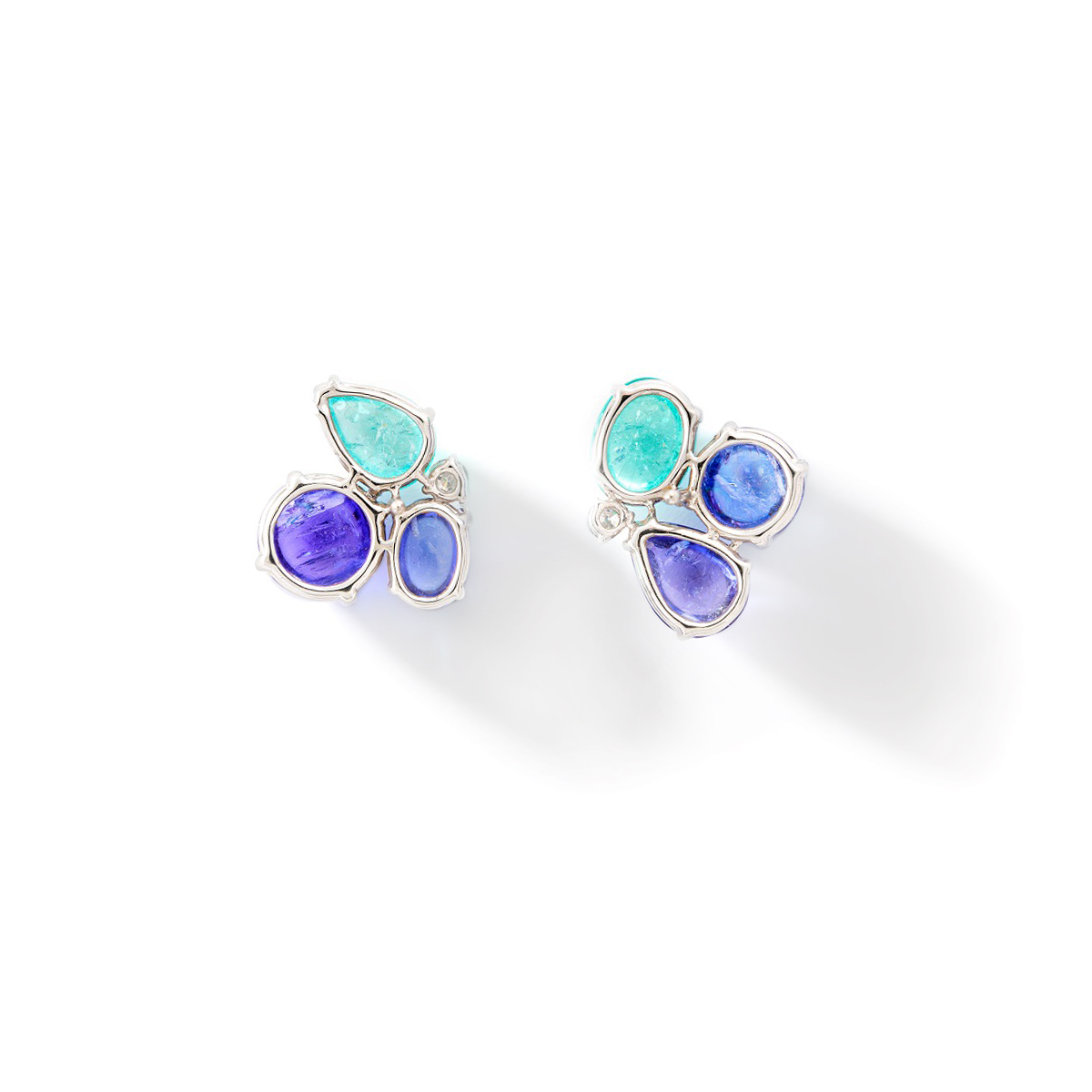 Tanzanite and AquaMarine Cabochon Diamond Gold 18k Earrings.