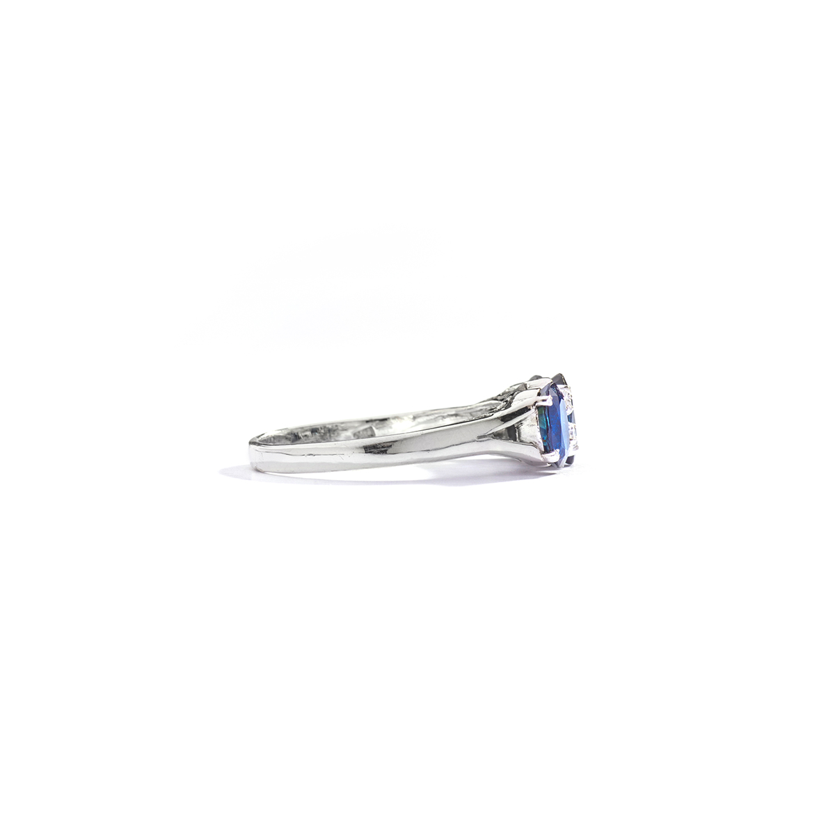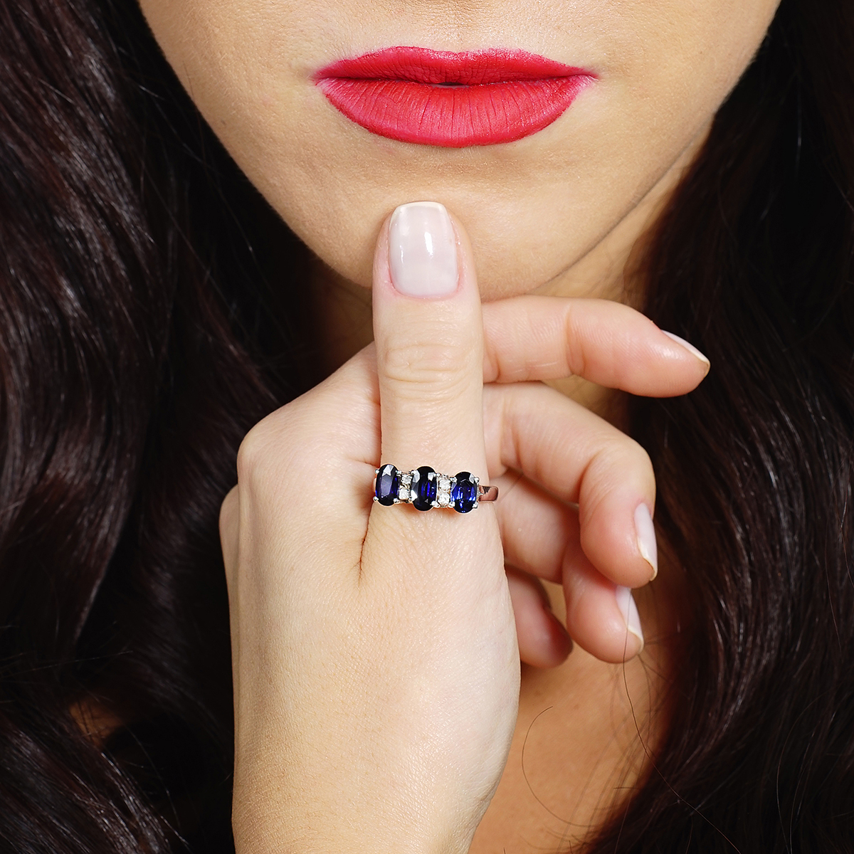 Three oval Sapphire and small Diamond on Silver Ring. Ring size: 9 1/2.